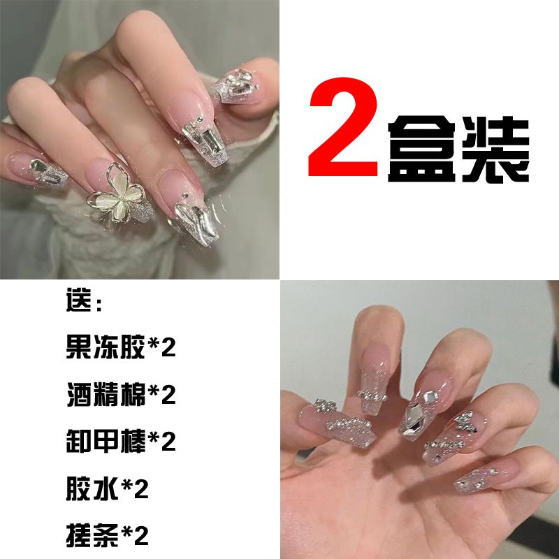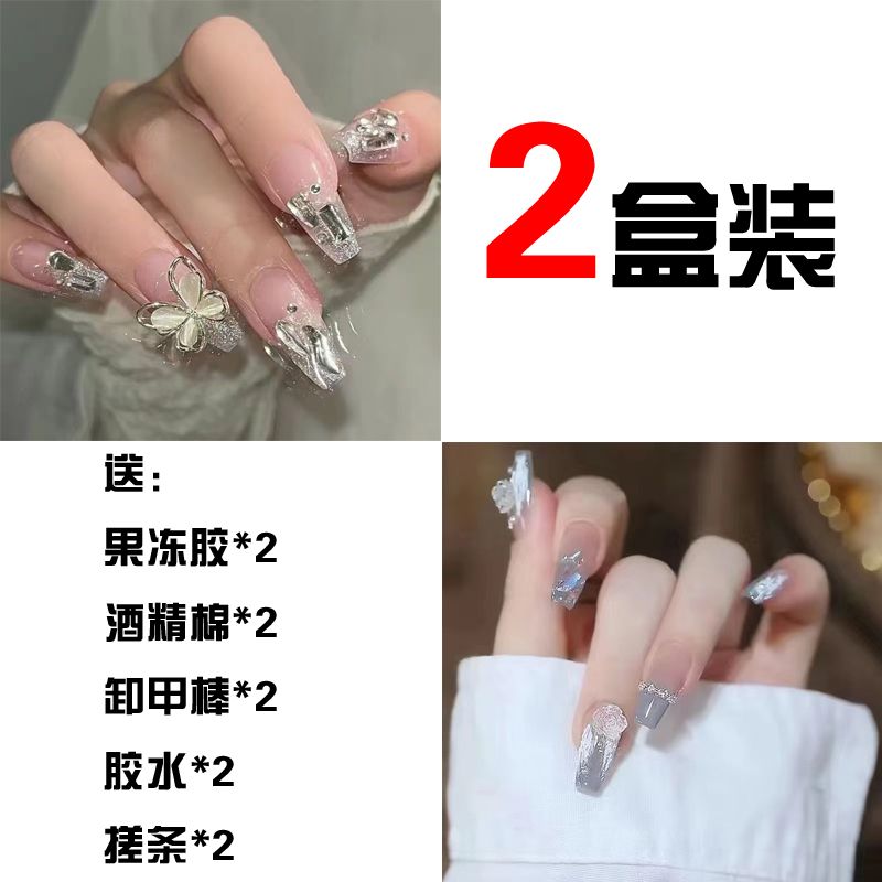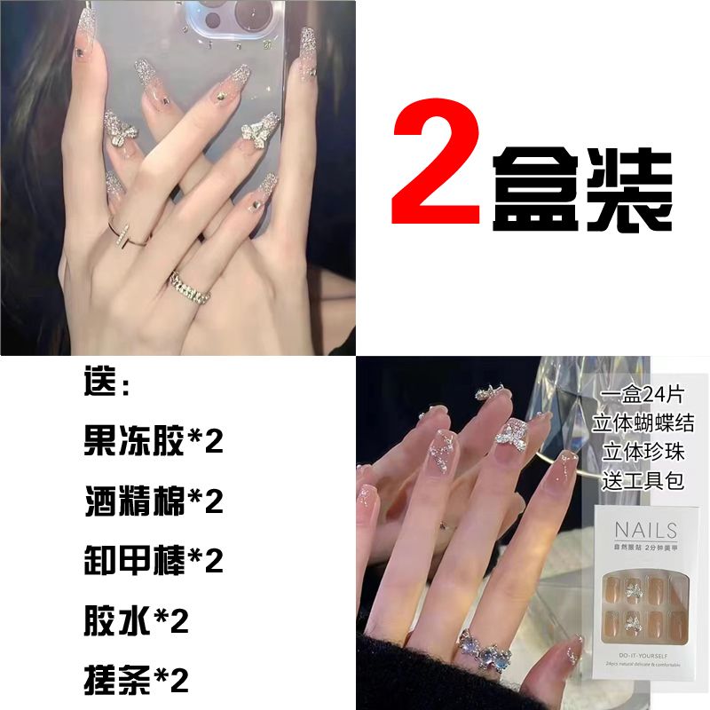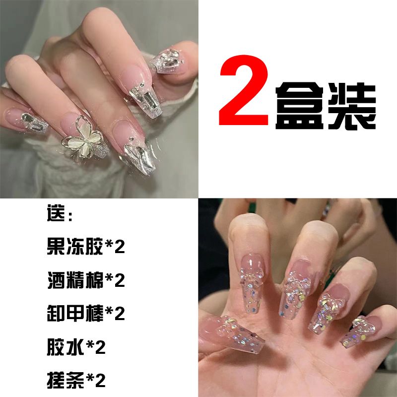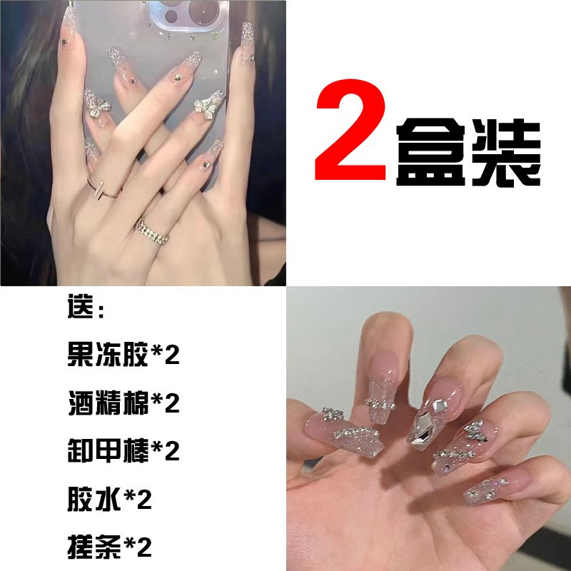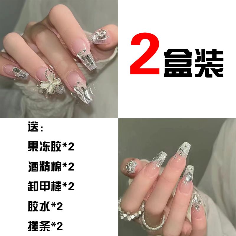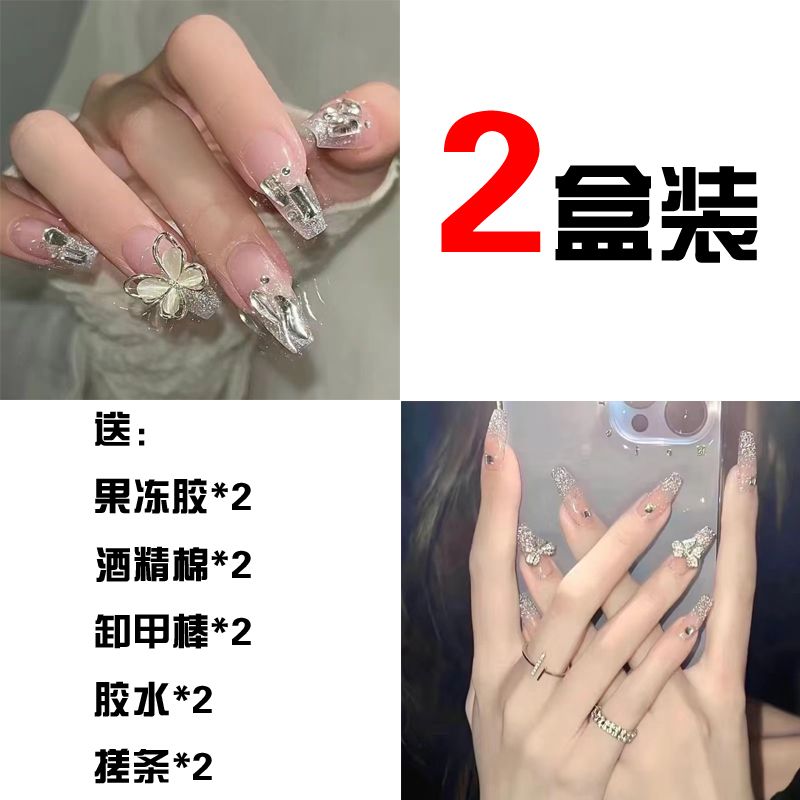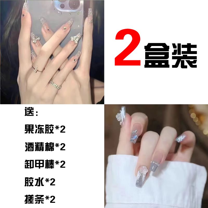 手工穿戴甲批发网红爆款碎钻蝴蝶闪粉美甲甲片成品指甲贴片果冻胶