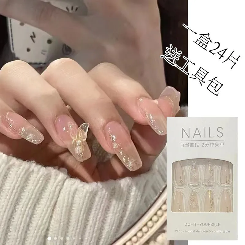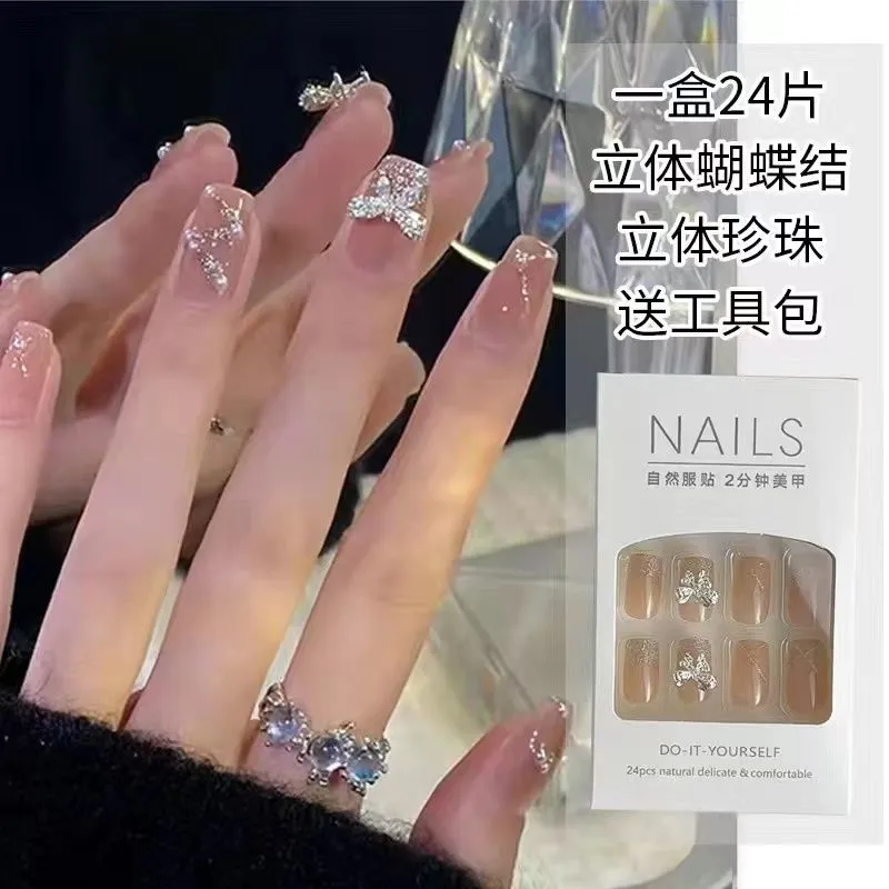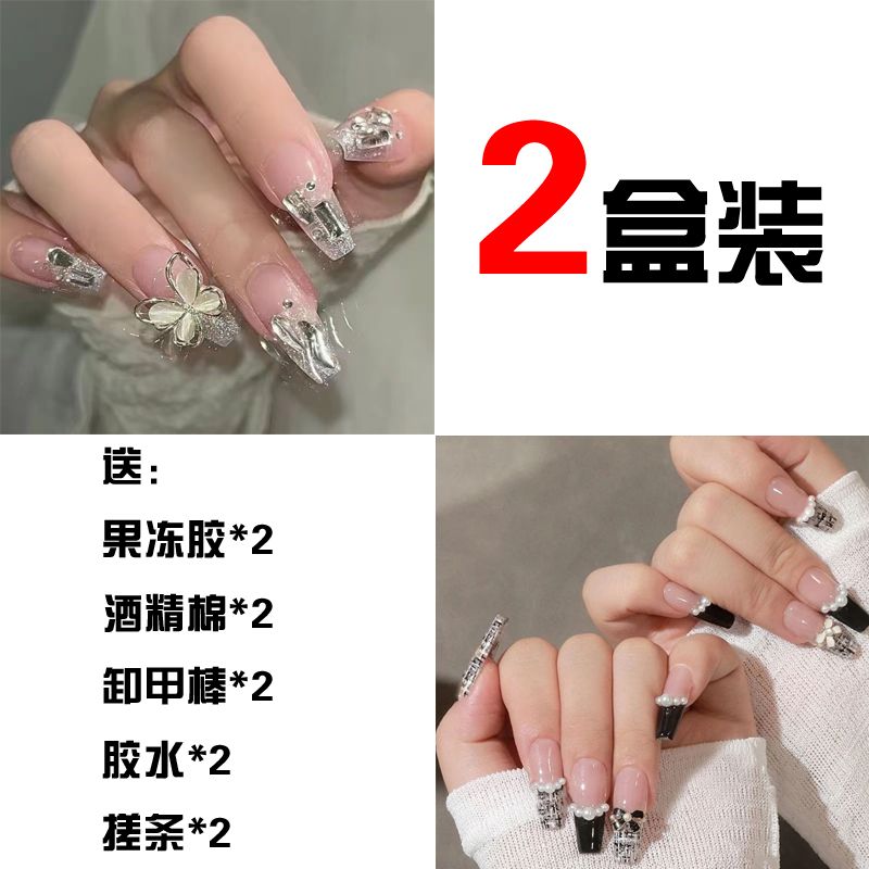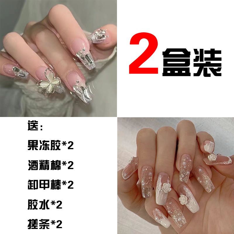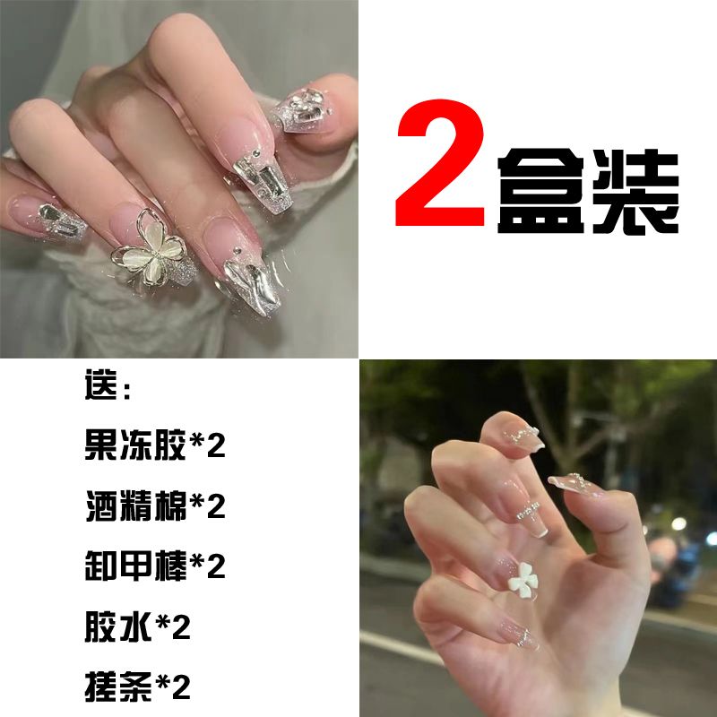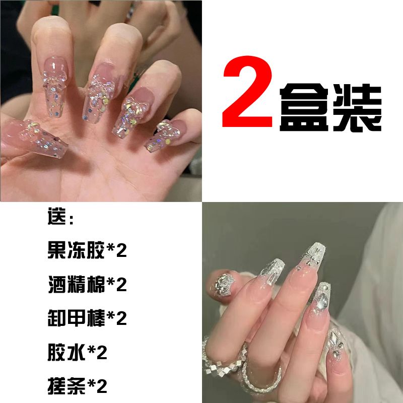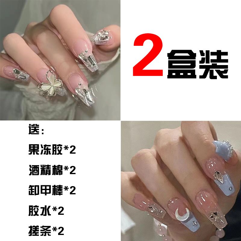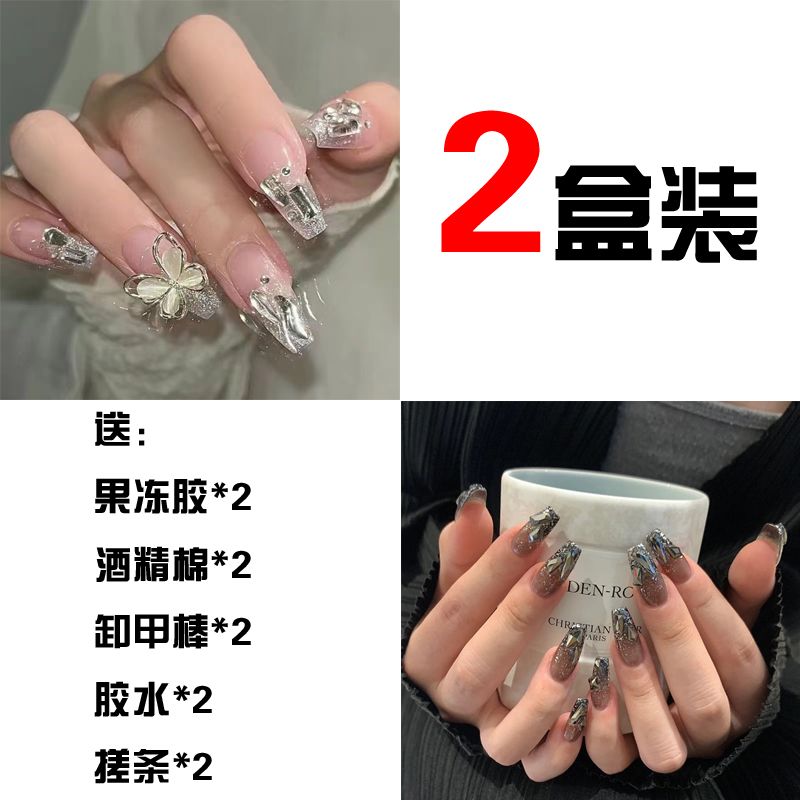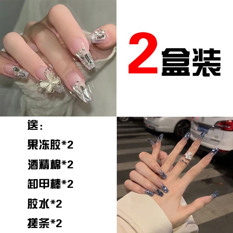 手工穿戴甲批发网红爆款碎钻蝴蝶闪粉美甲甲片成品指甲贴片果冻胶