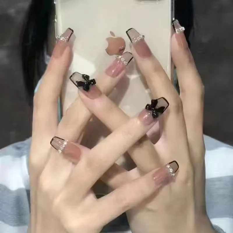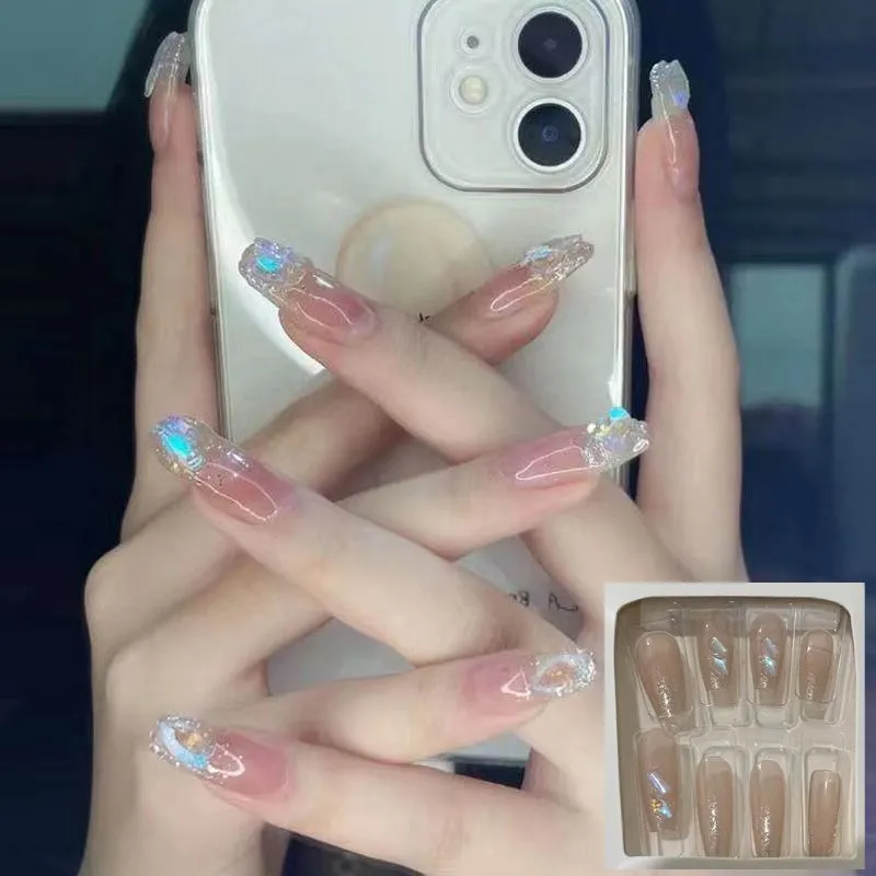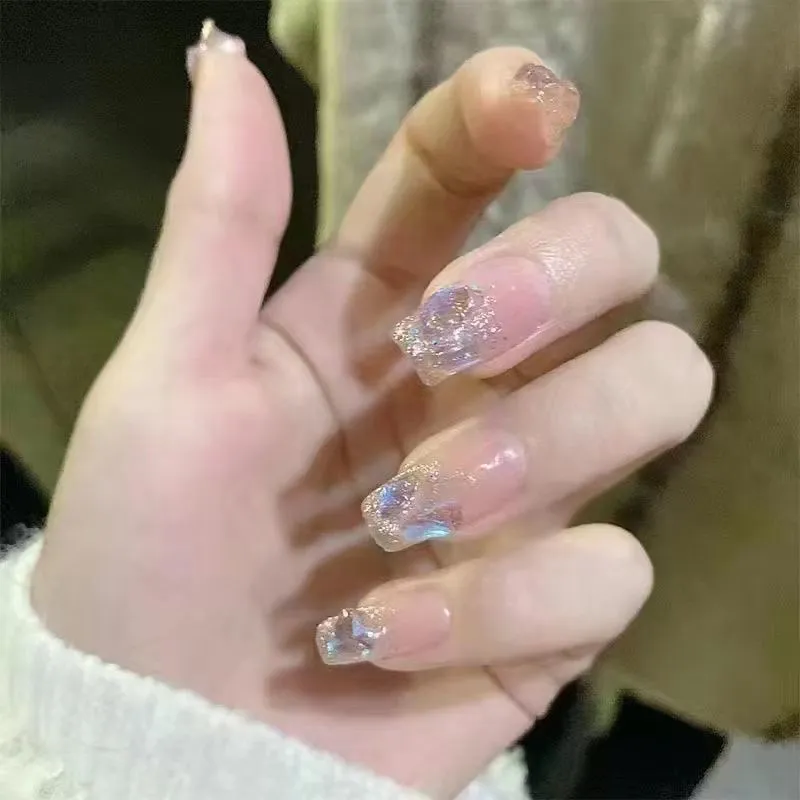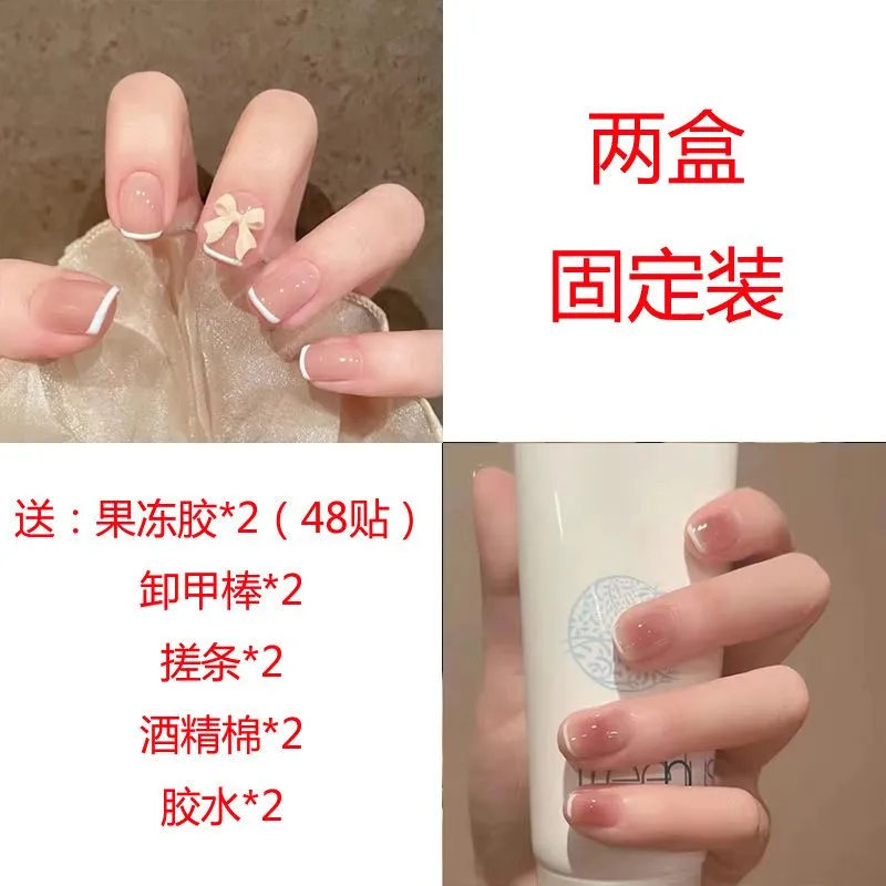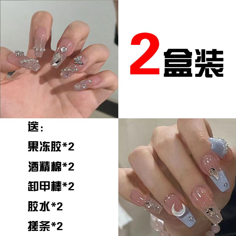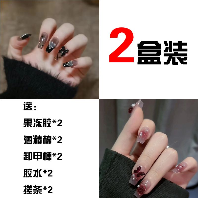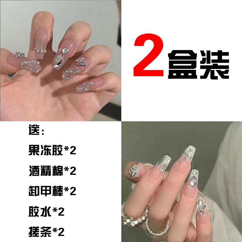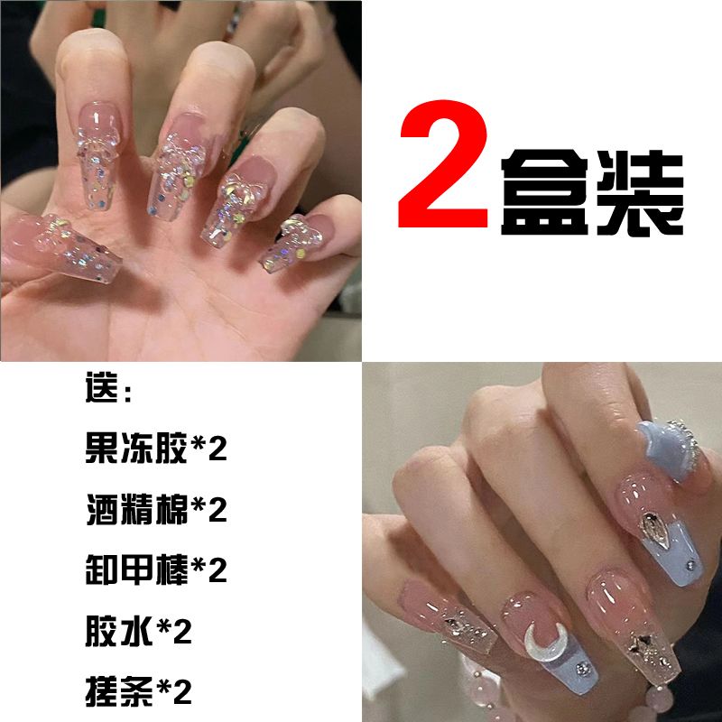 手工穿戴甲批发网红爆款碎钻蝴蝶闪粉美甲甲片成品指甲贴片果冻胶