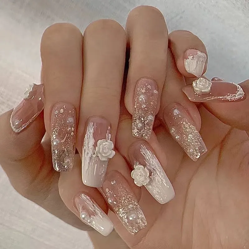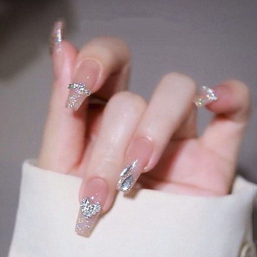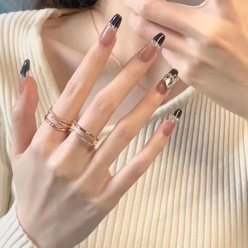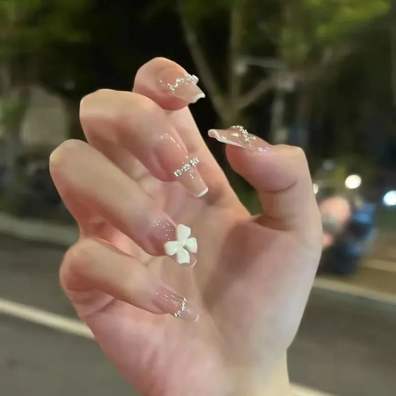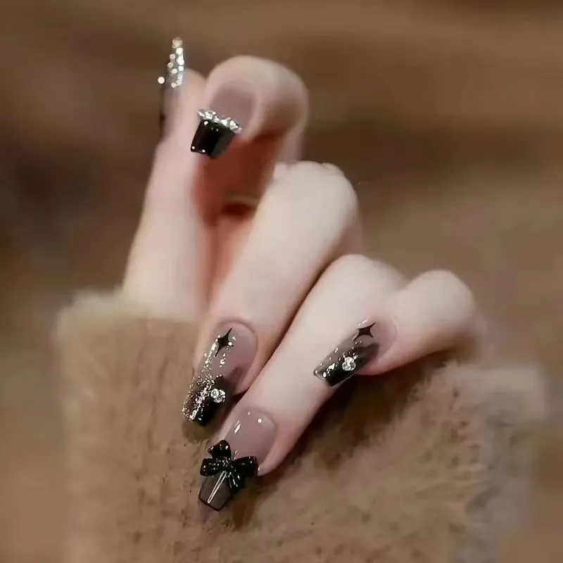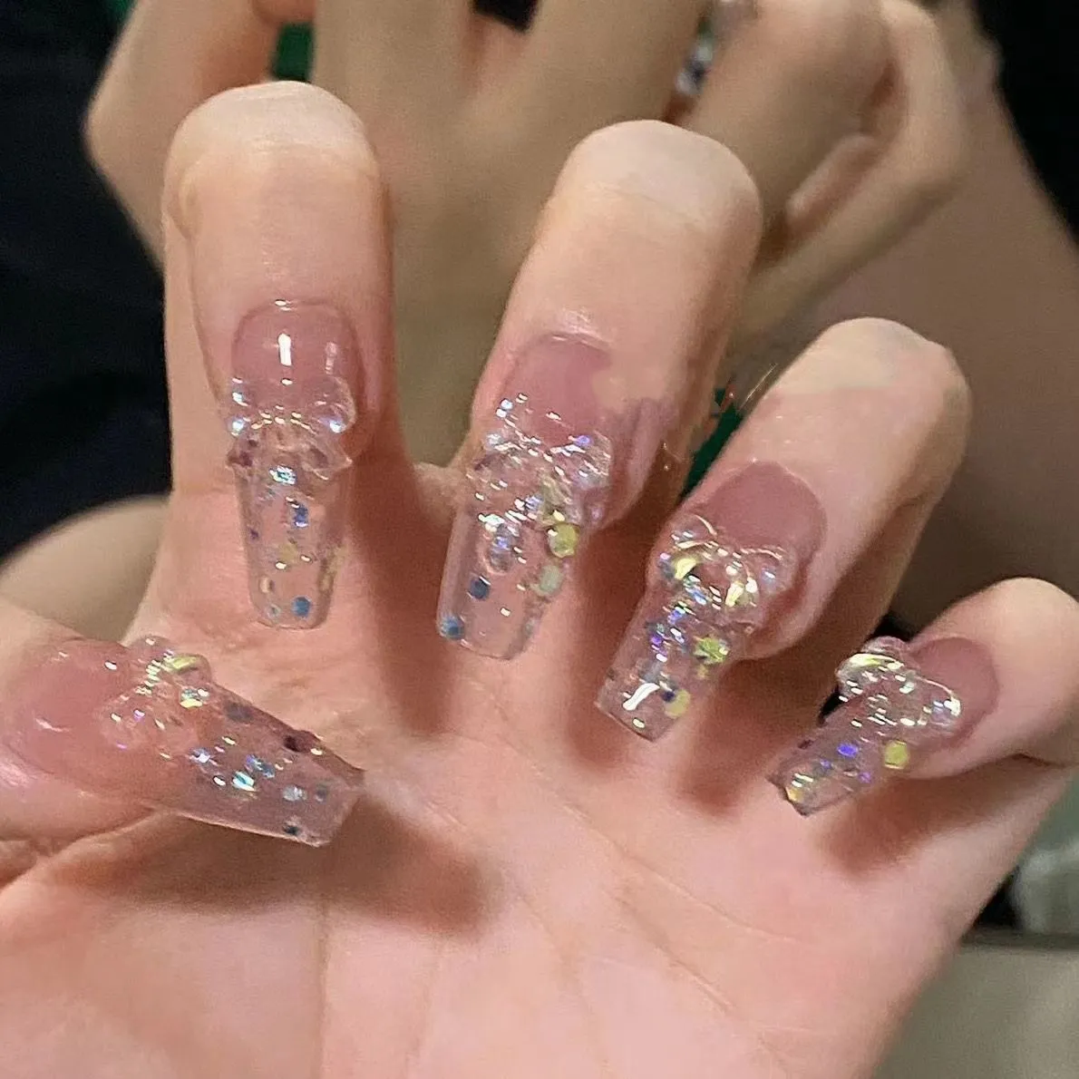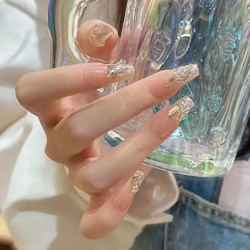 手工穿戴甲批发网红爆款碎钻蝴蝶闪粉美甲甲片成品指甲贴片果冻胶