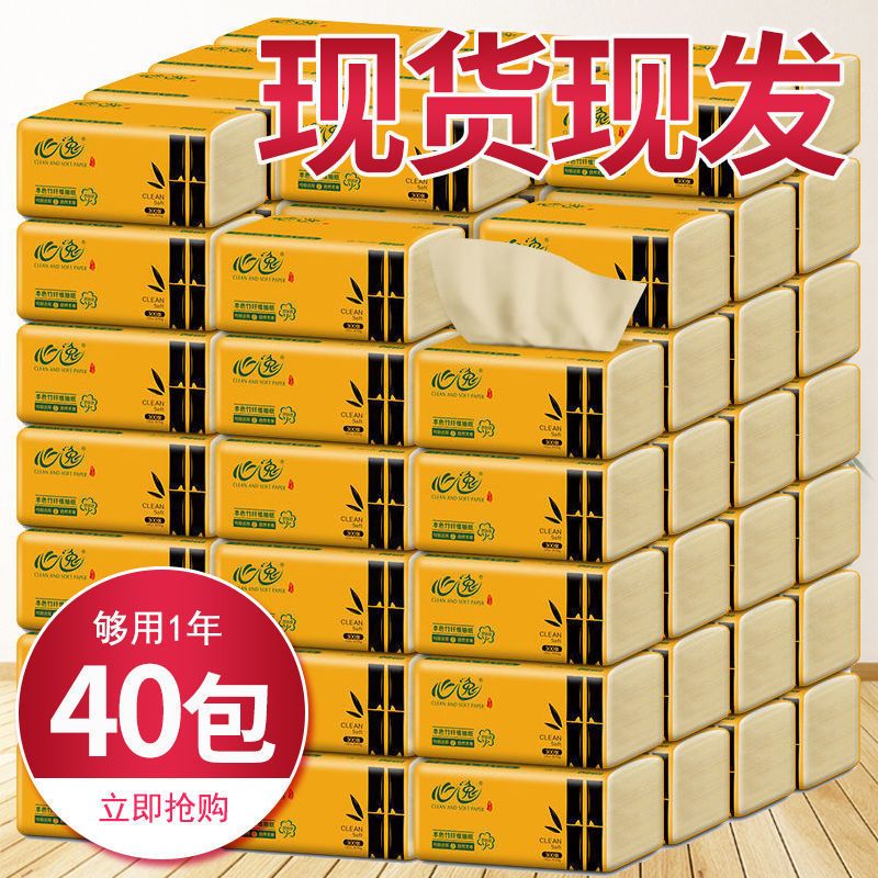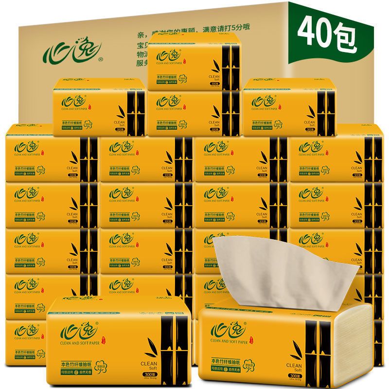 心逸40包竹浆本色家用抽纸面巾纸巾卫生纸厕纸擦手纸24包餐巾纸抽