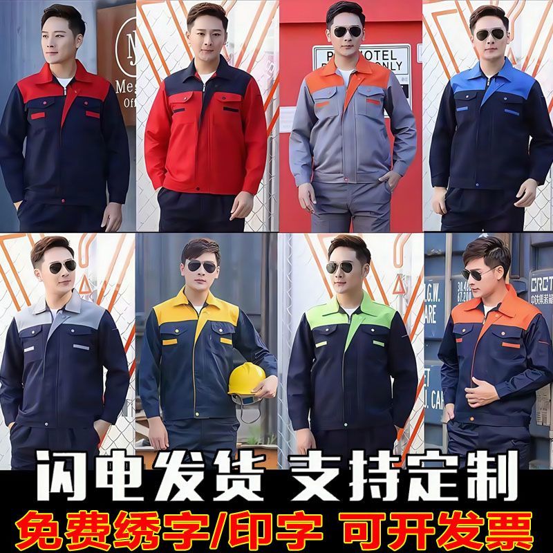 工作服男女套装劳保耐磨工厂车间汽修工地春秋工装长袖上衣绣字