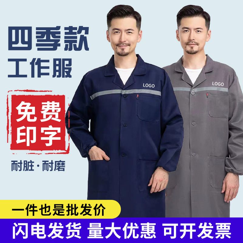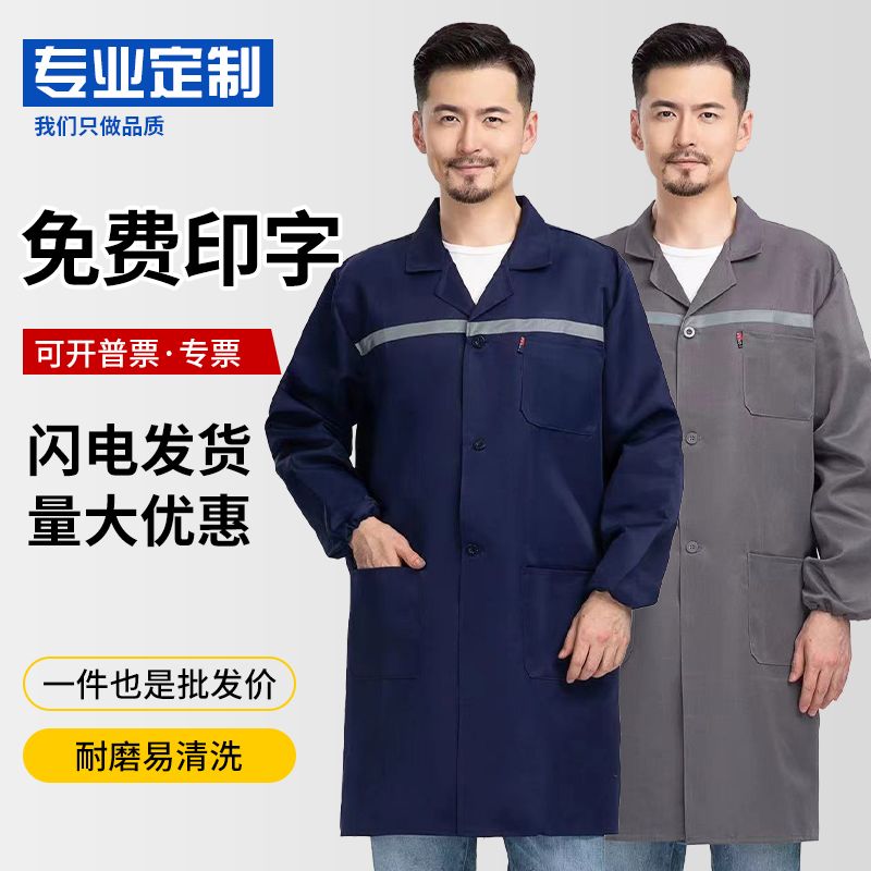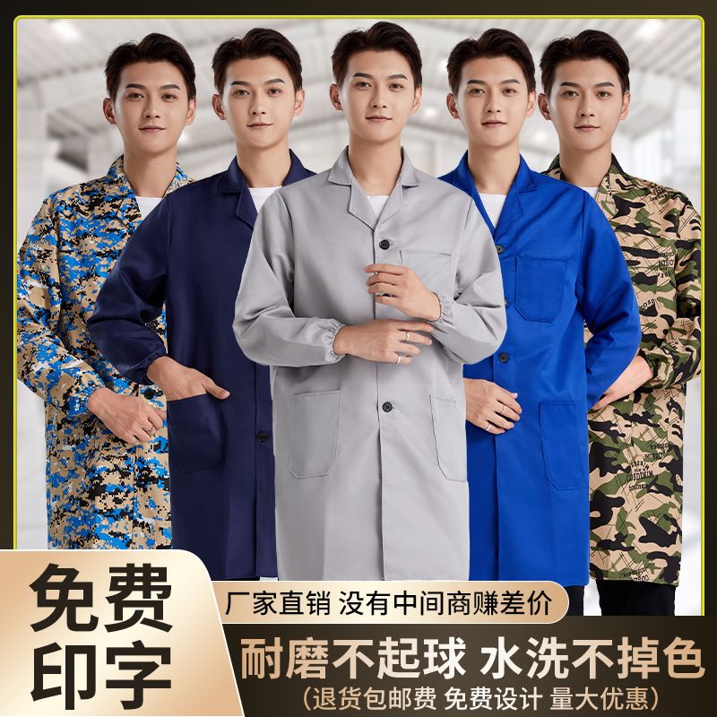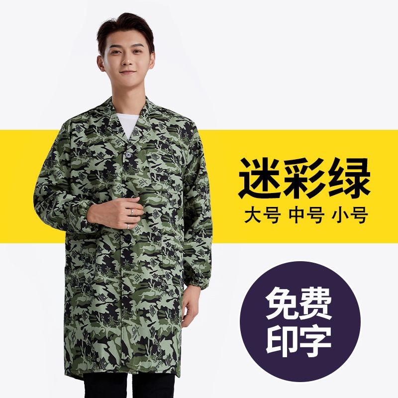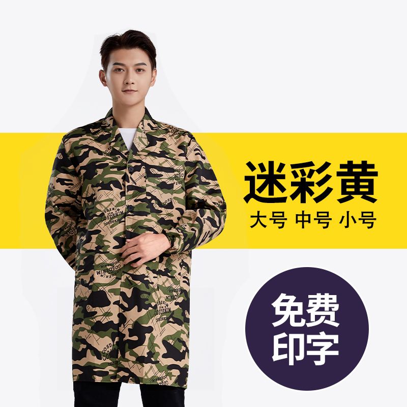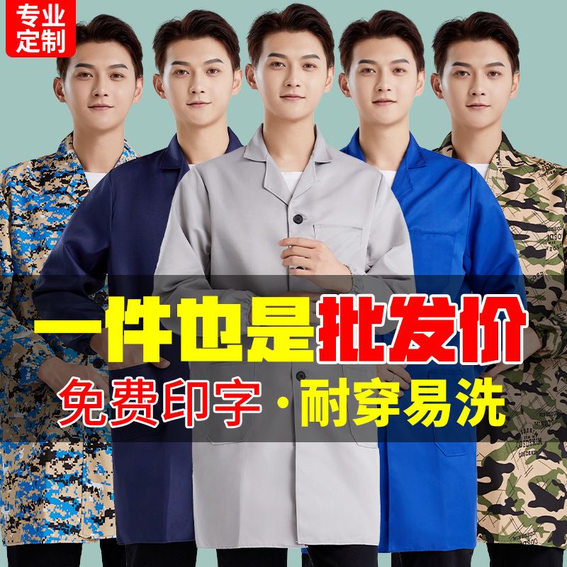 工作服大褂耐脏长款干活男蓝大褂长袖防尘迷彩汽修搬运罩衣定制