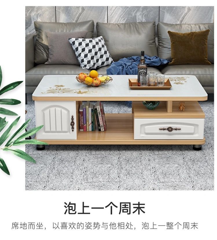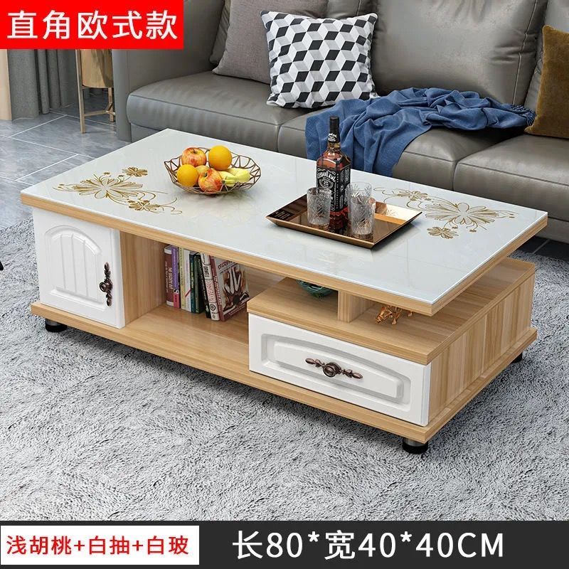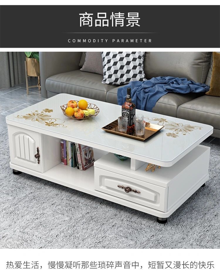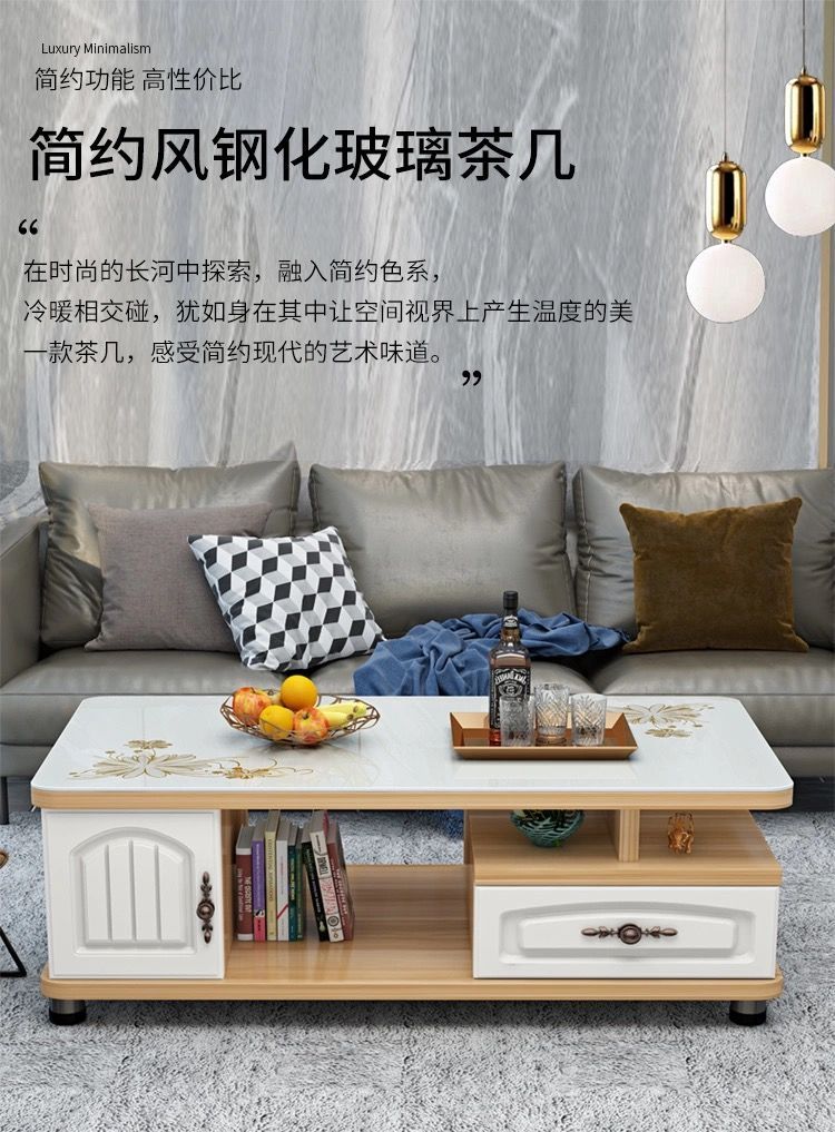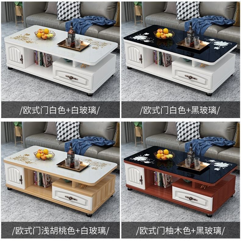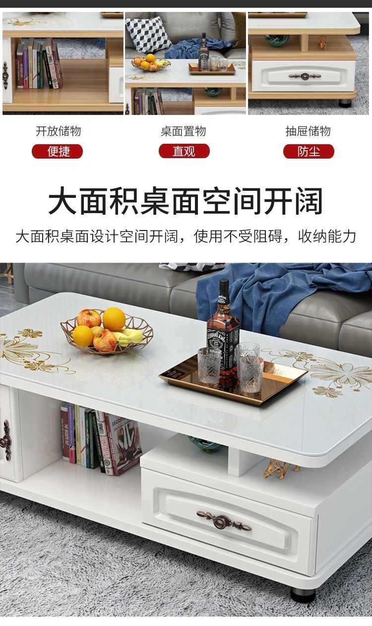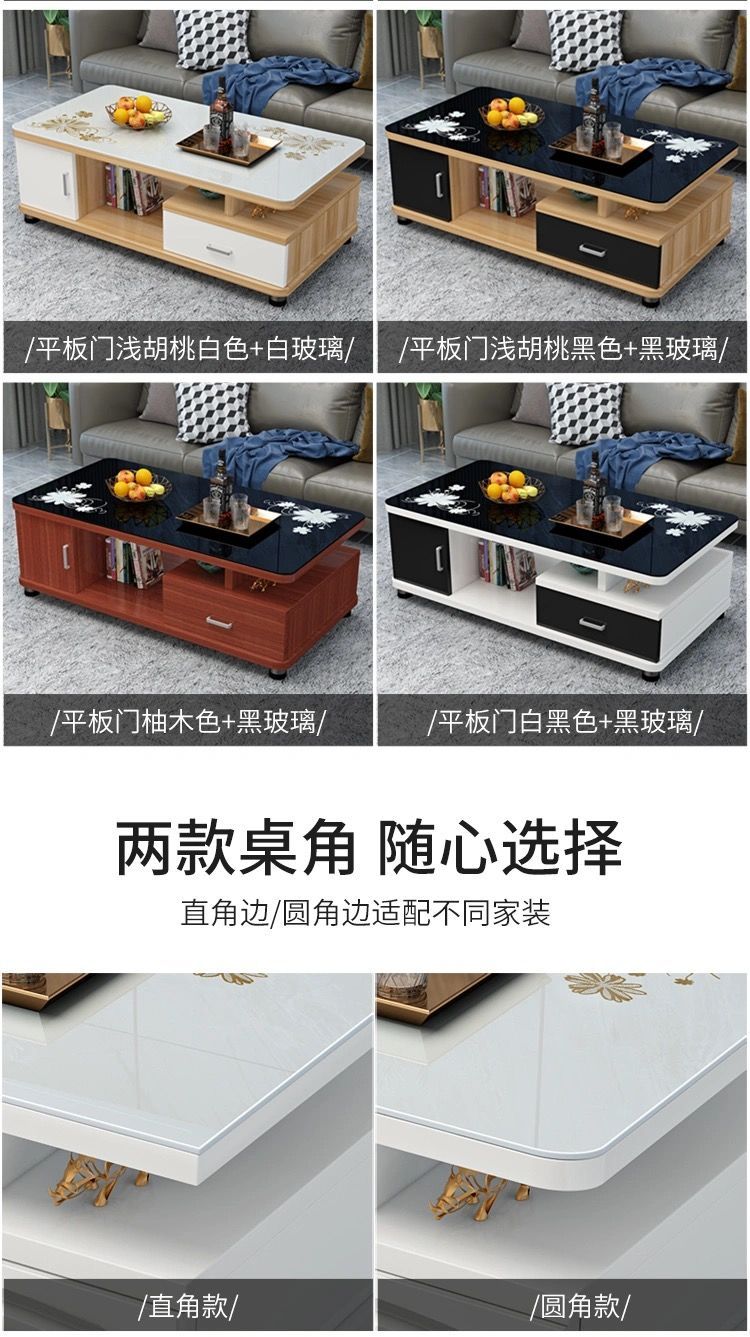 欧式圆角茶几简约现代电视柜茶几组合小户型钢化玻璃茶桌桌子客厅