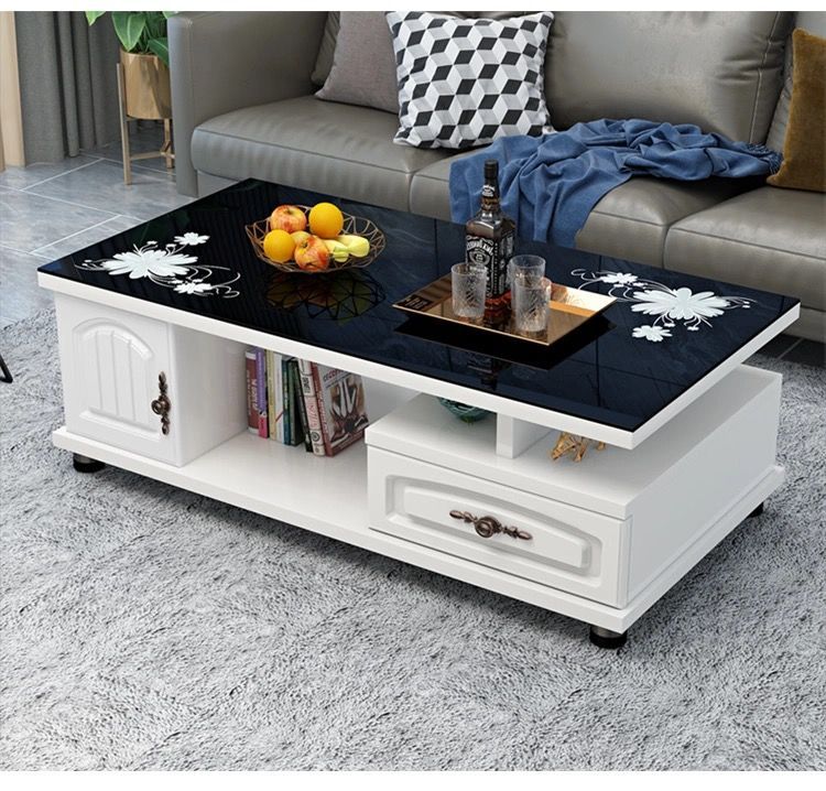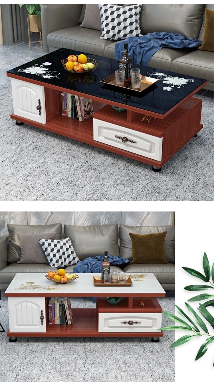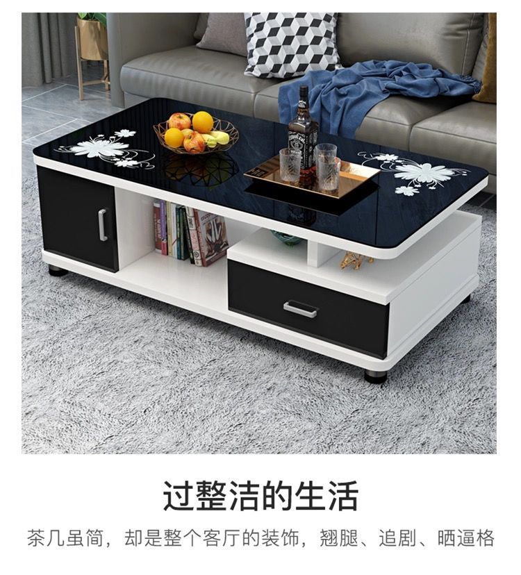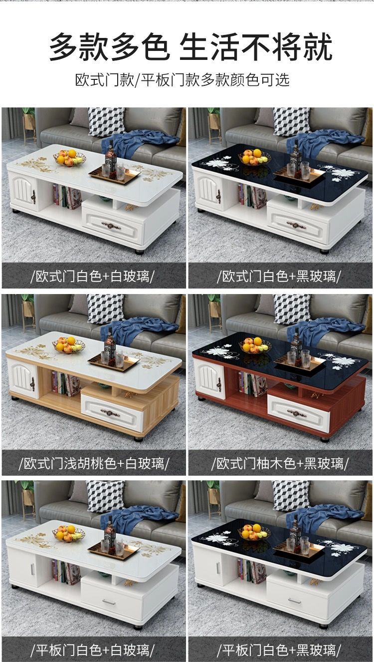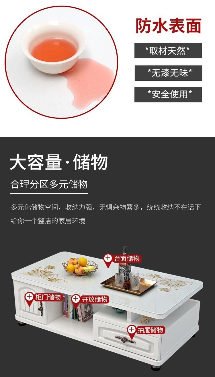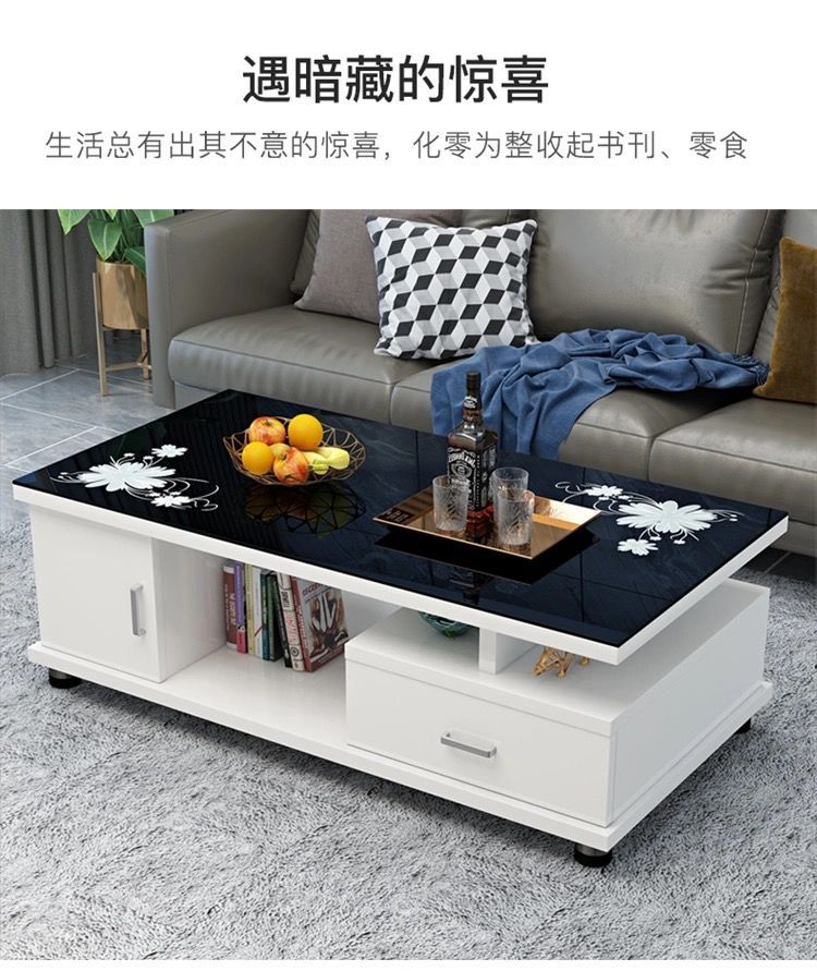 欧式圆角茶几简约现代电视柜茶几组合小户型钢化玻璃茶桌桌子客厅