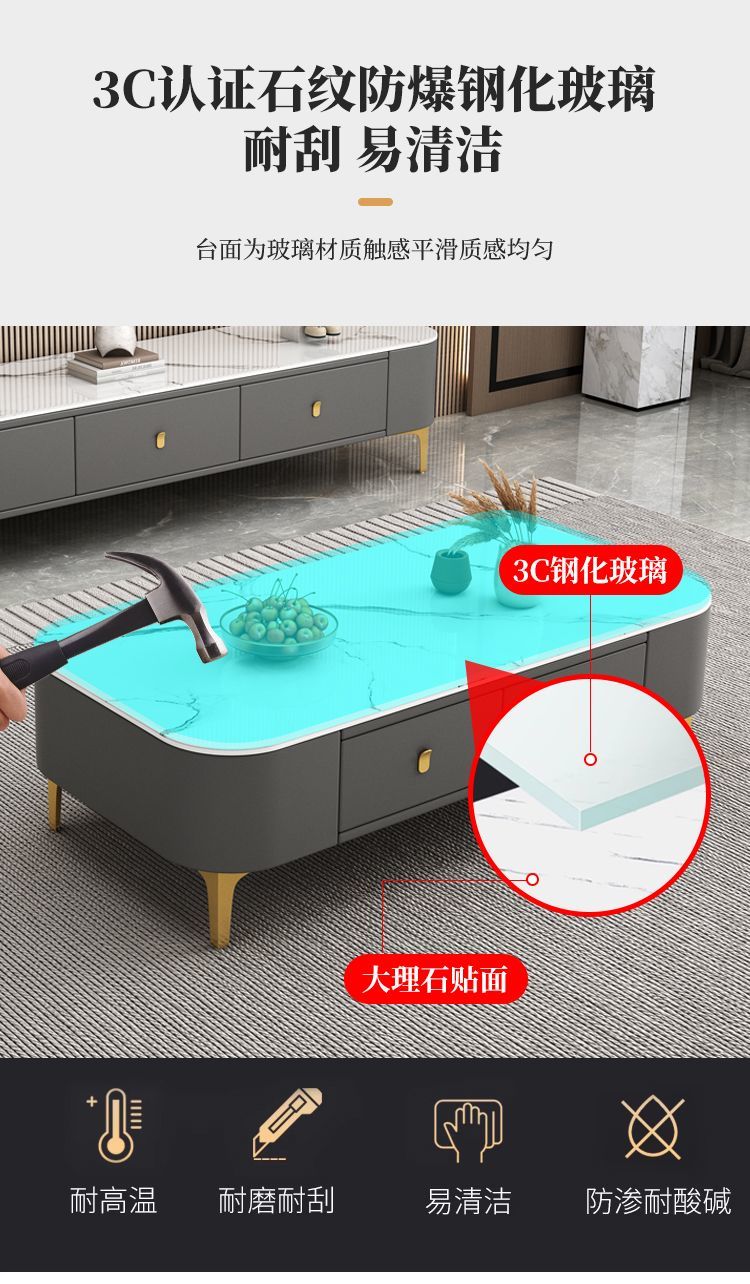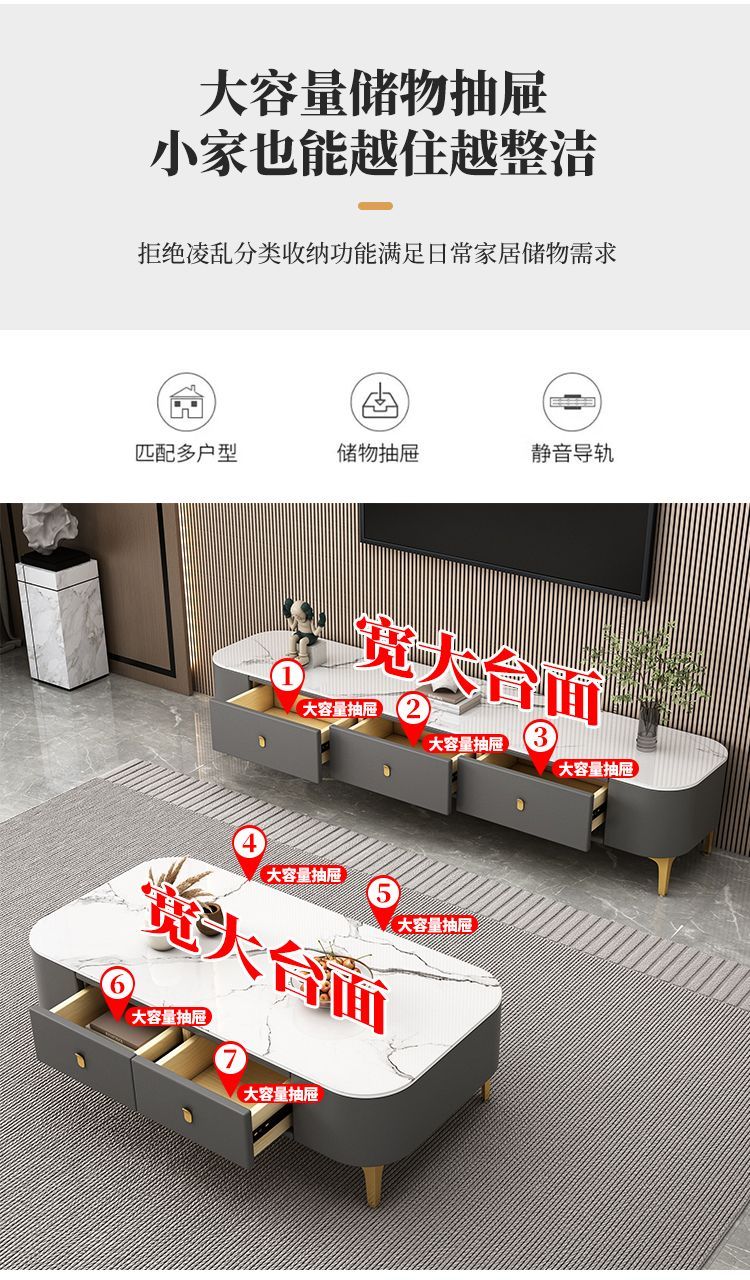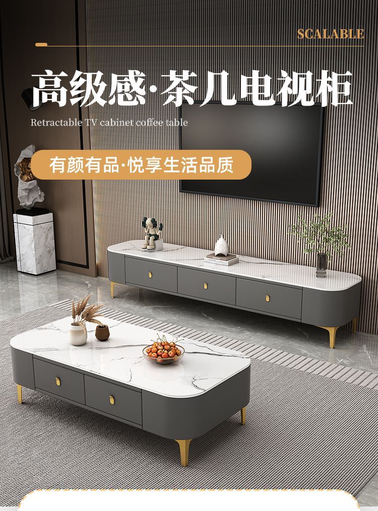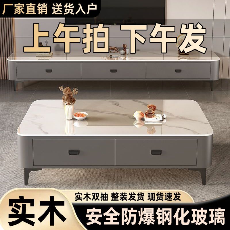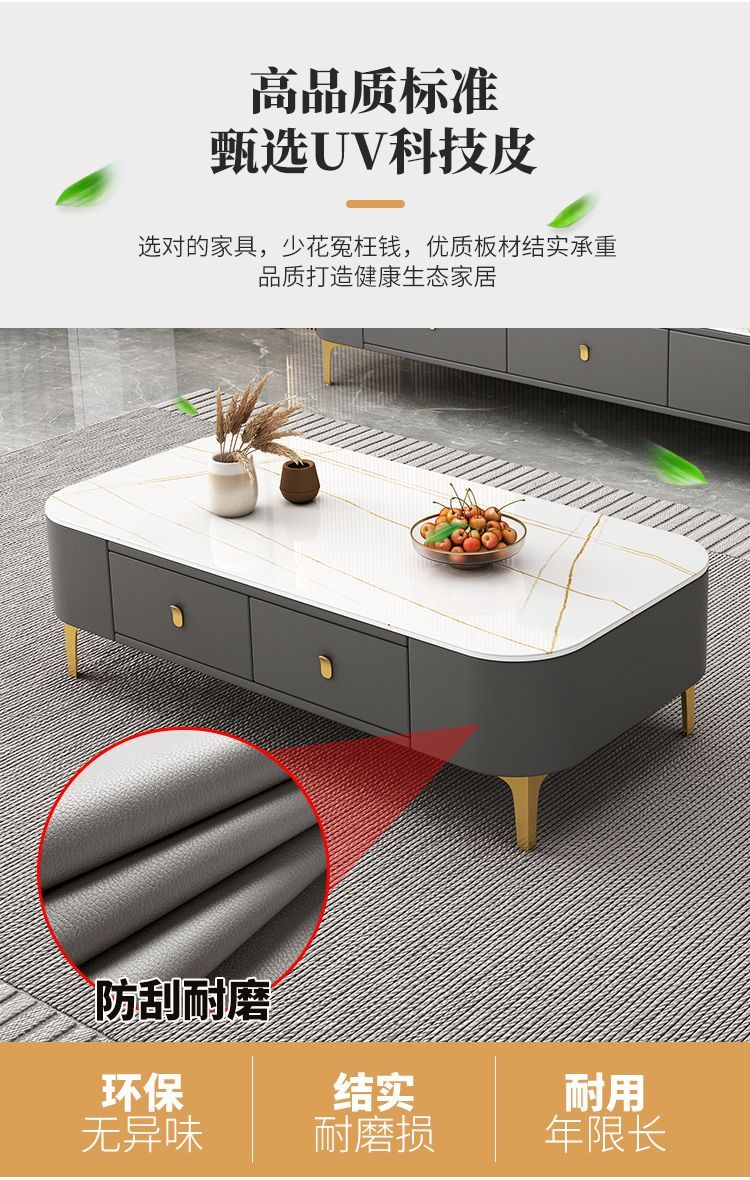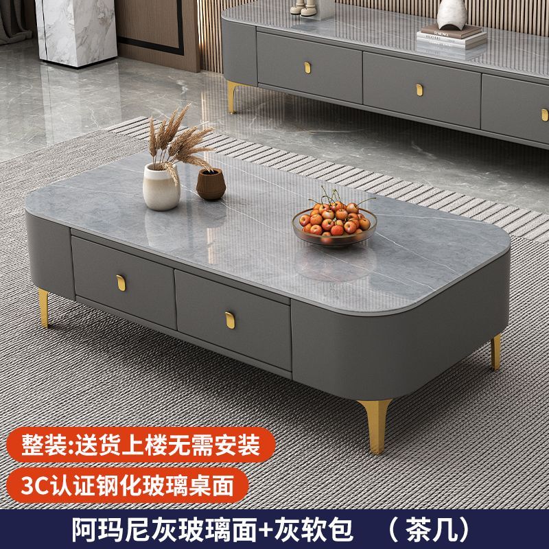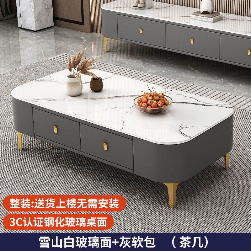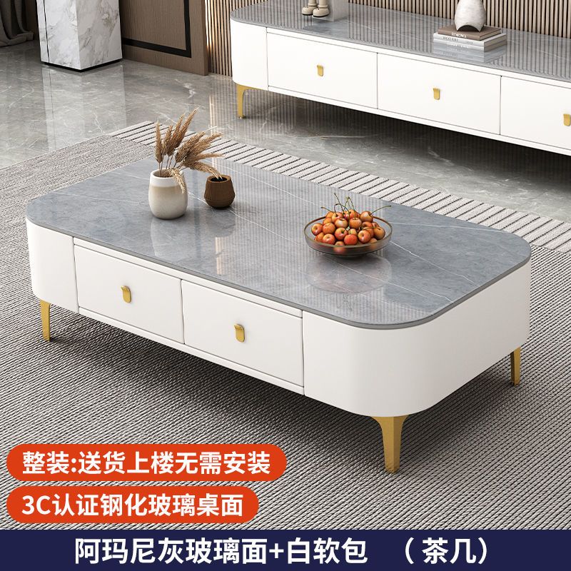 茶几客厅家用现代简约小户型茶桌免安装软包轻奢茶几电视机柜组合