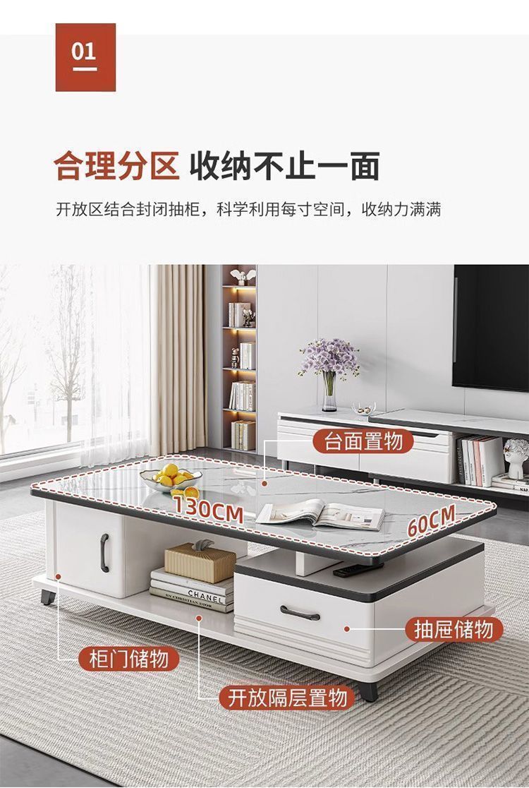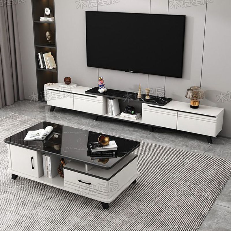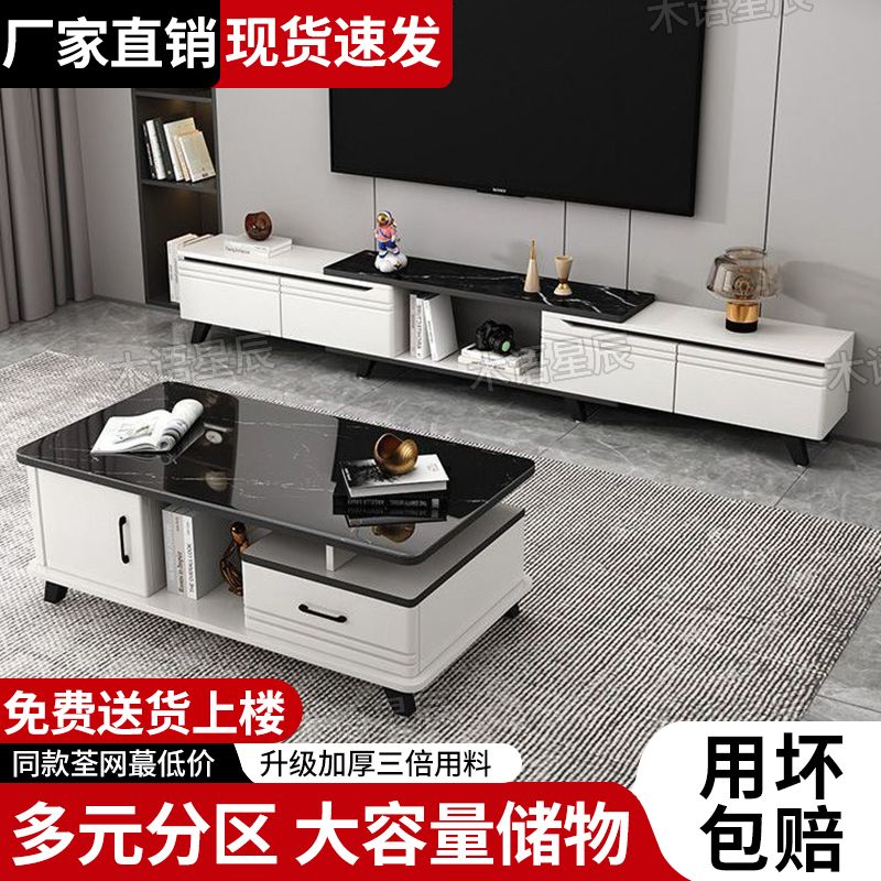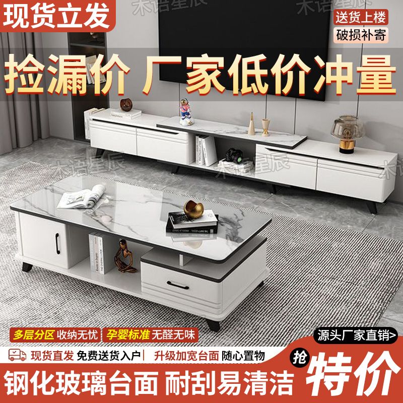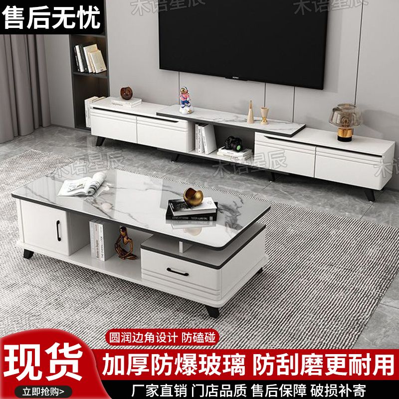 电视柜现代简约小户型客厅家用落地轻奢高级感玻璃茶几电视柜组合