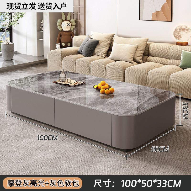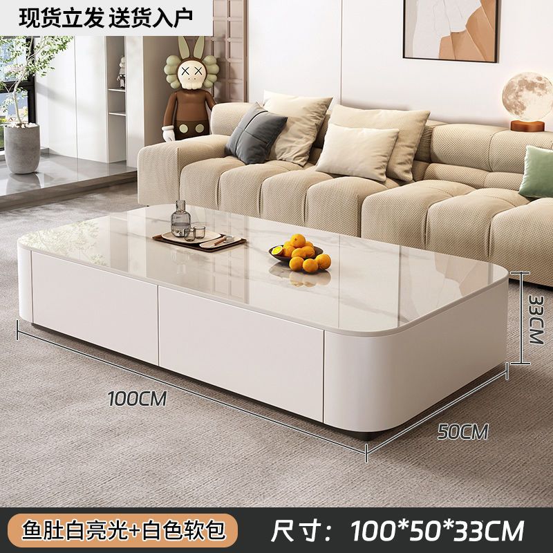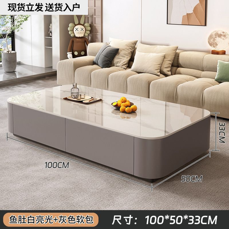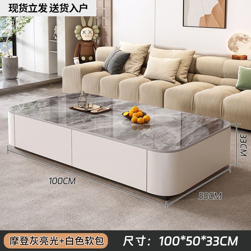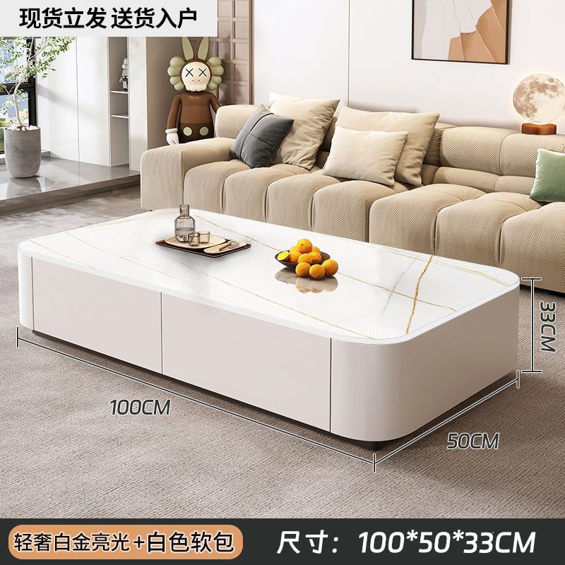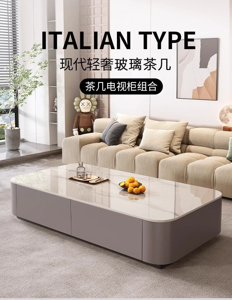 轻奢茶几家用客厅小户型2024新款简约现代落地玻璃茶几电视柜组合