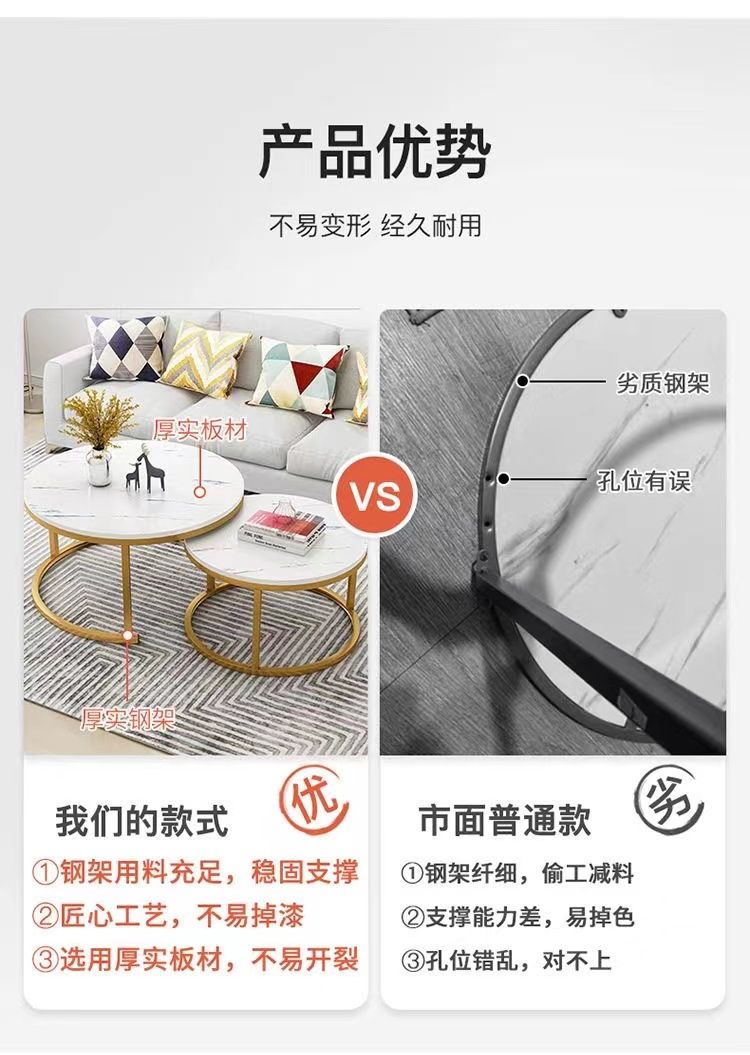 北欧茶几小户型轻奢组合圆形边几简约现代家用小圆桌卧室客厅阳台