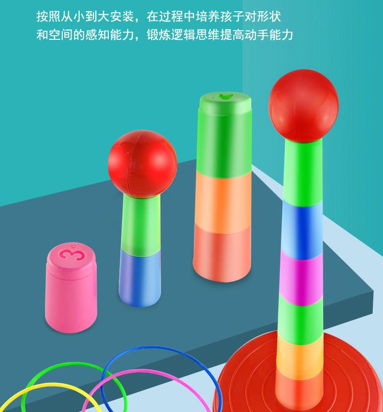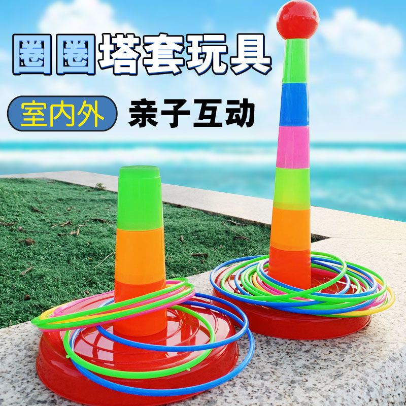 儿童投掷套圈玩具套圈圈叠叠乐彩虹塔叠叠高早教游戏地摊套圈圈环