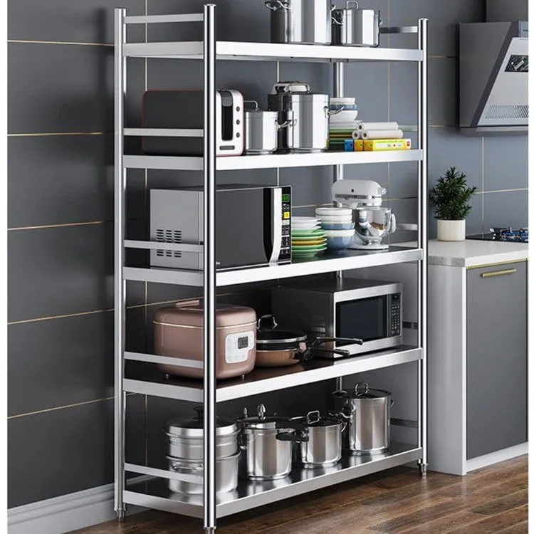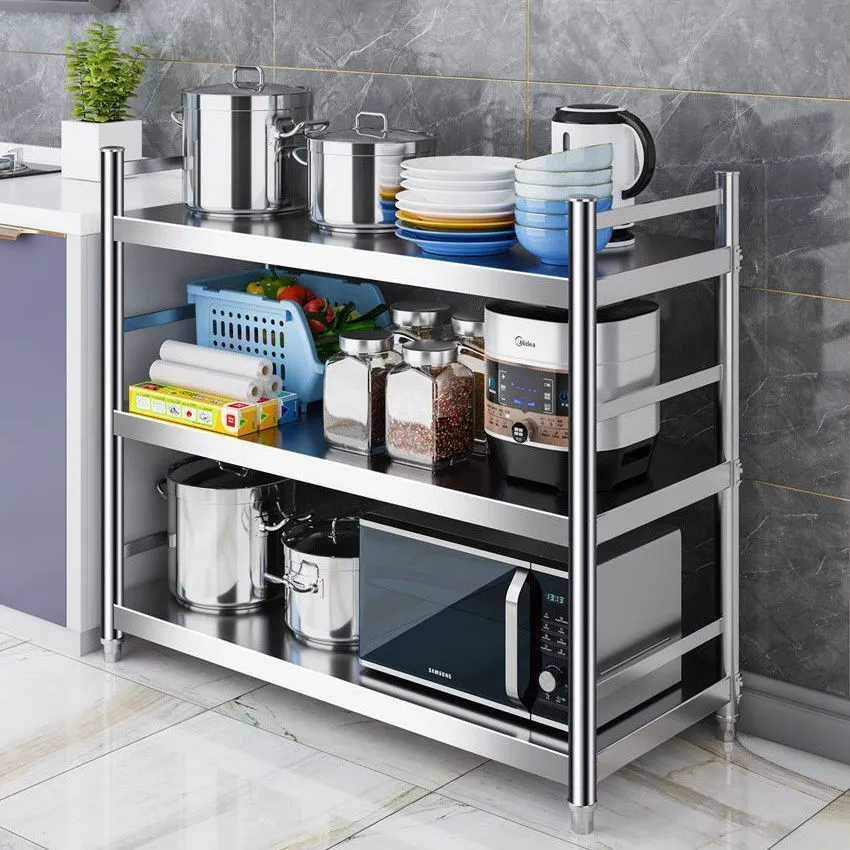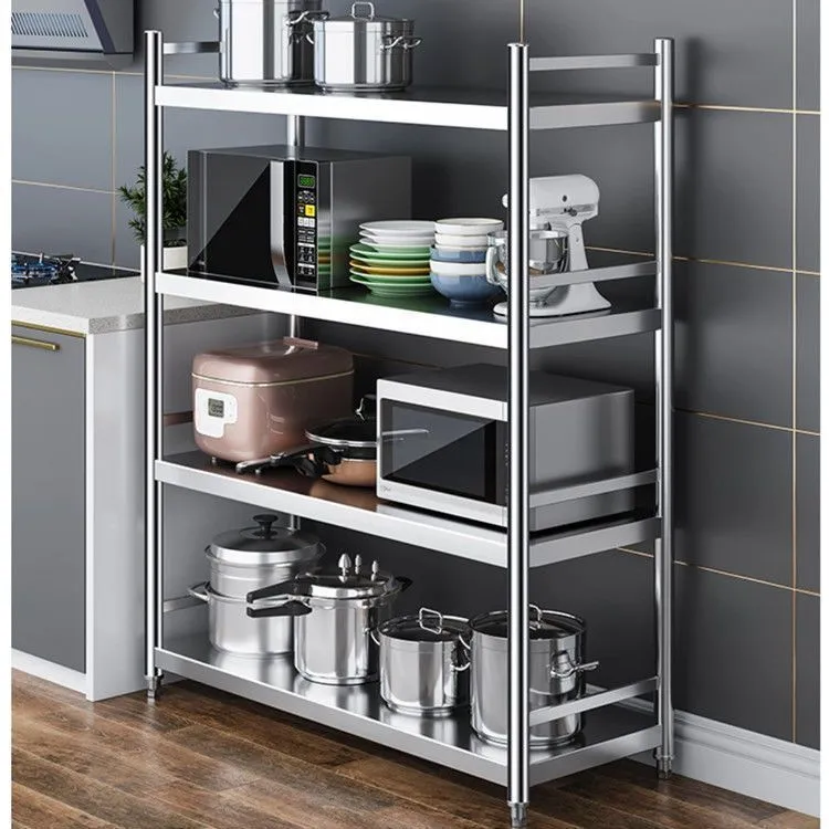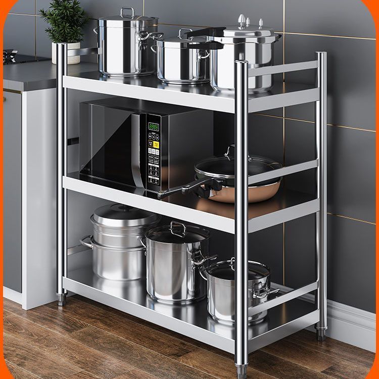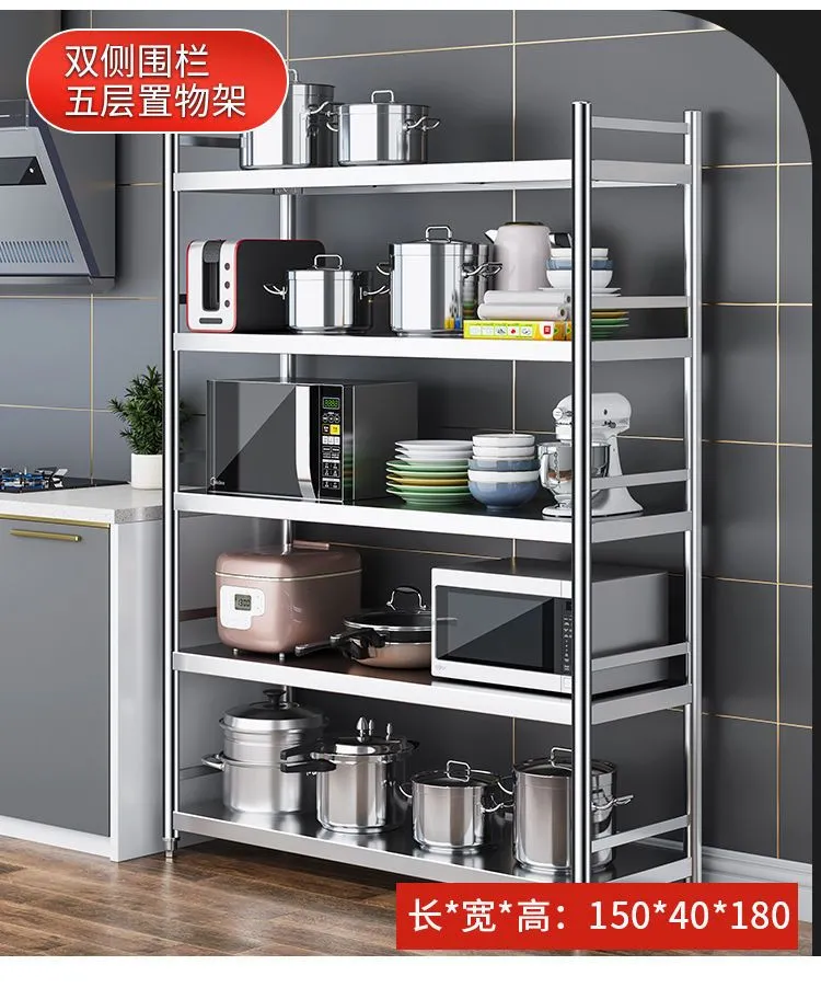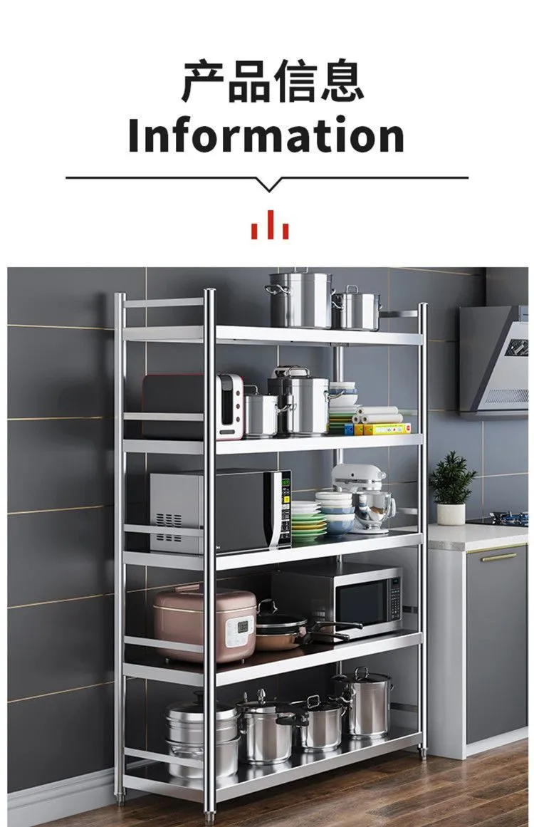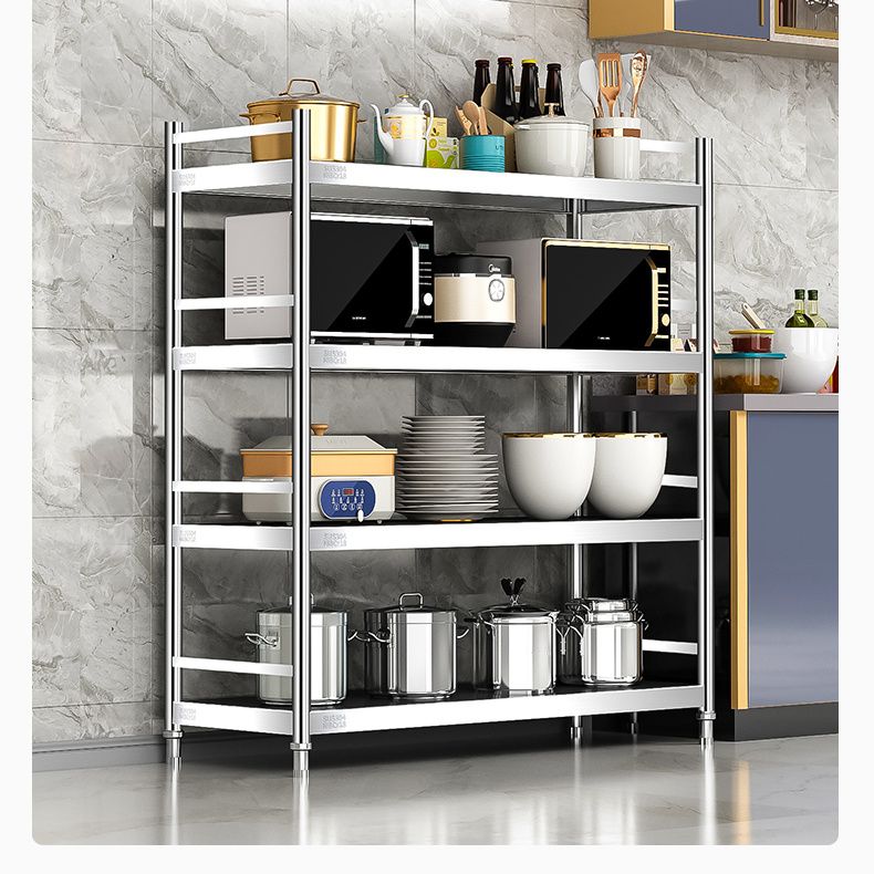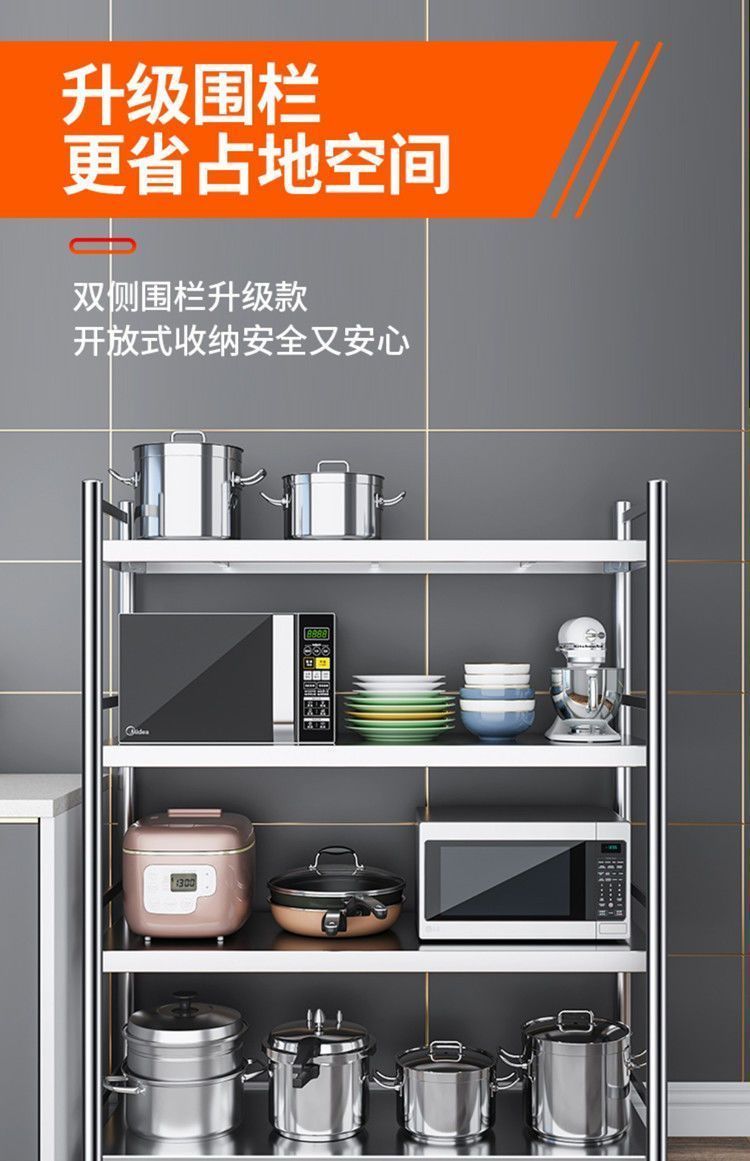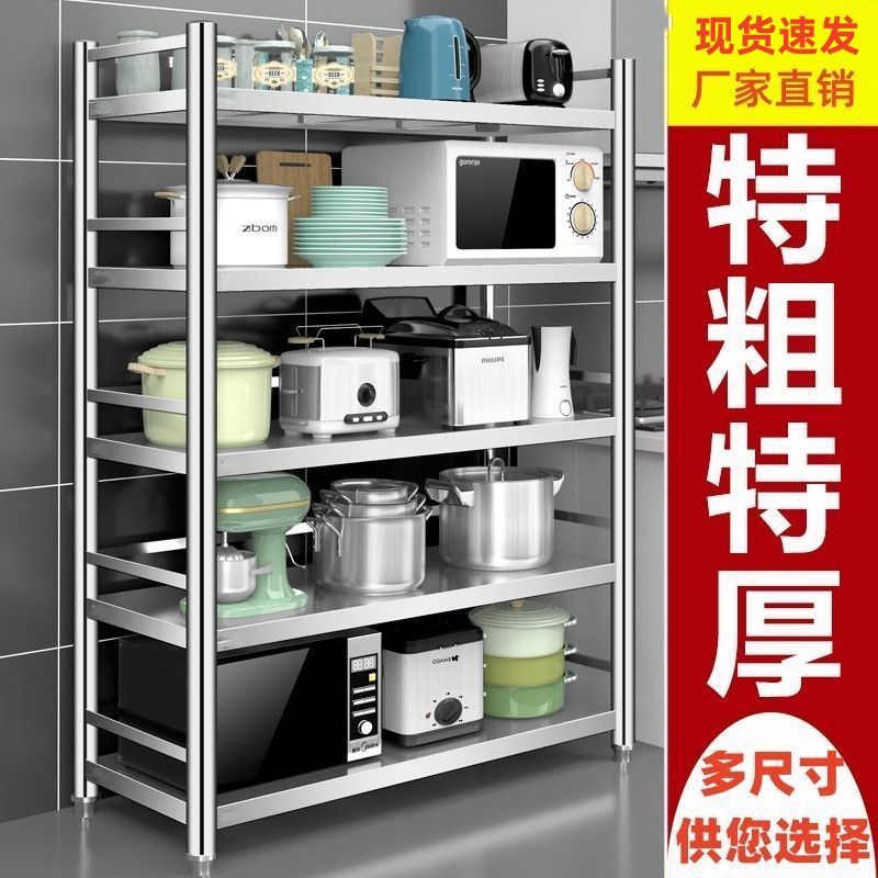 加厚不锈钢厨房置物架落地多层微波炉收纳架储物架烤箱整理架锅架