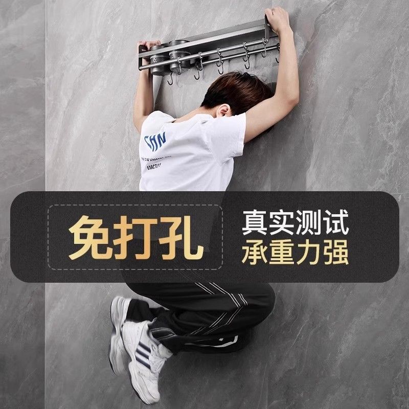 厨房免打孔调味料置物架挂钩架挂勺子铲子壁挂刀具架多功能收纳架