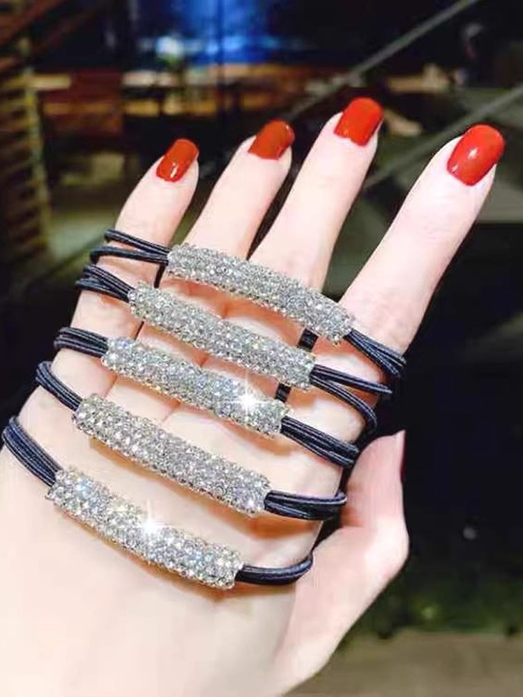 高端带钻发圈百搭水钻发绳扎高马尾高弹力耐用头绳亮晶晶闪钻皮筋