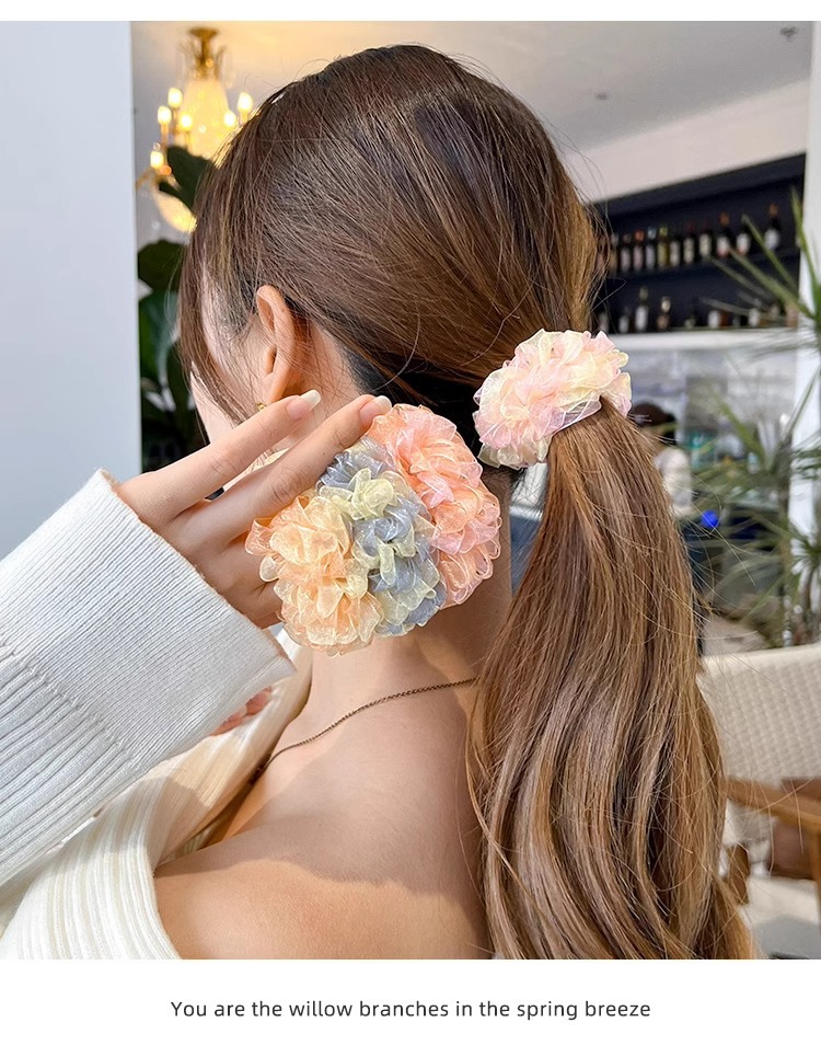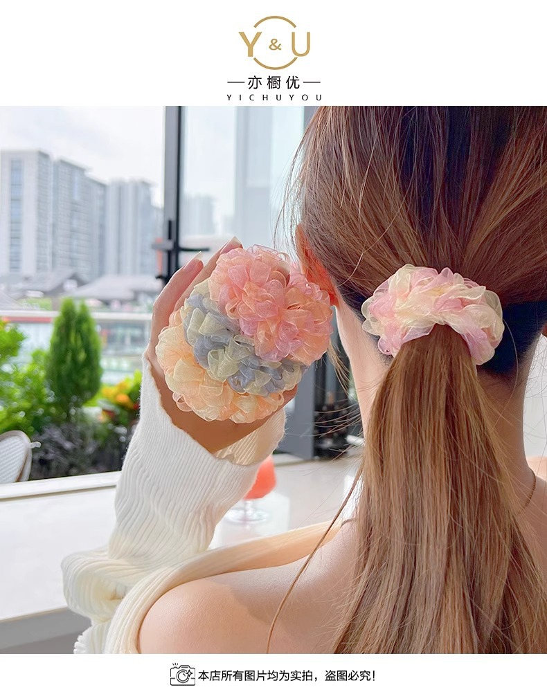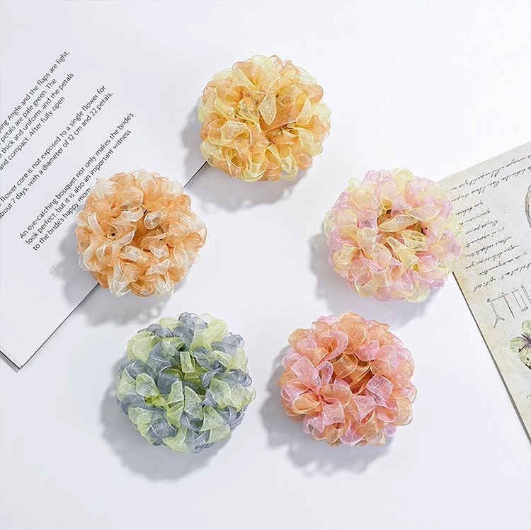 新款头绳高弹力网纱丸子头发绳扎头发皮筋清新盘发头饰高马尾发圈