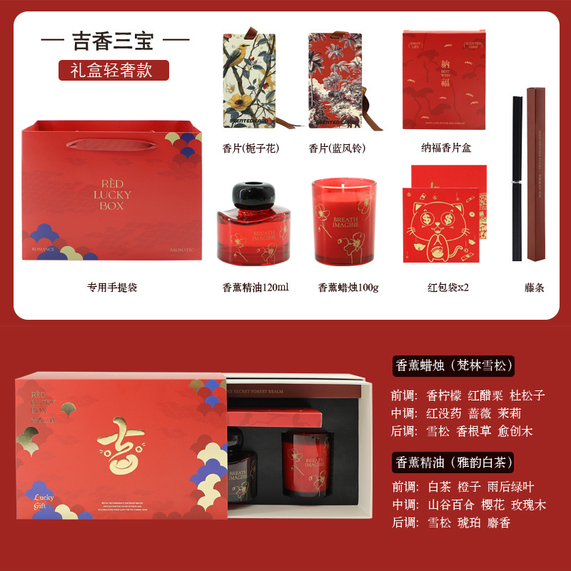 蛇年香薰蜡烛礼盒套装结婚伴手礼红色高级感香熏礼品38妇女节礼物