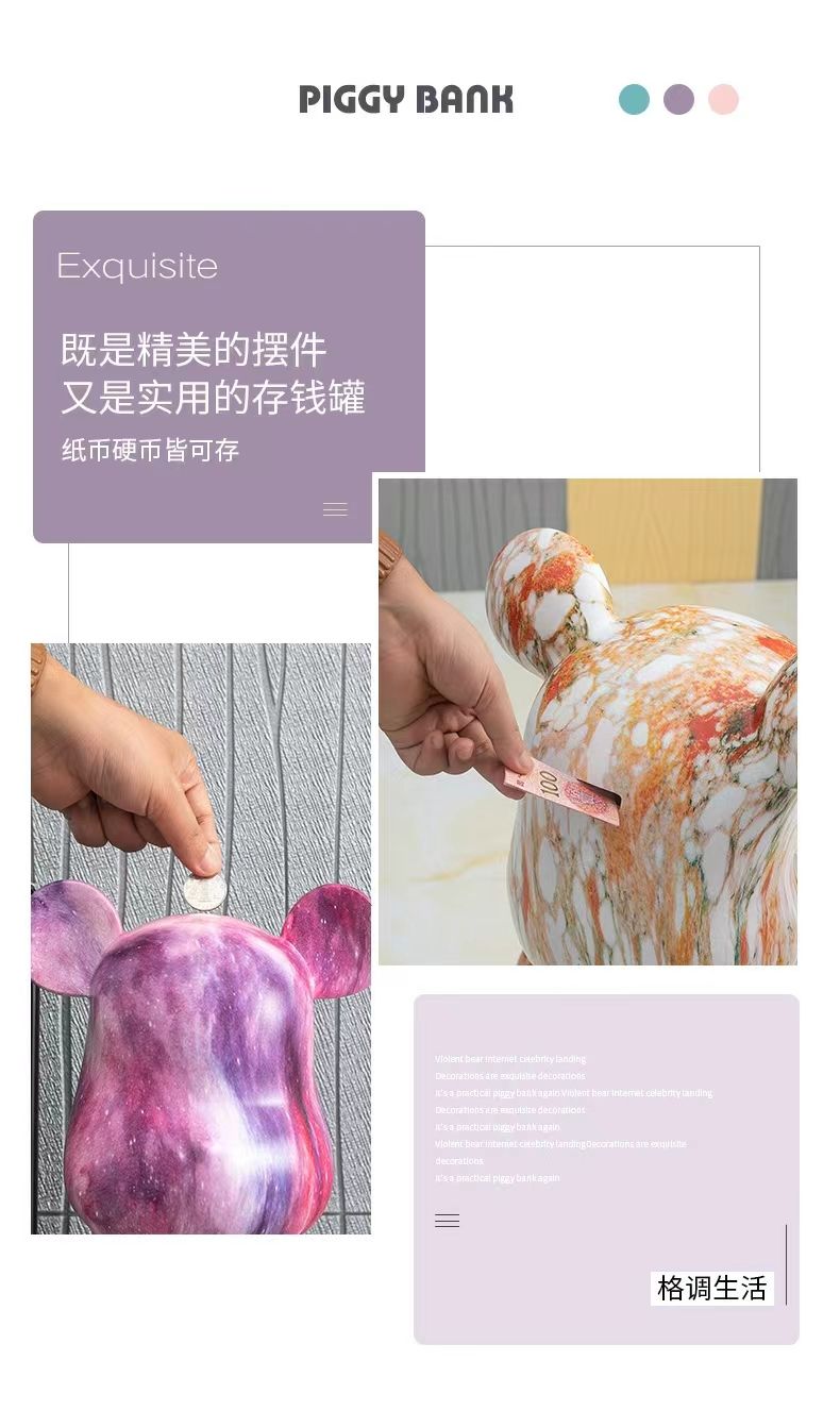 网红潮玩卡通暴力熊客厅摆件存钱罐现代简约落地电视柜装饰礼品