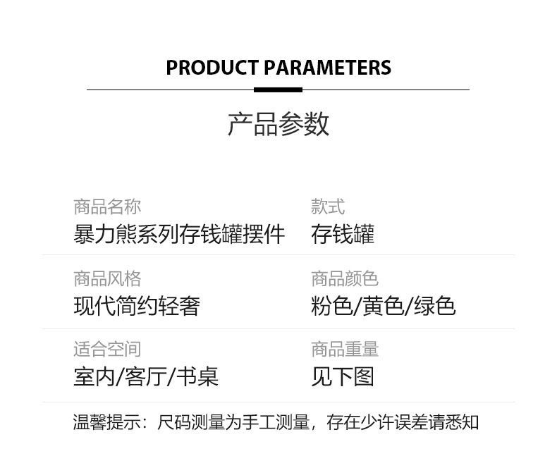 暴力熊存钱罐网红男女孩存钱筒卡通创意熊储蓄罐客厅家居玄关摆件