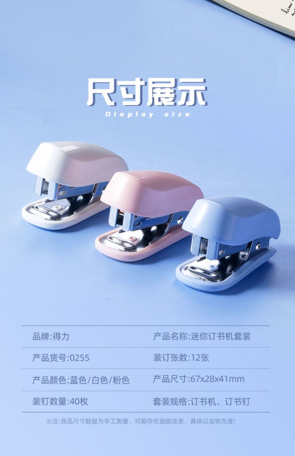 得力订书机迷你小号简约纯色透明小巧小款家用办公订书器学生专用