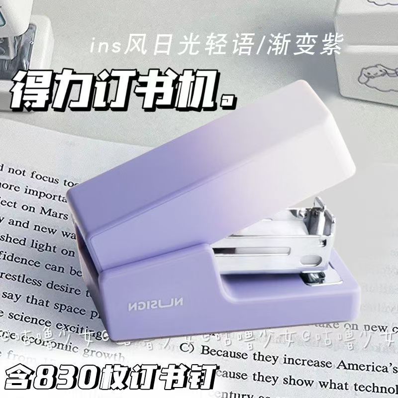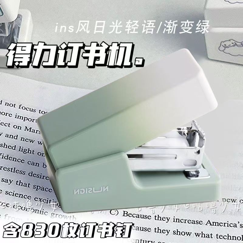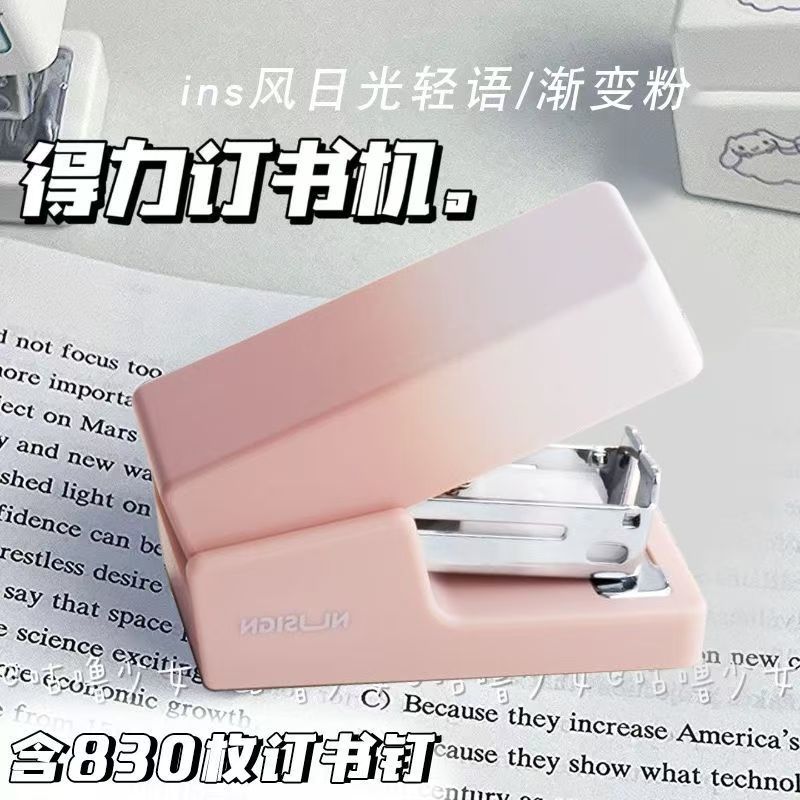 得力迷你订书机便携式小型学生新款渐变色高颜值办公神器高中生