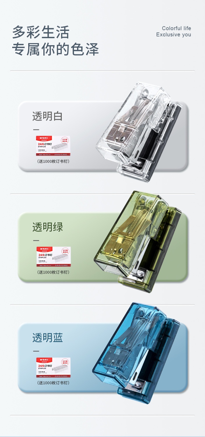 | 透明白-1个/送1000枚订书针 | USD $1.16 | 999999 piece available |