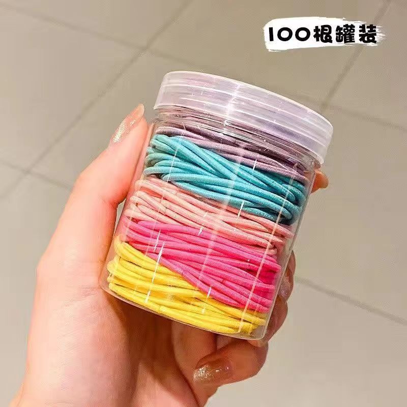 100根皮筋罐装基础发圈马卡龙皮筋ins风高颜值百搭橡皮筋扎头发绳