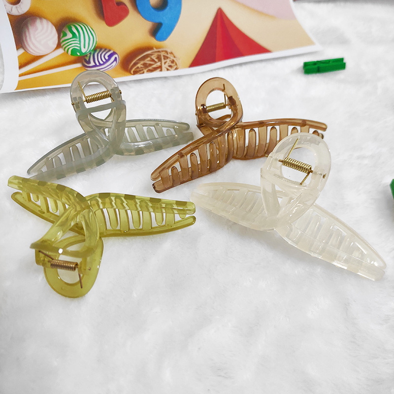 亚马逊韩版果冻色小号飘带抓夹2025春季热销配饰盘发鲨鱼夹批发