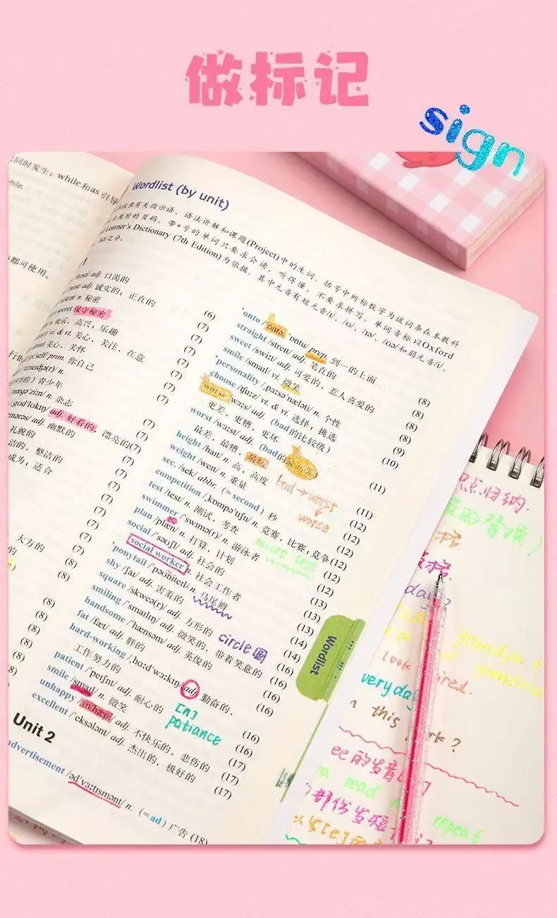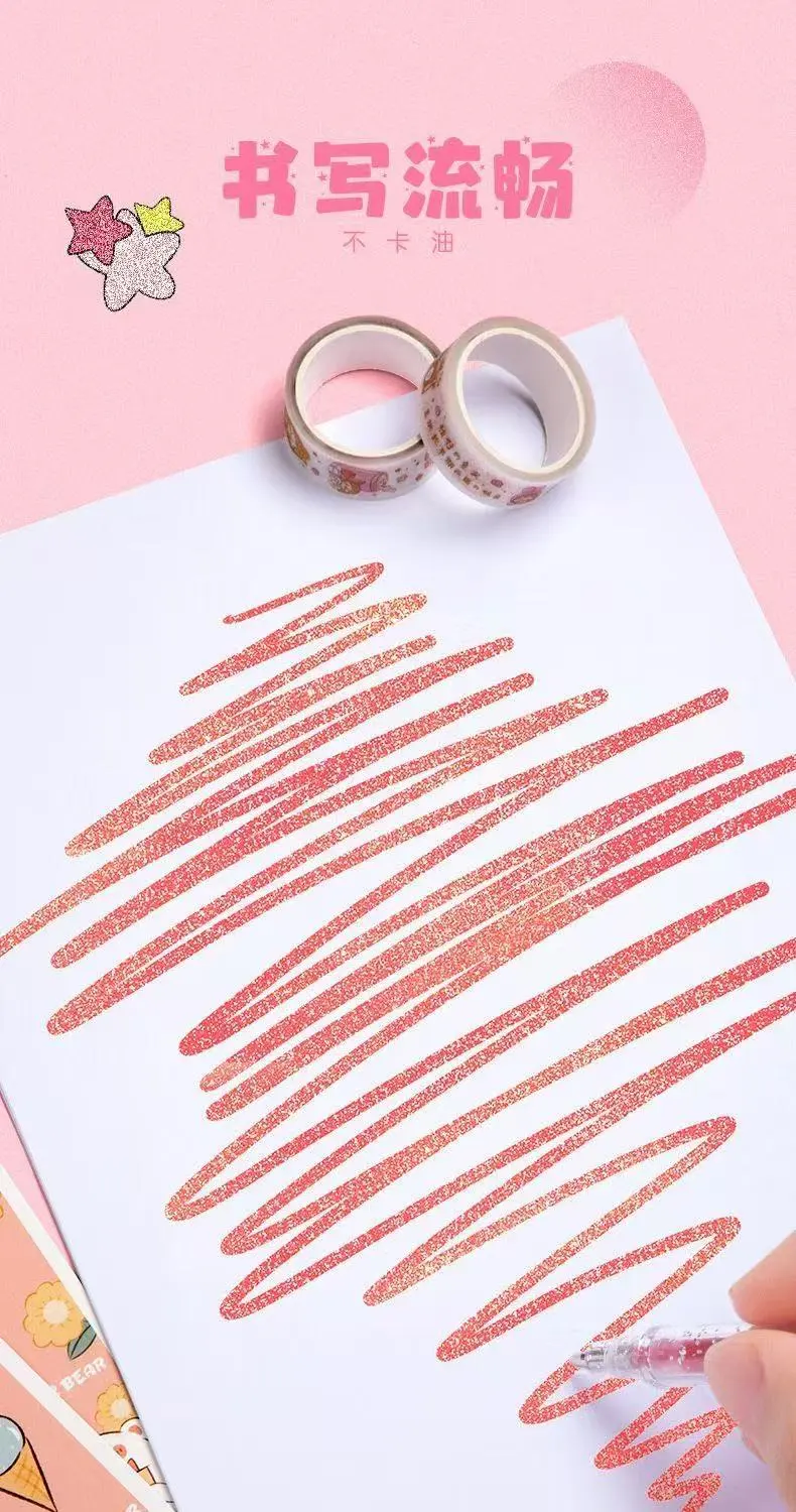 啫喱彩色闪光笔亮晶晶流沙可叠色荧光笔学生手账做笔记专用划重点