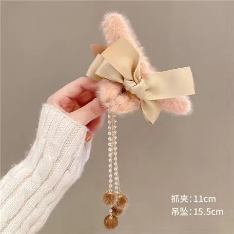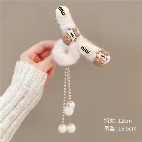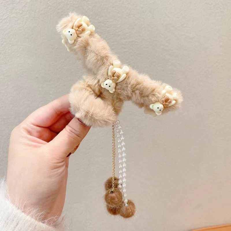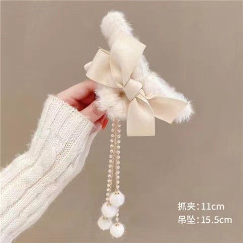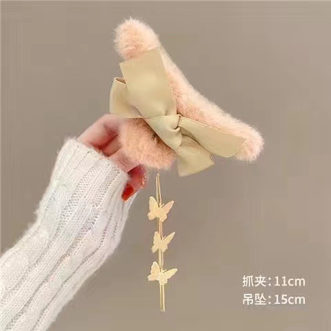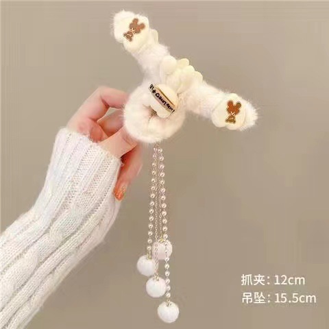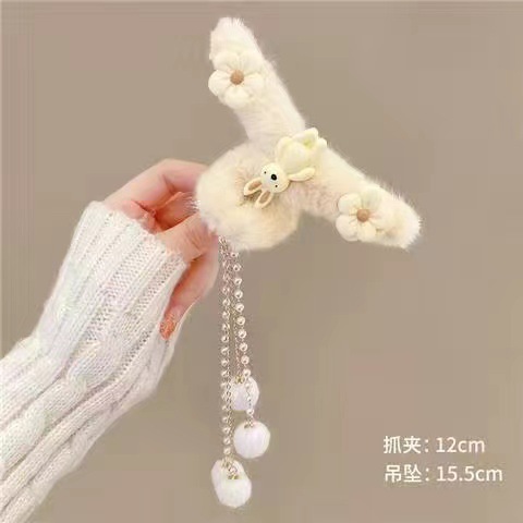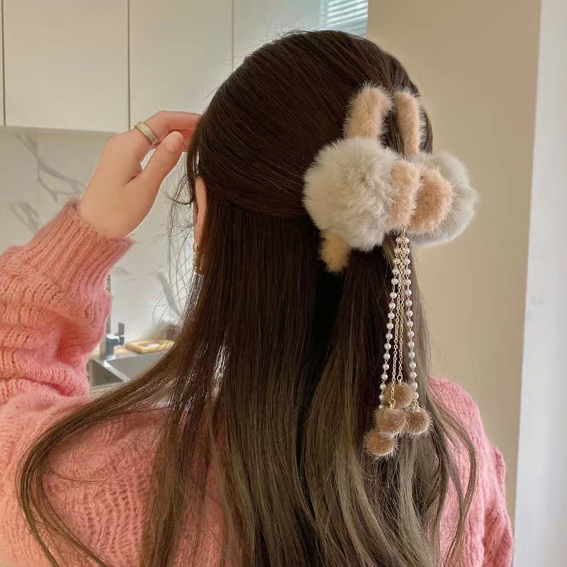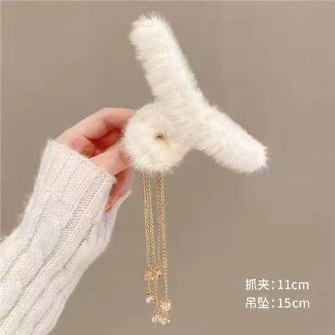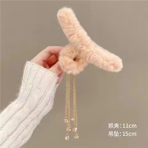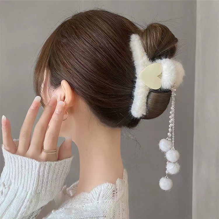 秋冬发夹流苏吊坠毛球发夹毛绒抓夹后脑勺发抓顶夹发饰头饰品女