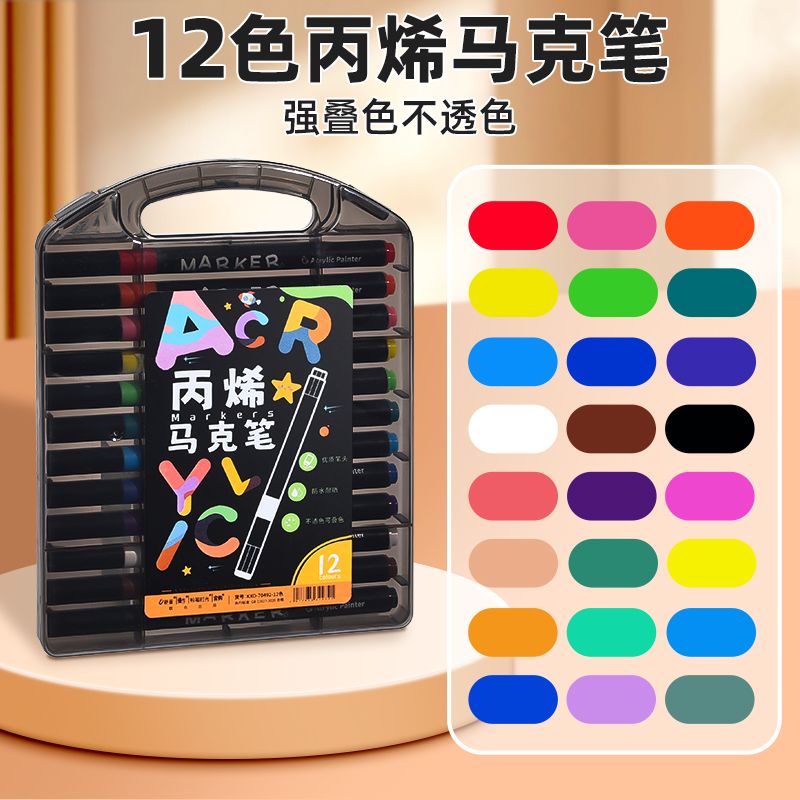 黑盒丙烯马克笔小学生专用画画笔不透色可叠色美术儿童涂鸦水彩笔