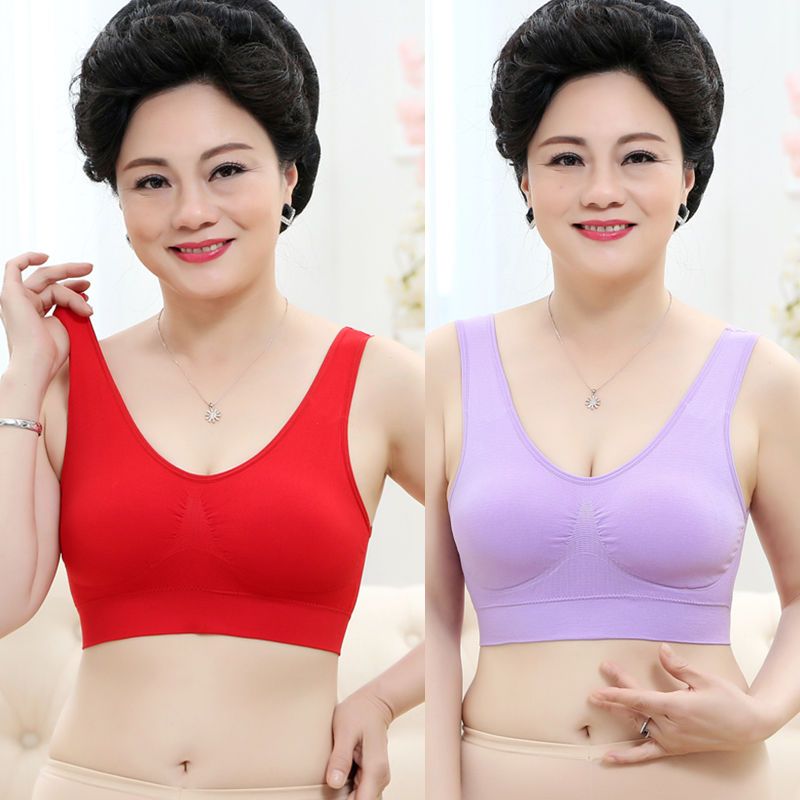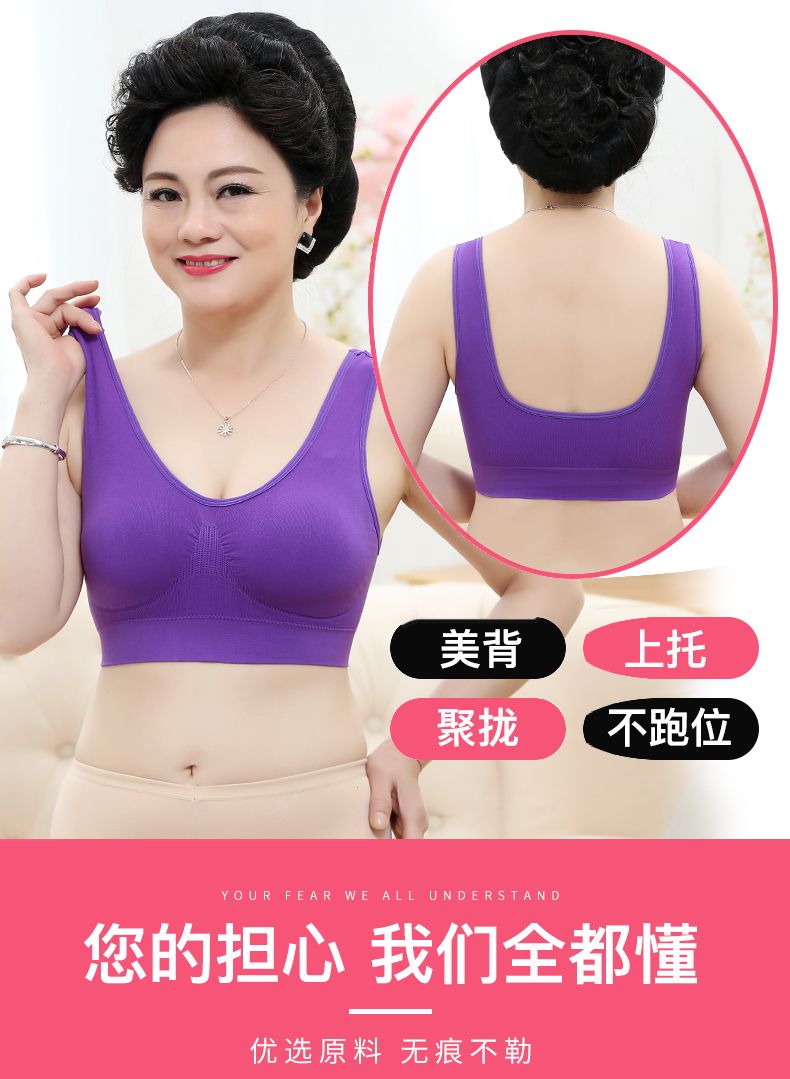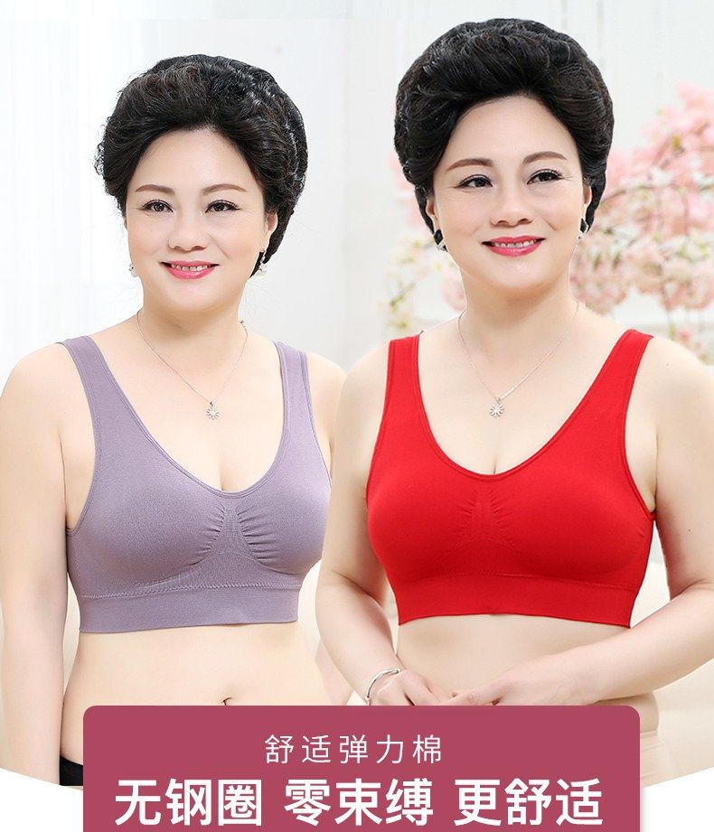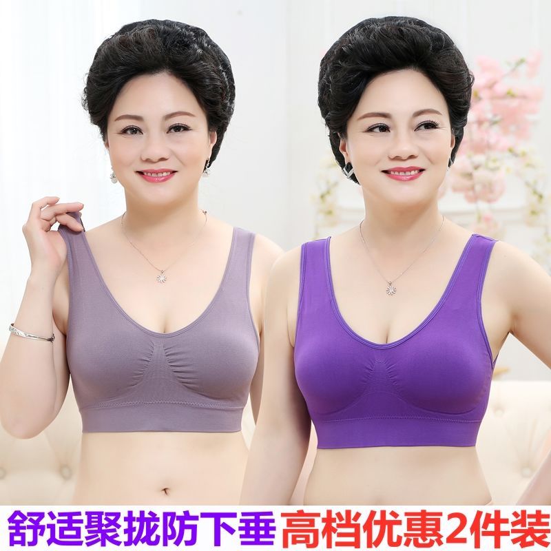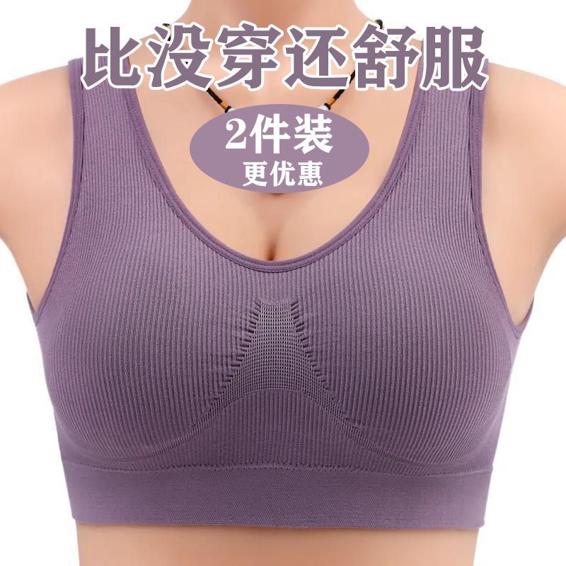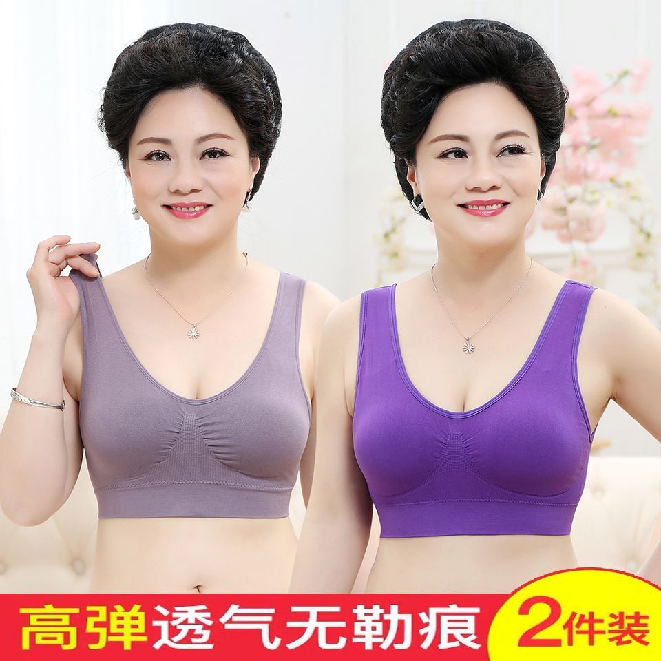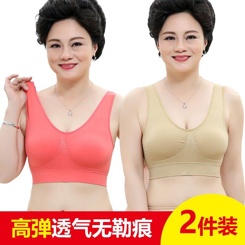 2件薄款高弹妈妈内衣女中老年人无钢圈文胸抹胸背心运动大码胸罩