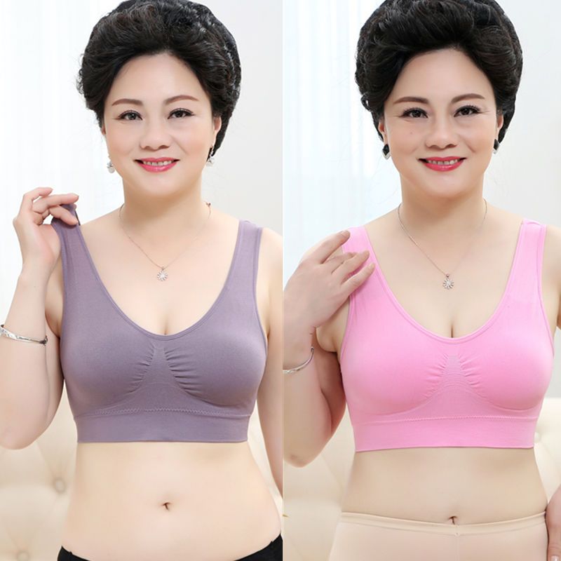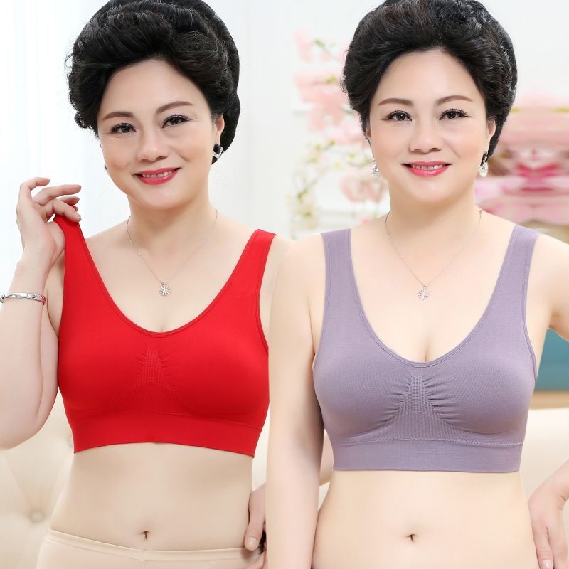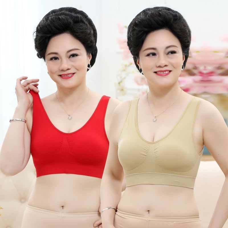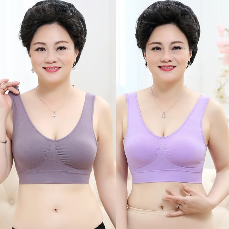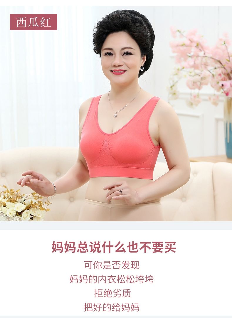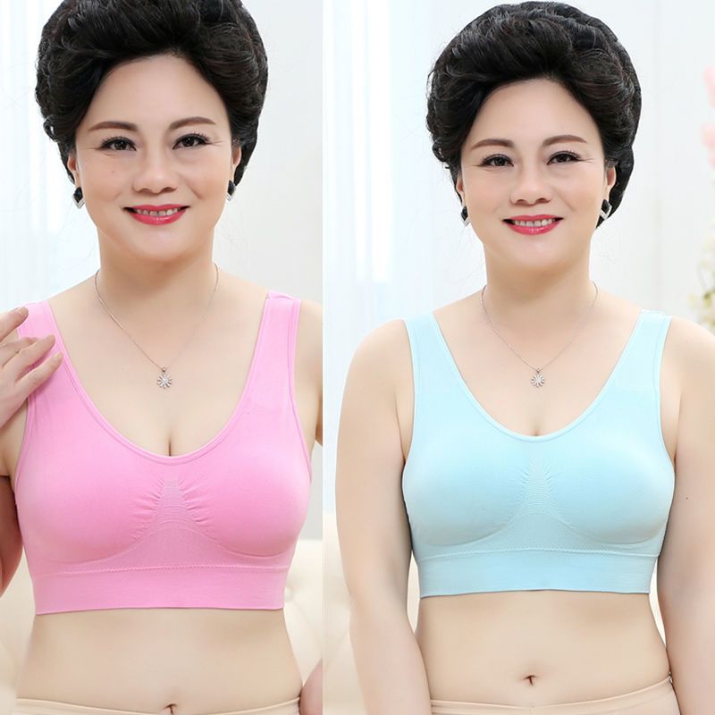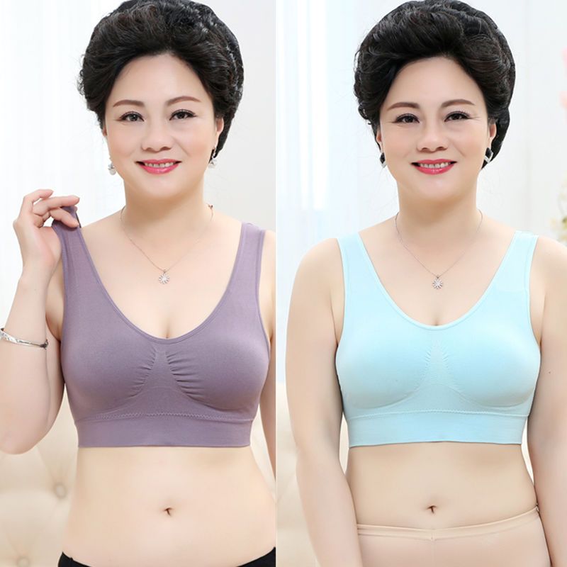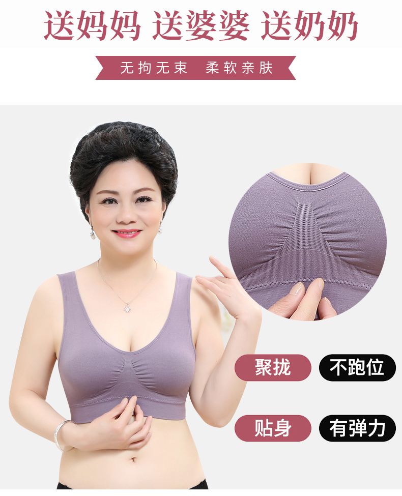 2件薄款高弹妈妈内衣女中老年人无钢圈文胸抹胸背心运动大码胸罩