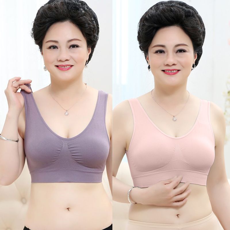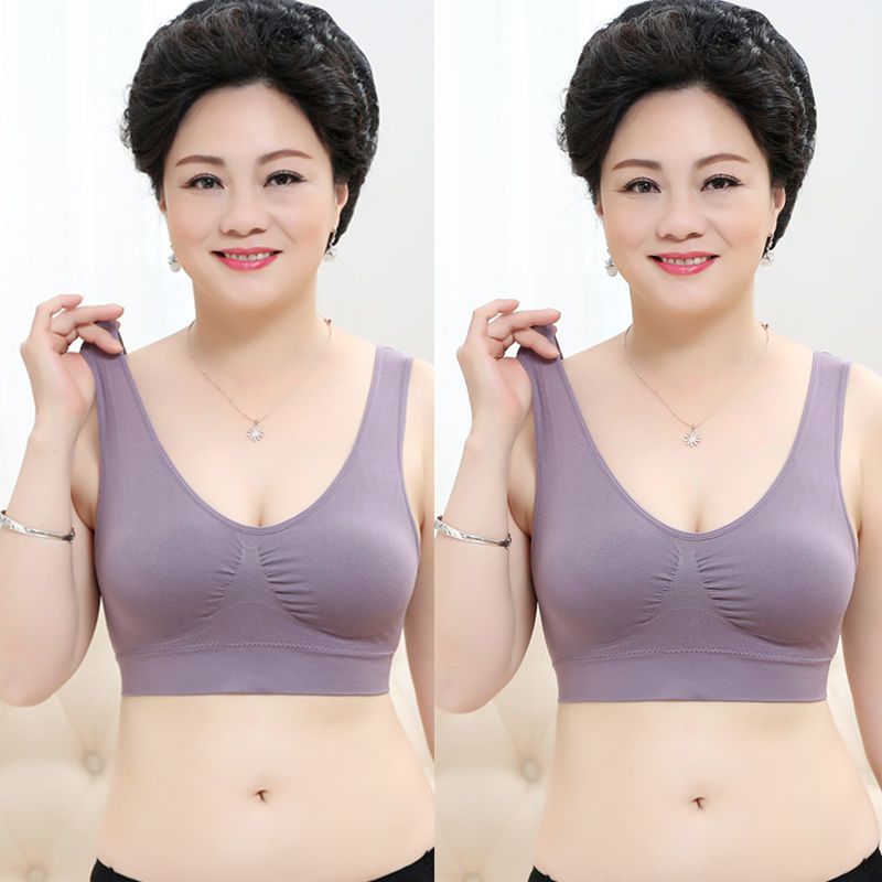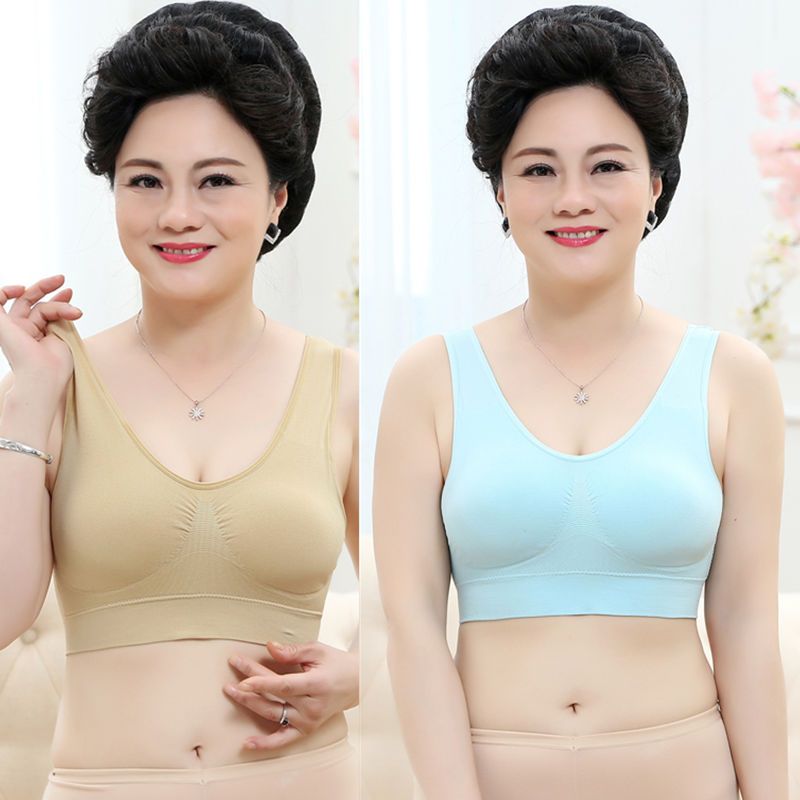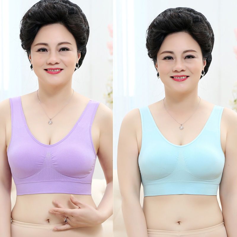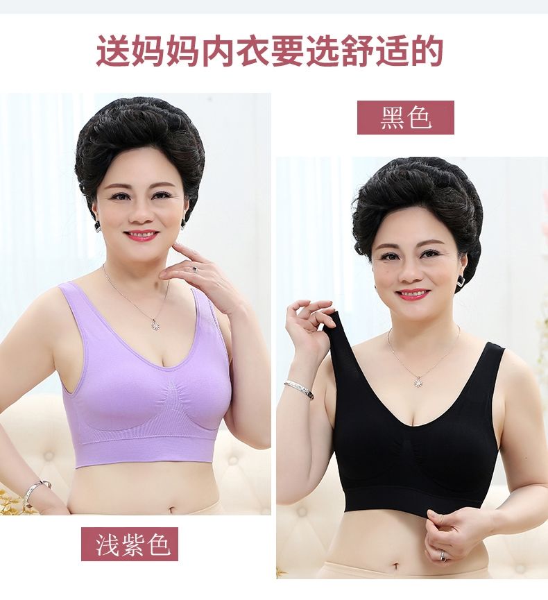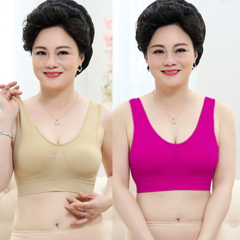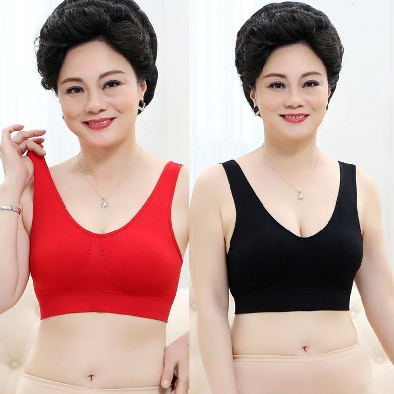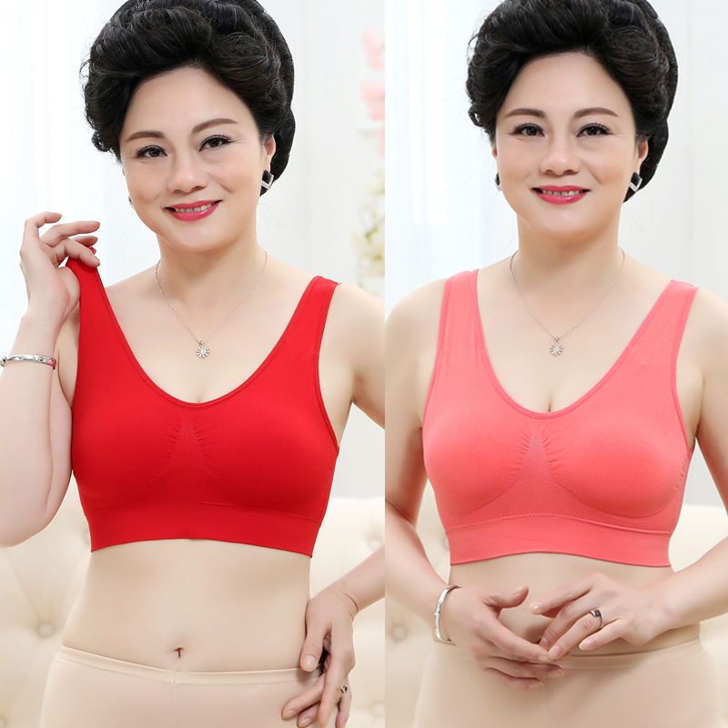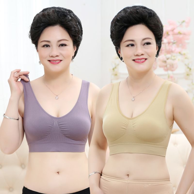 2件薄款高弹妈妈内衣女中老年人无钢圈文胸抹胸背心运动大码胸罩