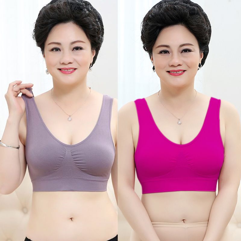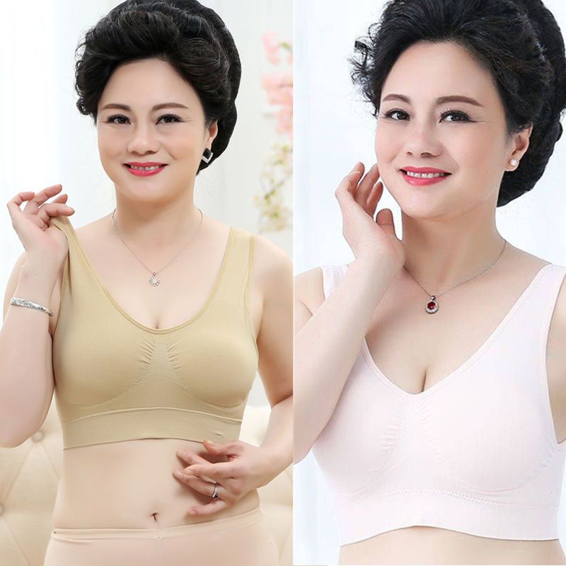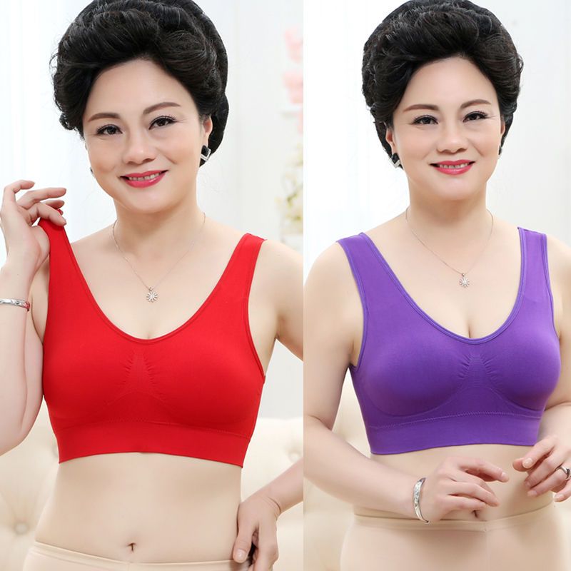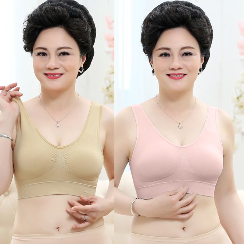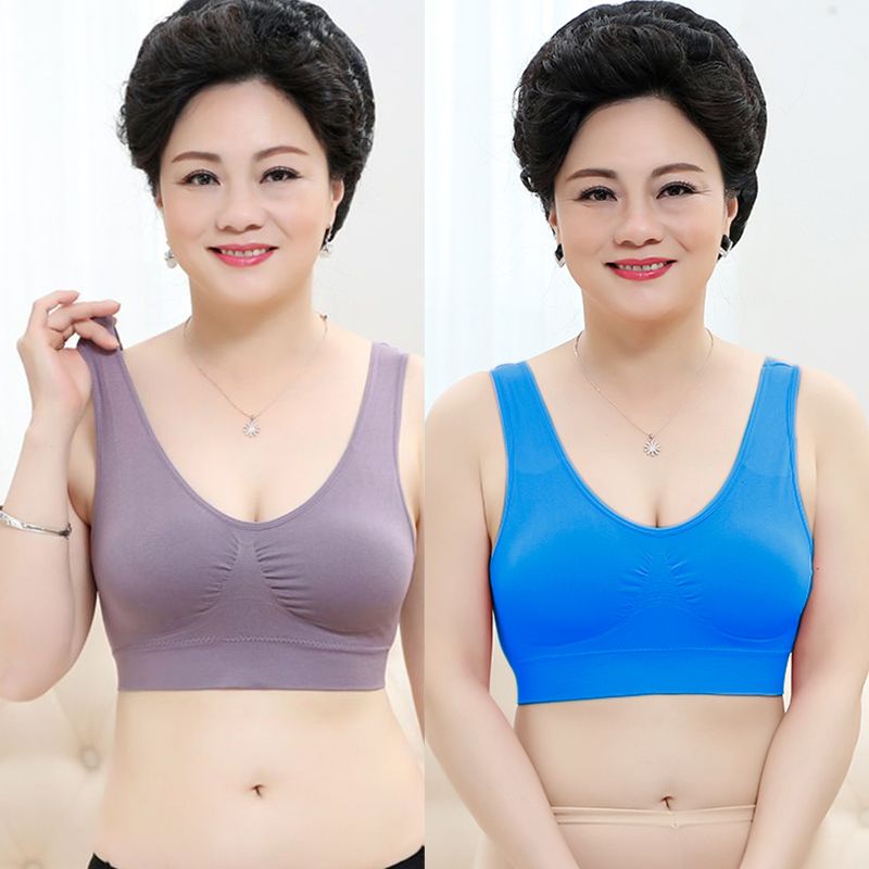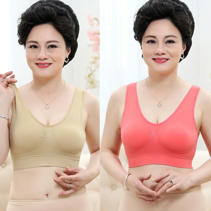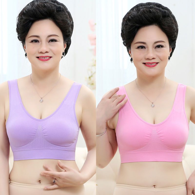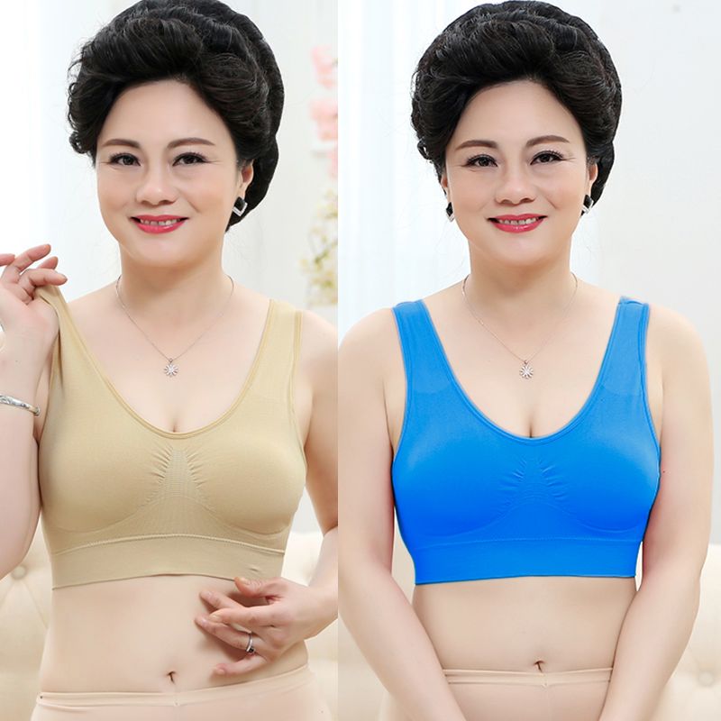 2件薄款高弹妈妈内衣女中老年人无钢圈文胸抹胸背心运动大码胸罩