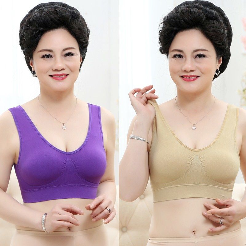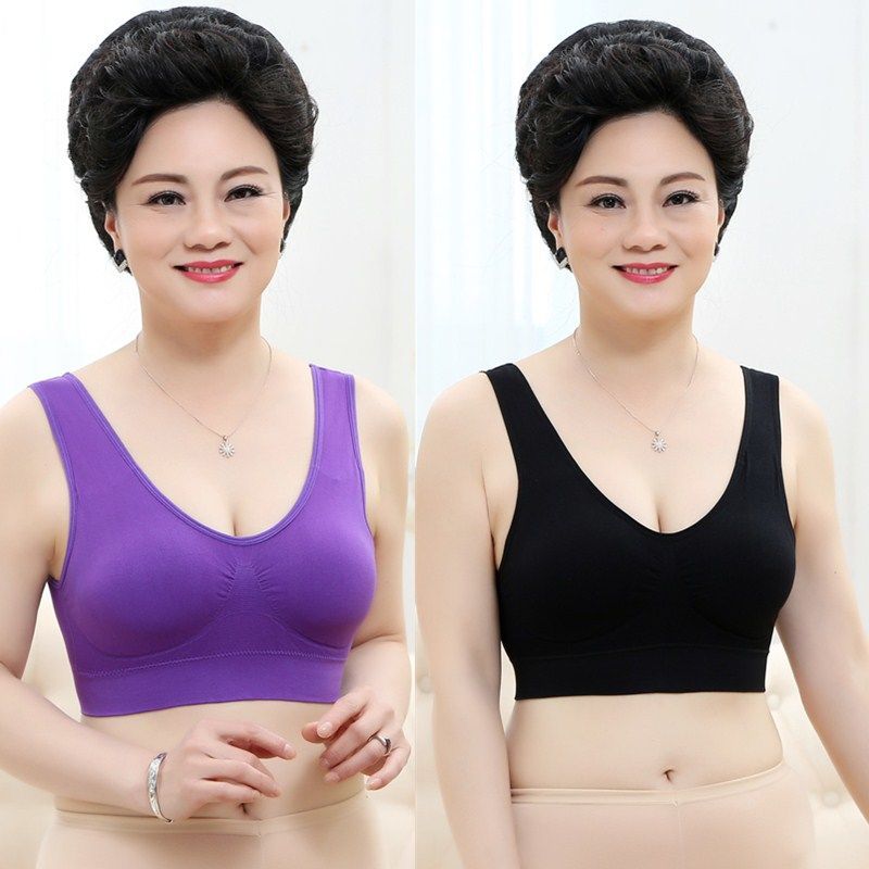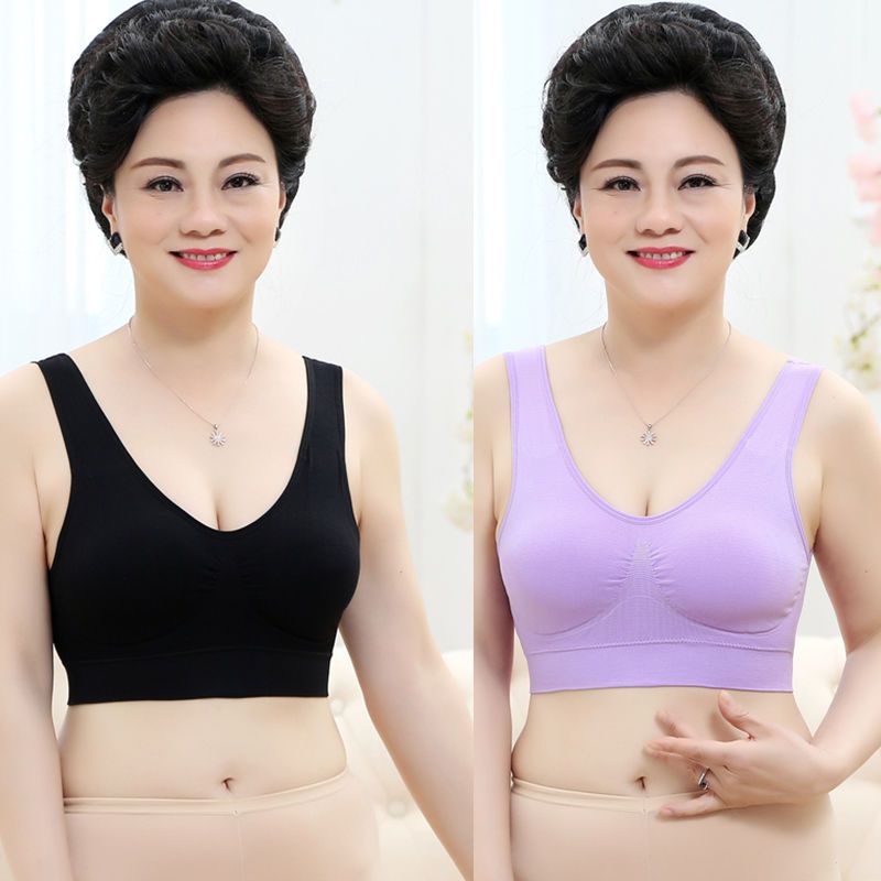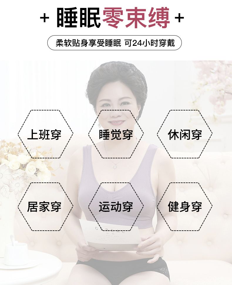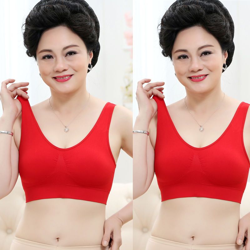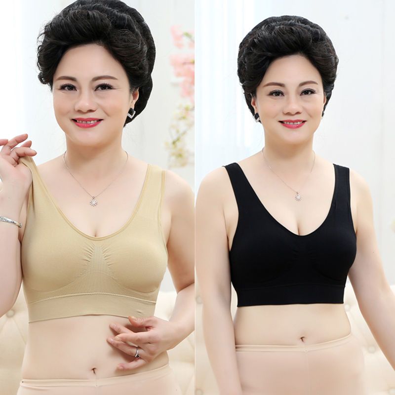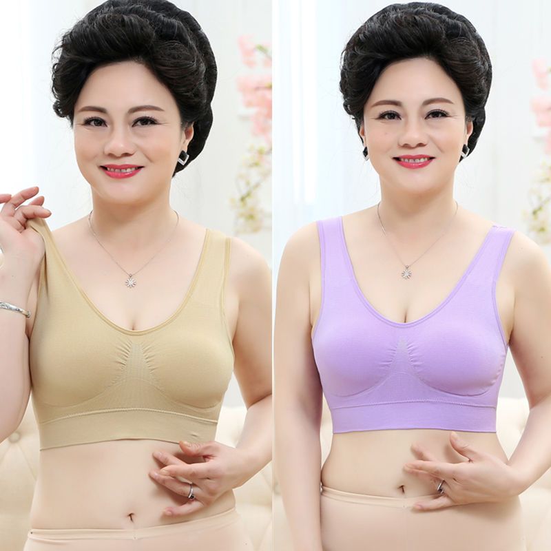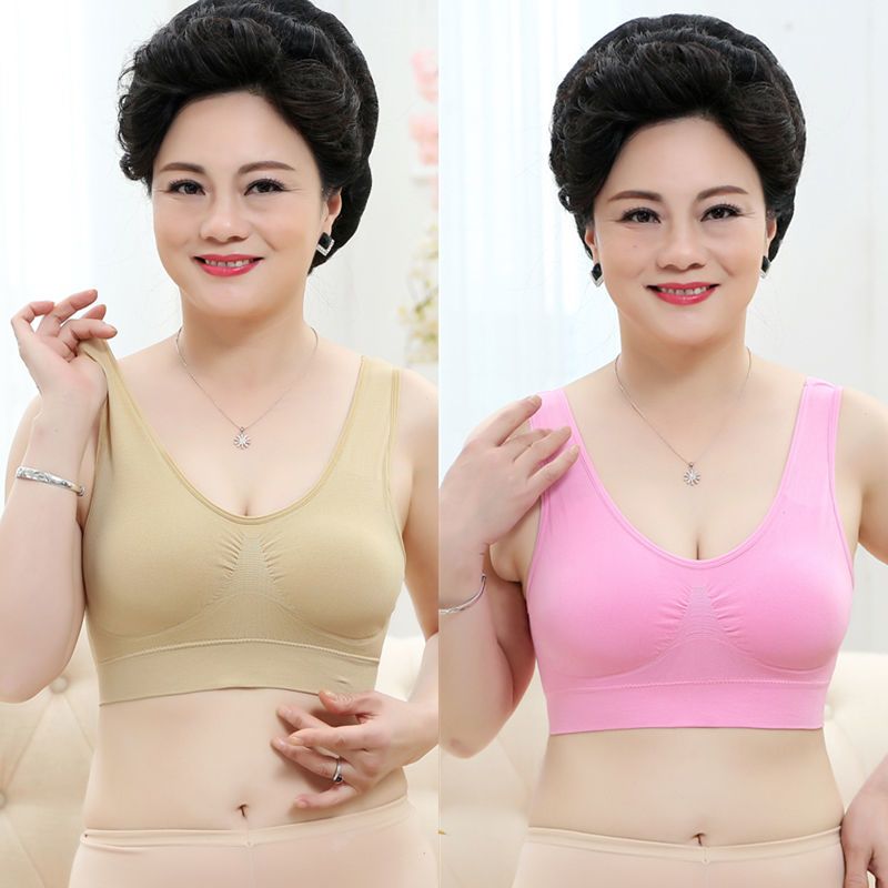 2件薄款高弹妈妈内衣女中老年人无钢圈文胸抹胸背心运动大码胸罩