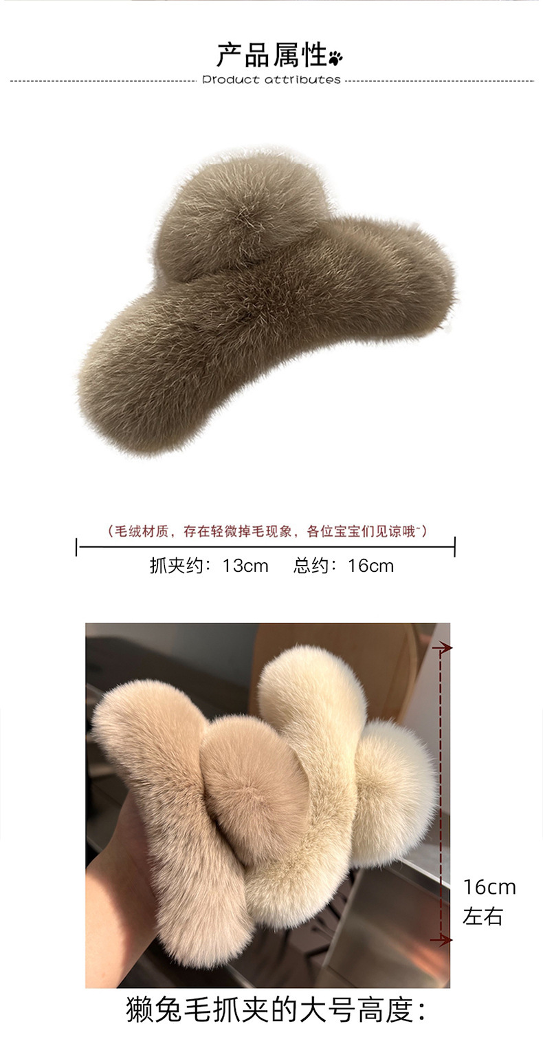 秋冬獭兔毛大号抓夹批发气质毛毛发抓毛绒发夹女后脑勺盘发鲨鱼夹