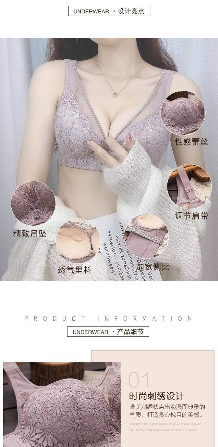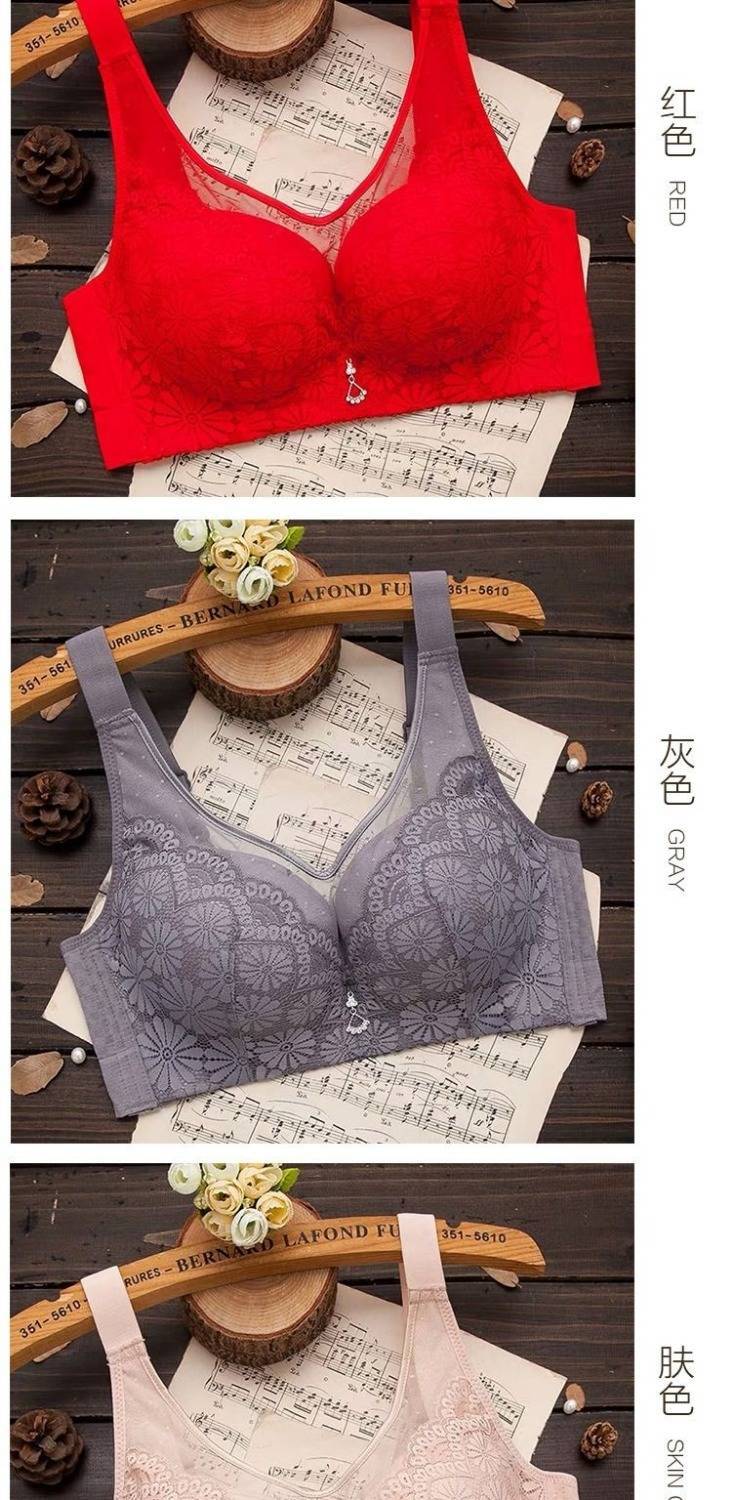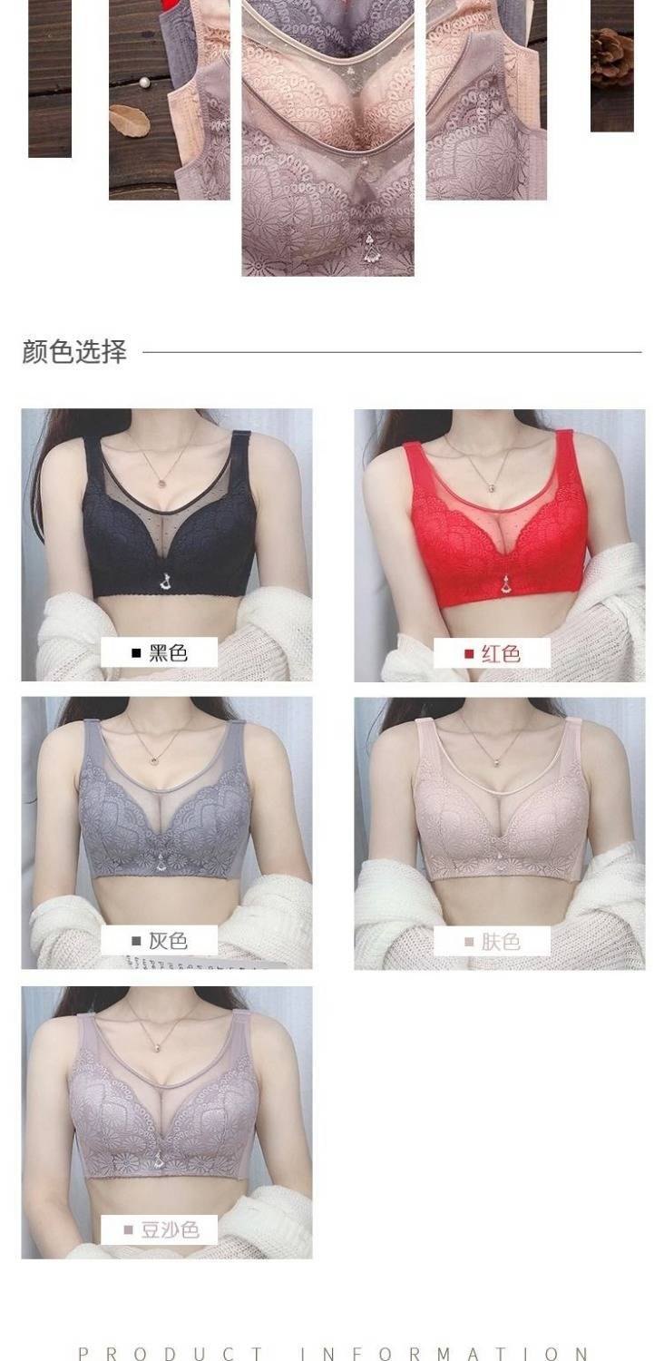 大胸显小薄款抹胸大码聚拢背心式无钢圈胸罩胖MM蕾丝防走光文胸女