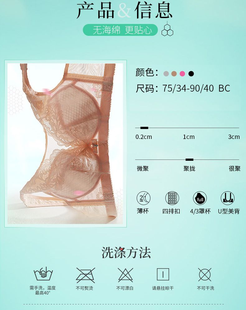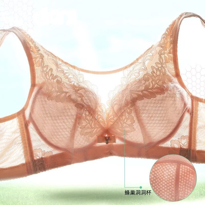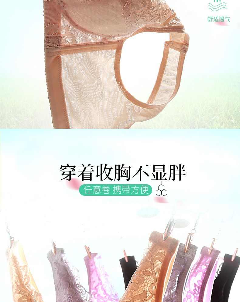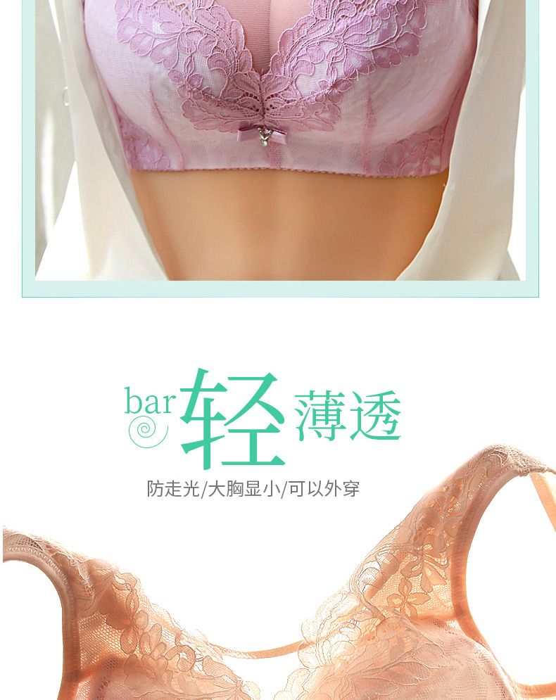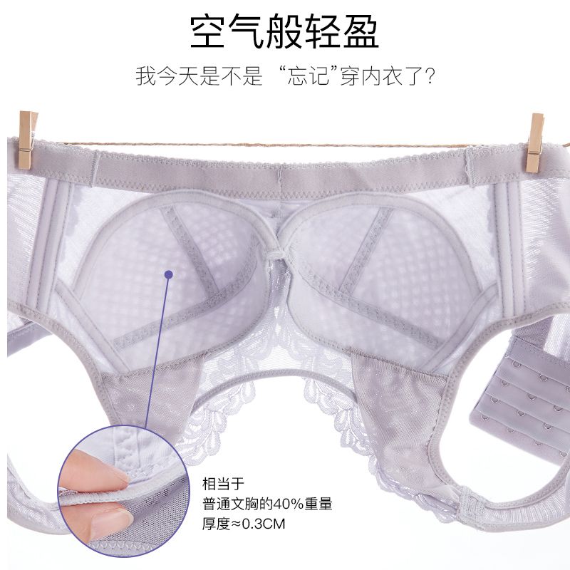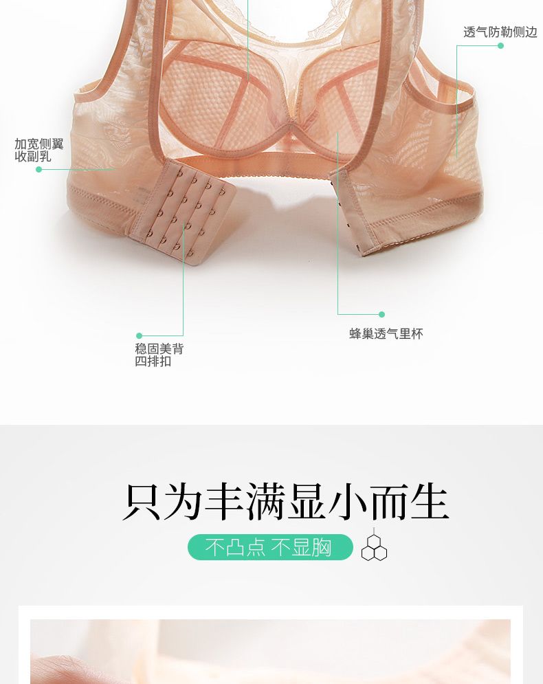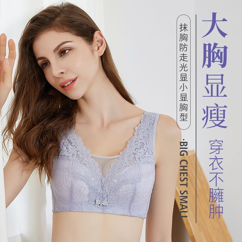 超薄大码大胸显小内衣女缩胸文胸薄款蕾丝大胸显小胖mm防下垂聚拢
