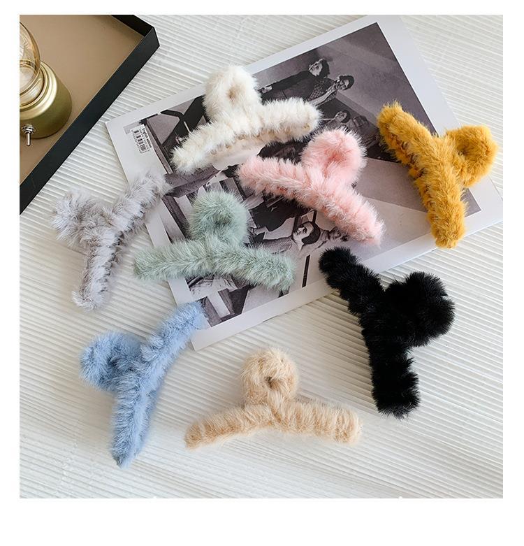 秋冬新款大号毛绒发夹简约气质女生后脑勺抓夹毛毛发卡发抓鲨鱼夹