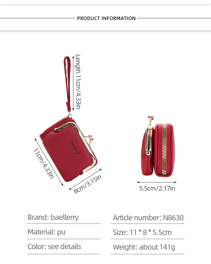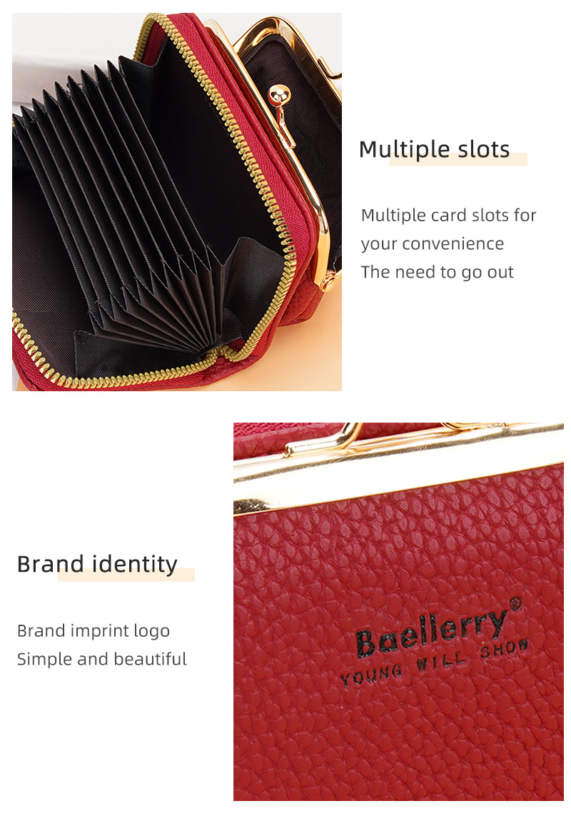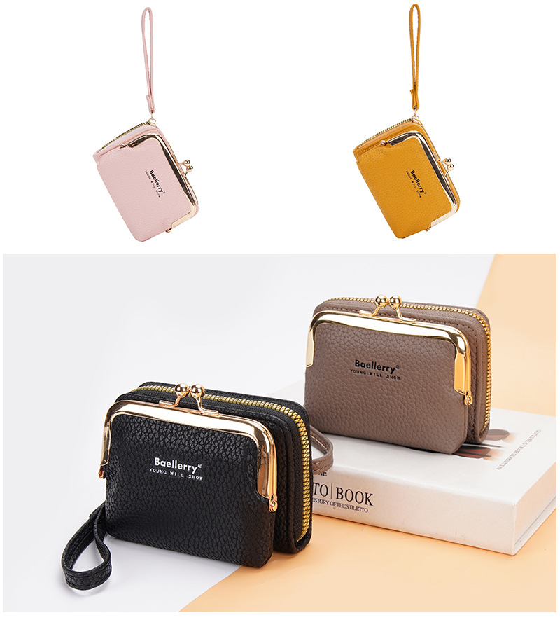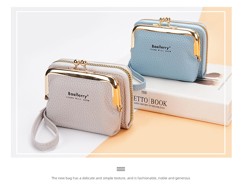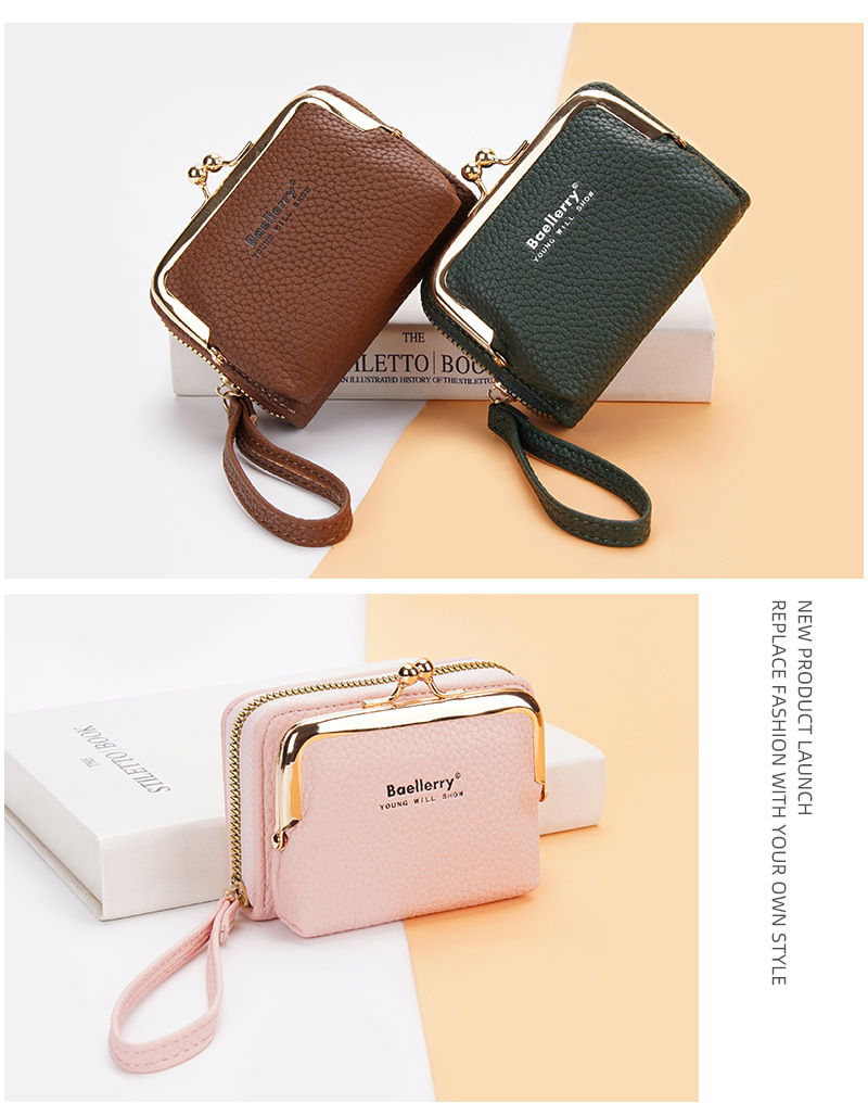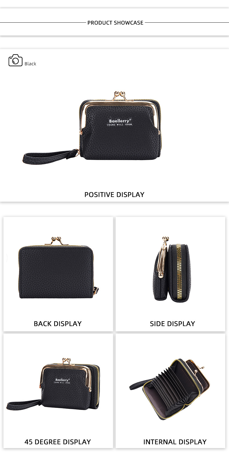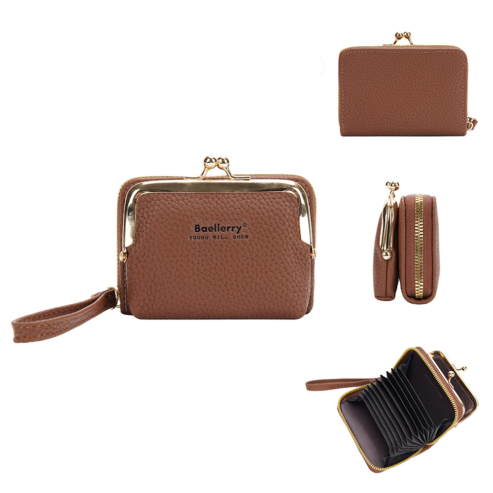 Baellerry新款女士零钱包韩版荔枝纹拉链风琴卡包迷你较口包批发