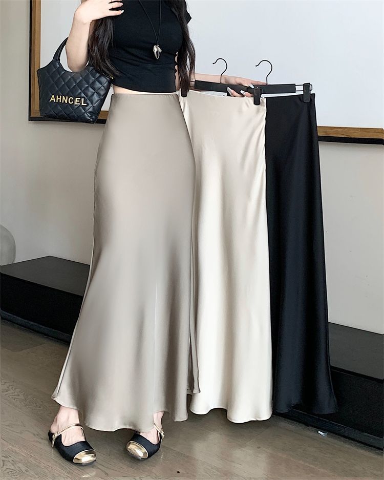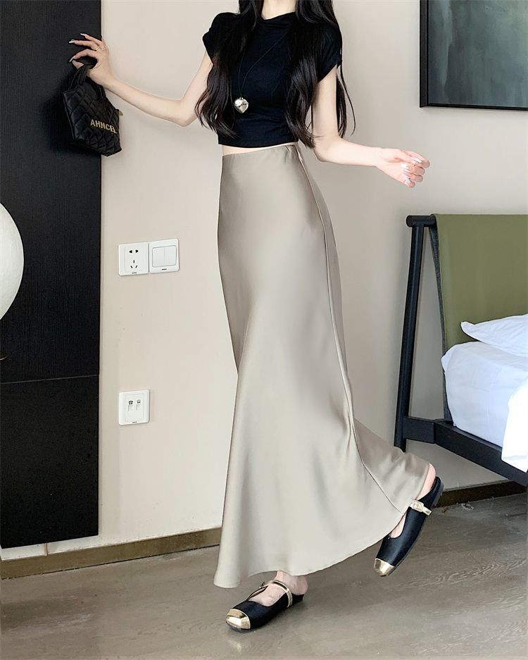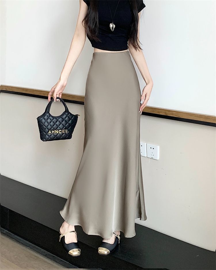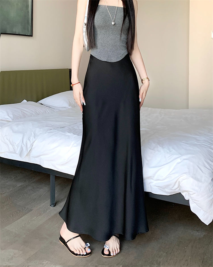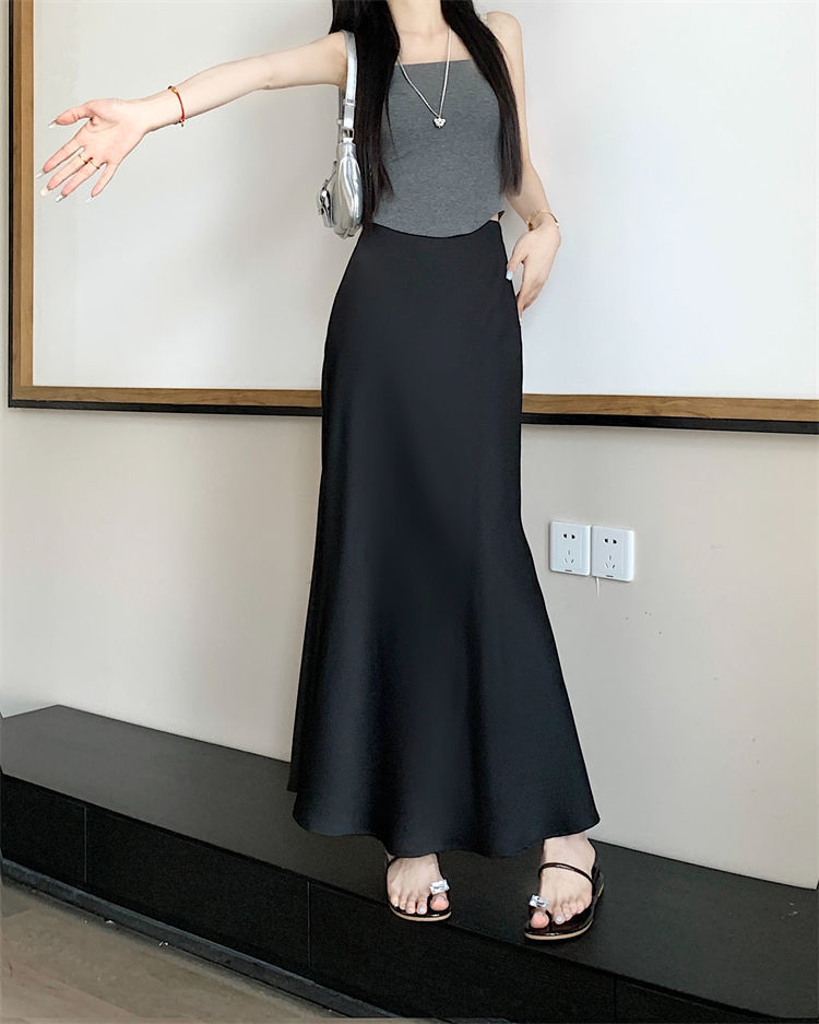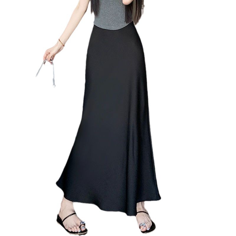 鱼尾半身裙女2024年夏季新款法式复古缎面垂感高腰显瘦包臀长裙子