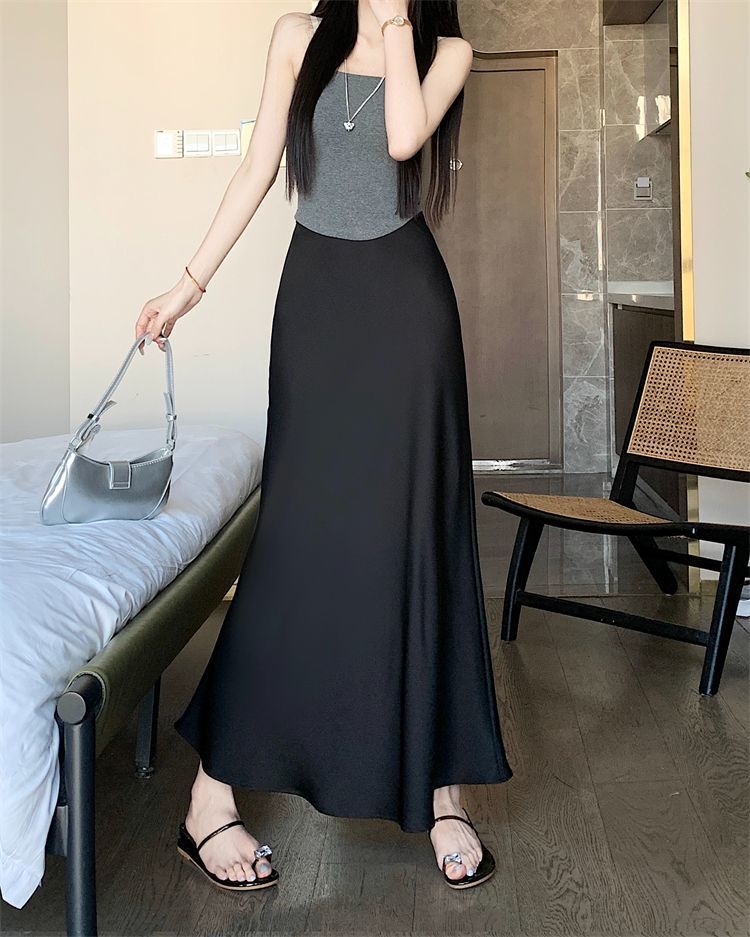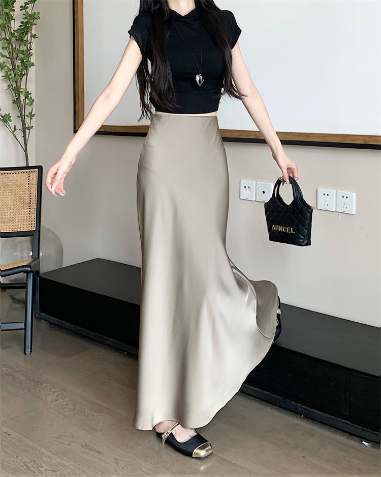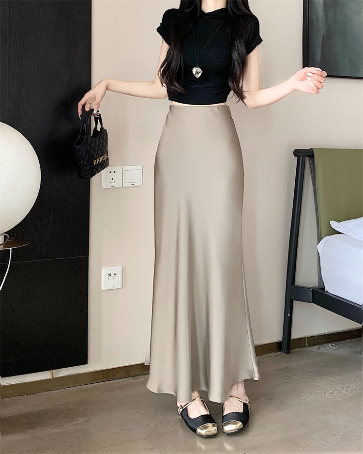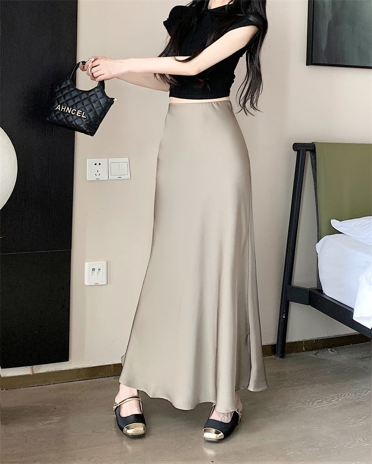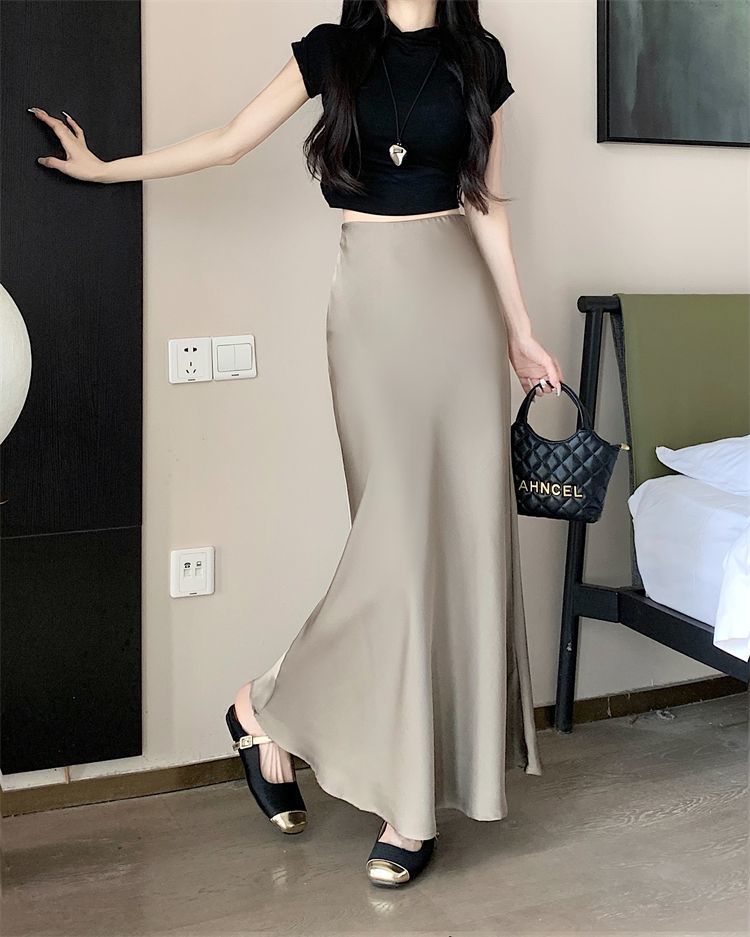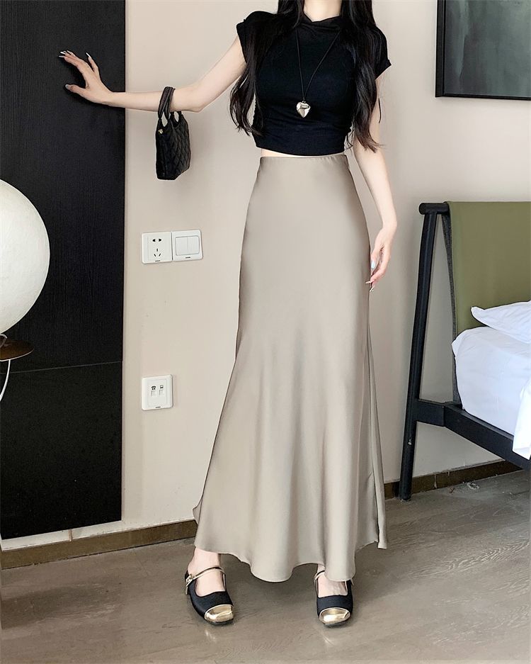 鱼尾半身裙女2024年夏季新款法式复古缎面垂感高腰显瘦包臀长裙子