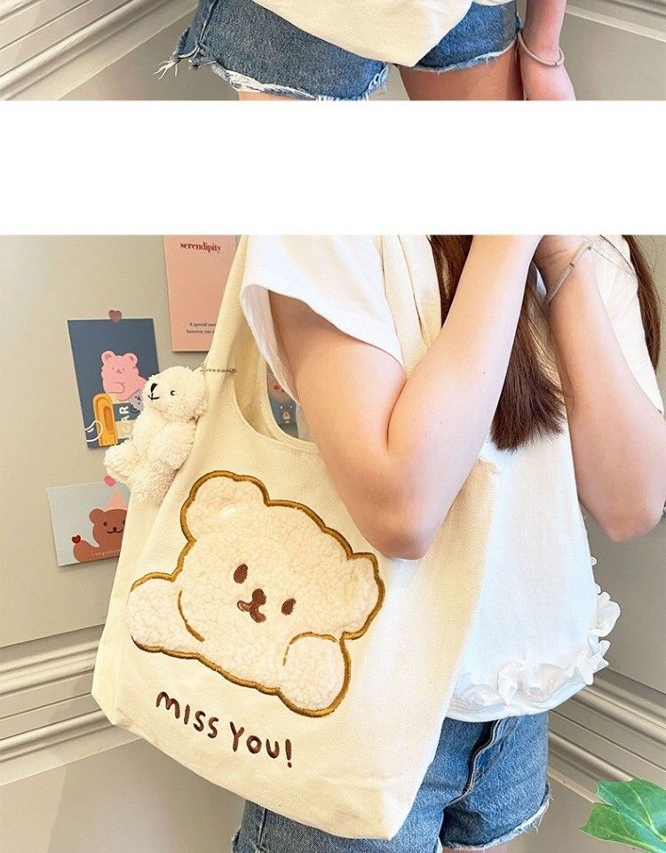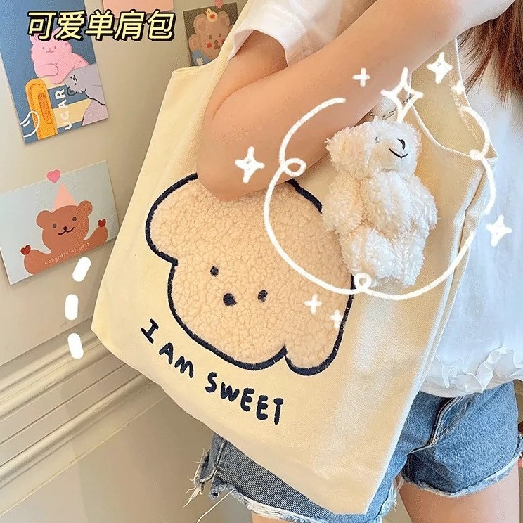 包包女2023新款斜挎学生手提包帆布袋女ins森系百搭包上课袋子