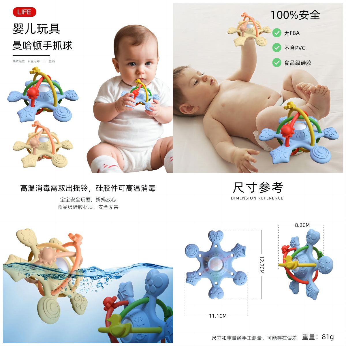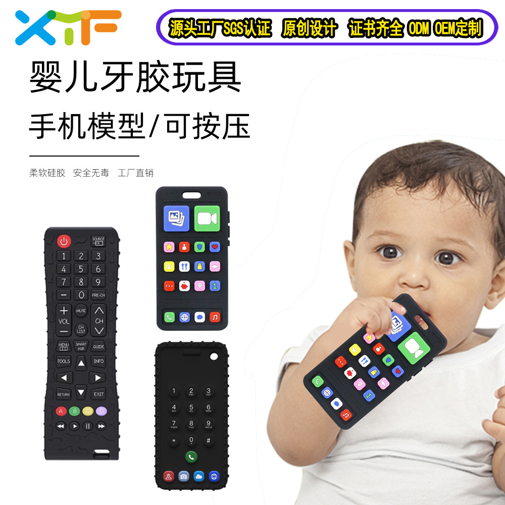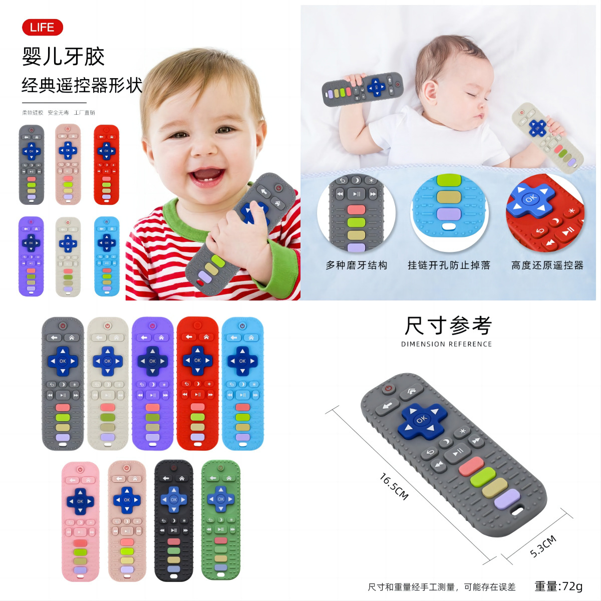 亚马逊婴儿磨牙棒玩具食品级咬胶宝宝安抚防吃手遥控器硅胶牙胶