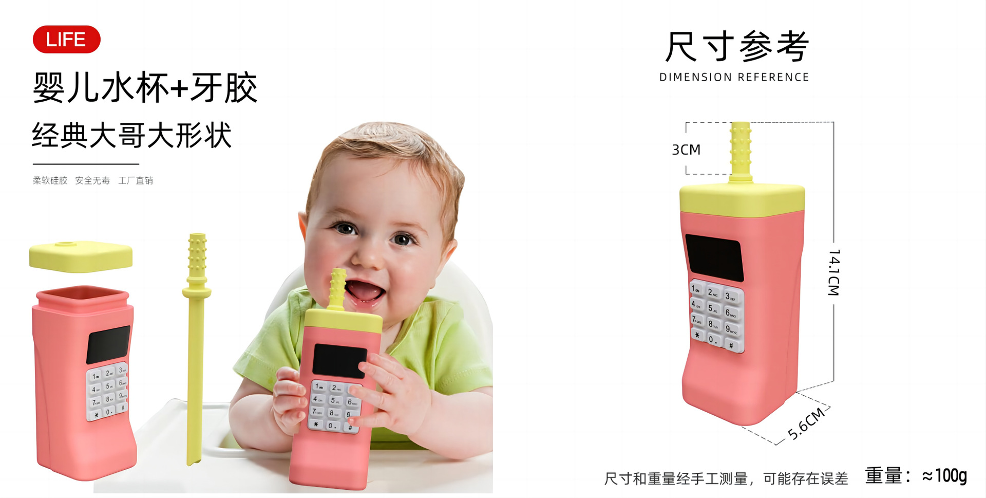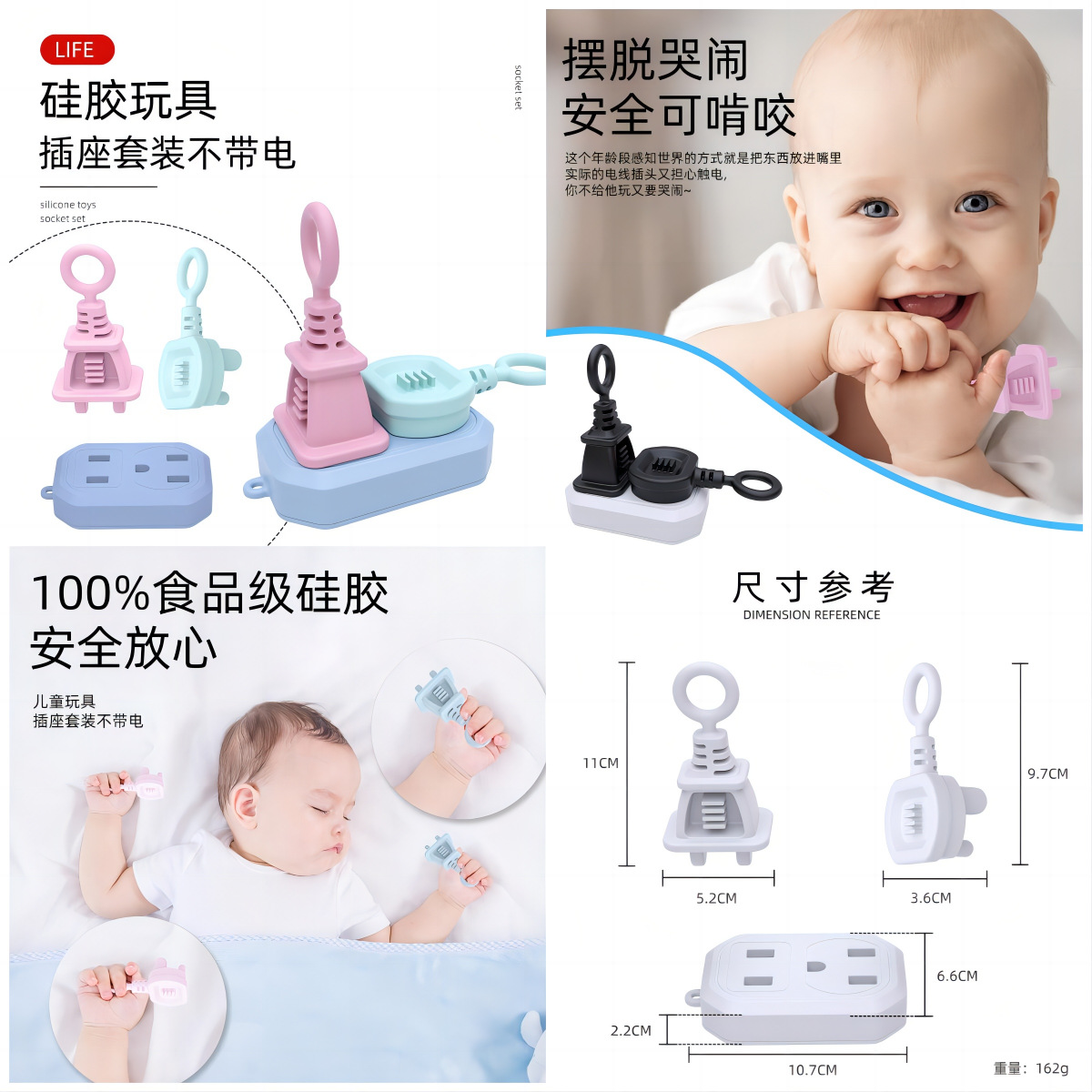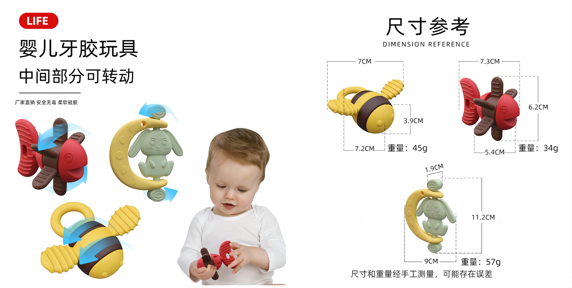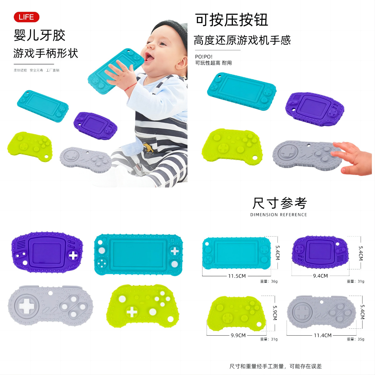 跨境婴儿遥控器硅胶牙胶链子食品级6个月按压玩具咬咬乐母婴用品