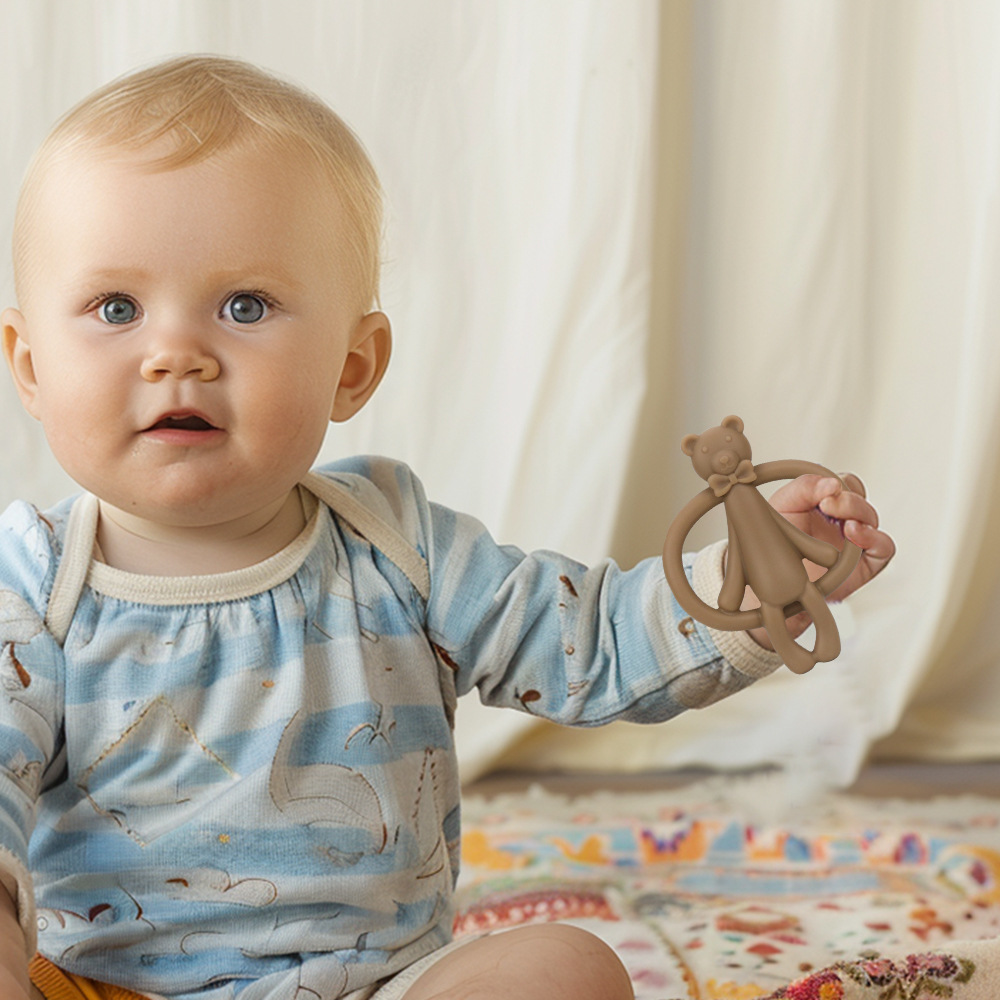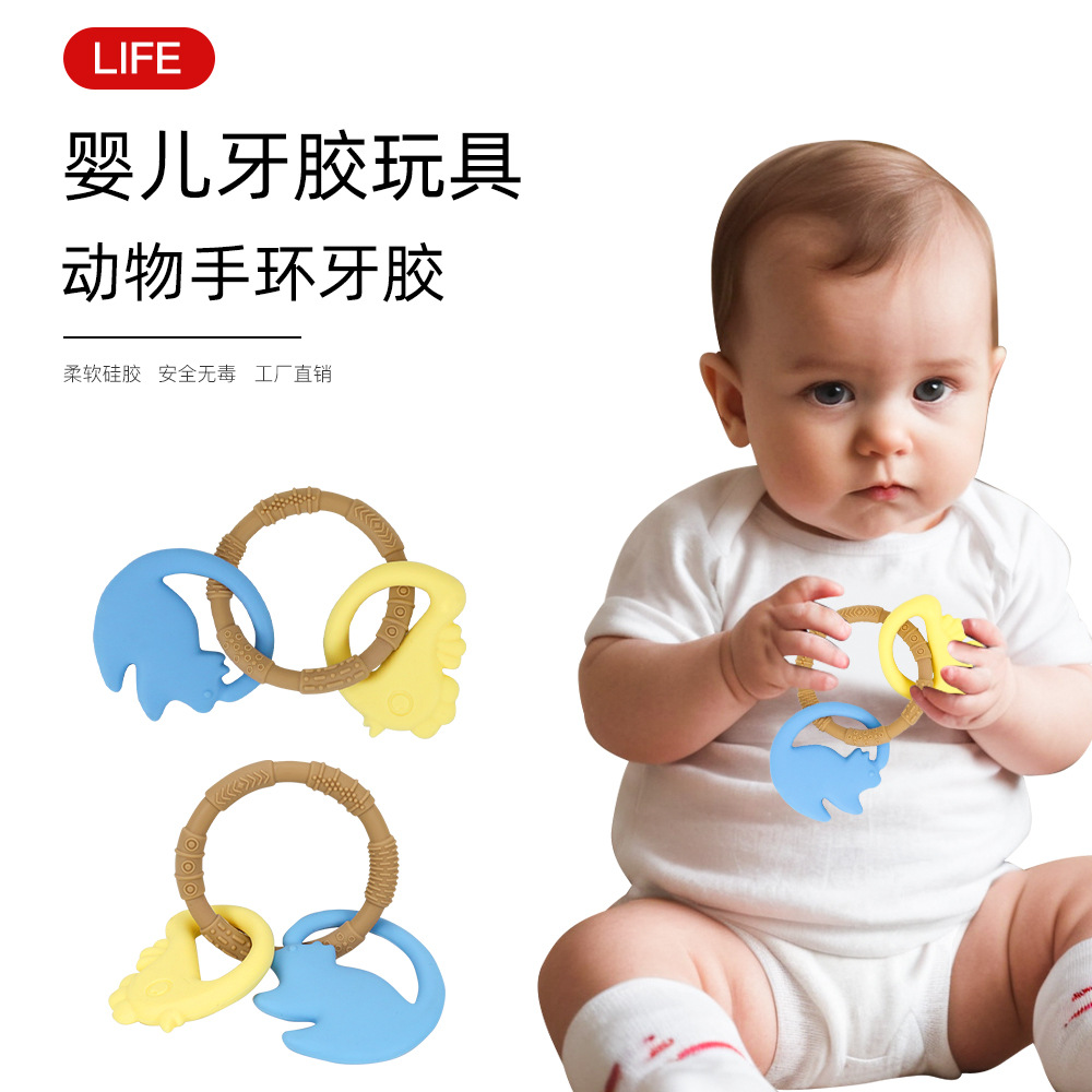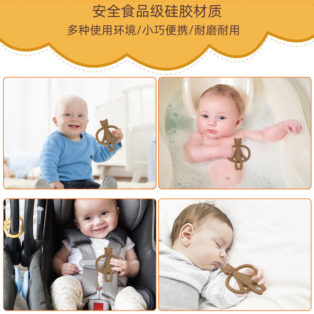 跨境新款卡通小熊硅胶牙胶宝宝出牙圆环咬咬乐婴儿牙咬胶玩具