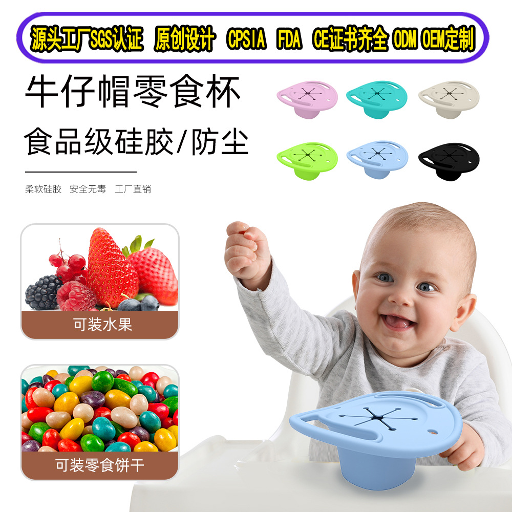 新品牛仔帽零食杯居家外出便携儿童米糊辅食碗宝宝带盖卡通零食碗