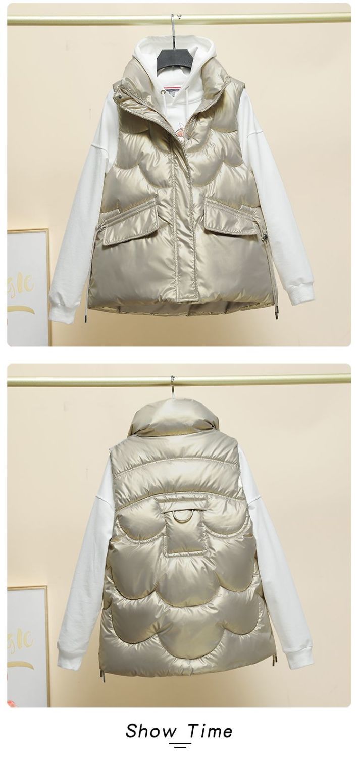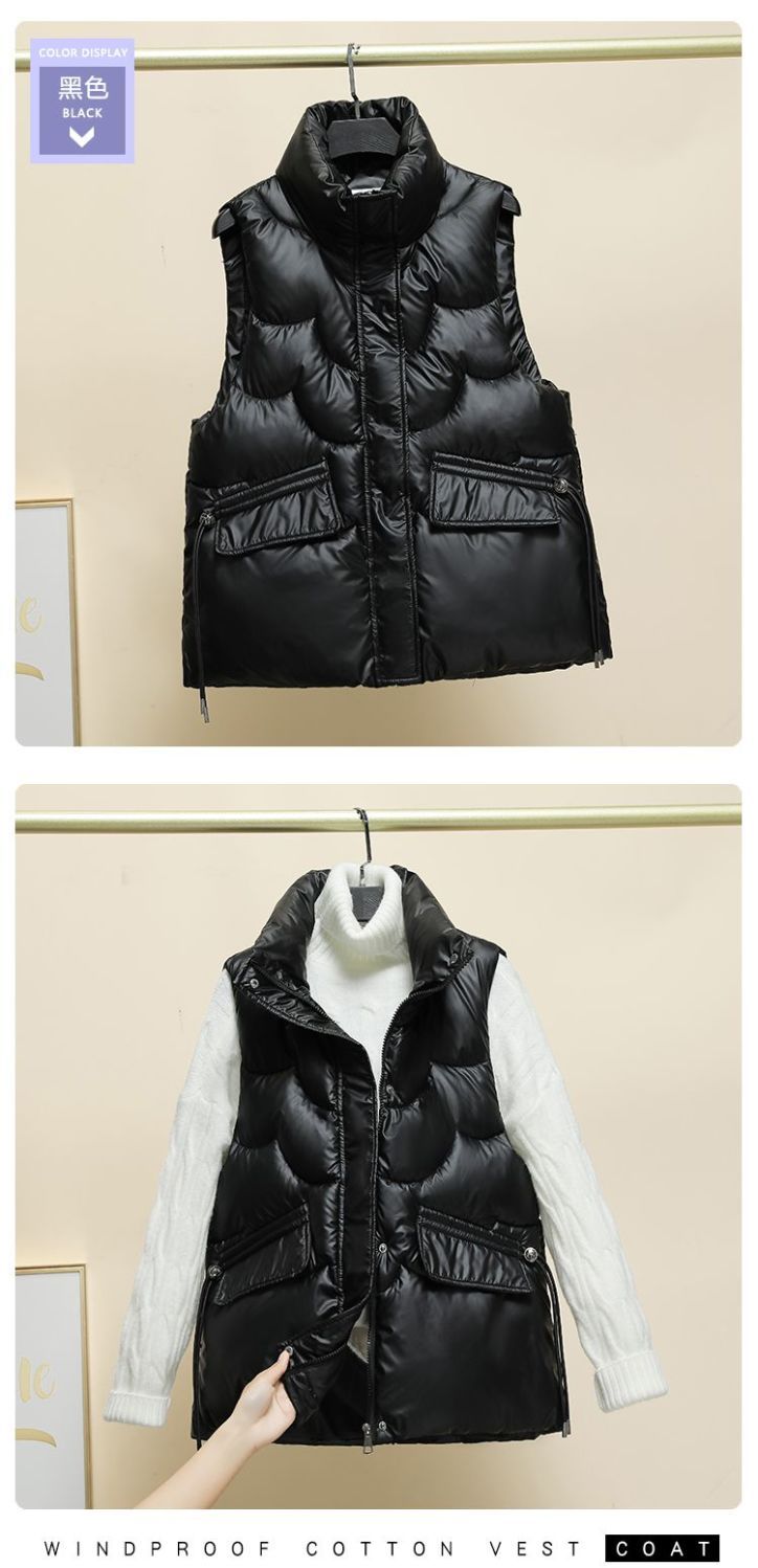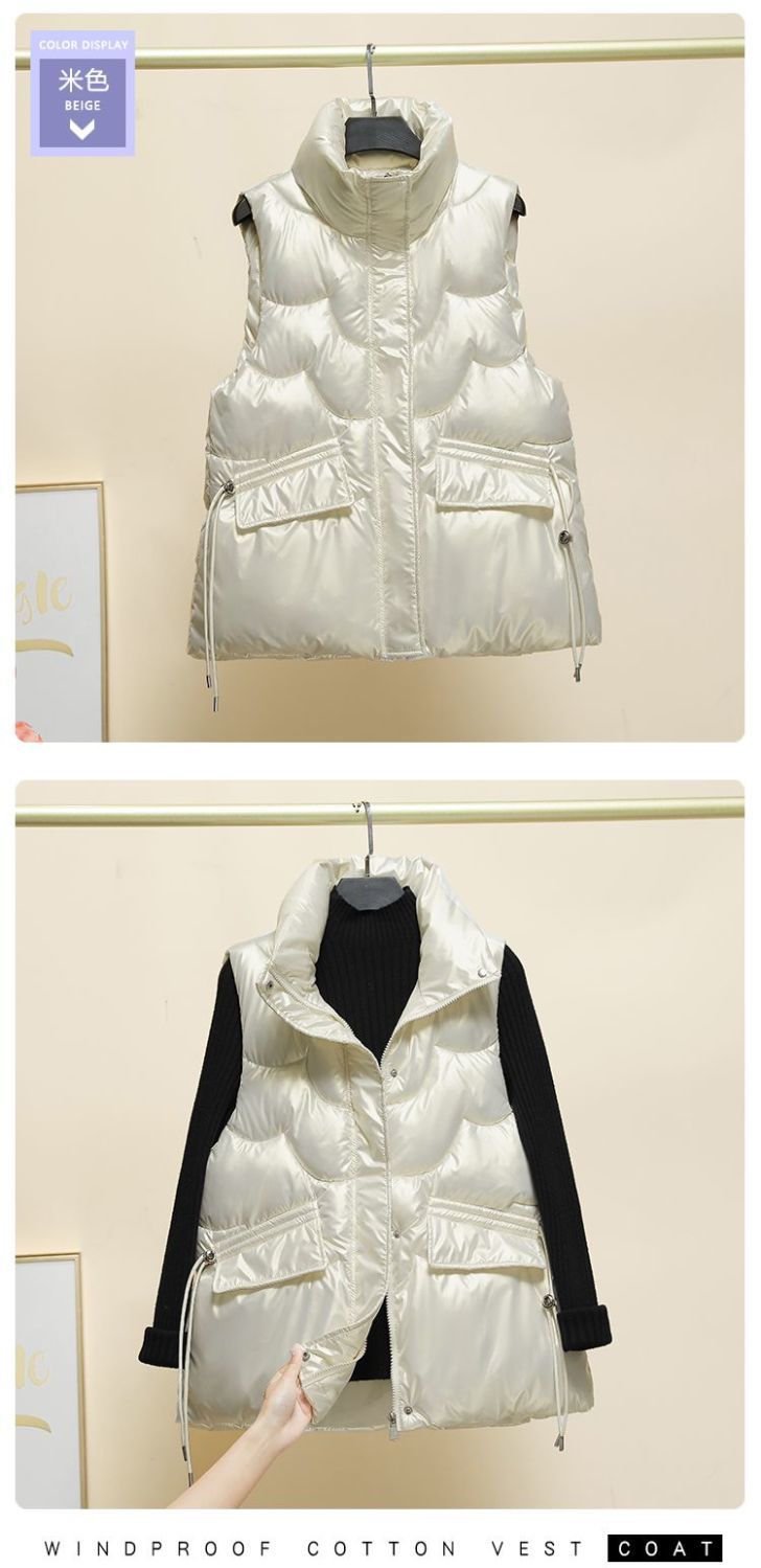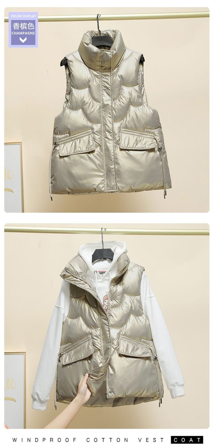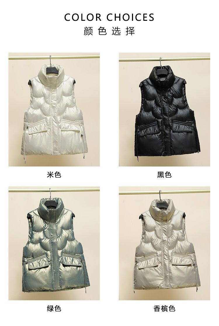 免洗款马甲2024年新款羽绒棉服女装宽松大码纯色短款立领通勤外套