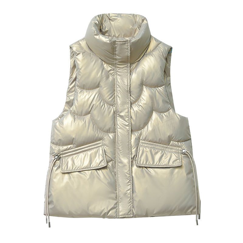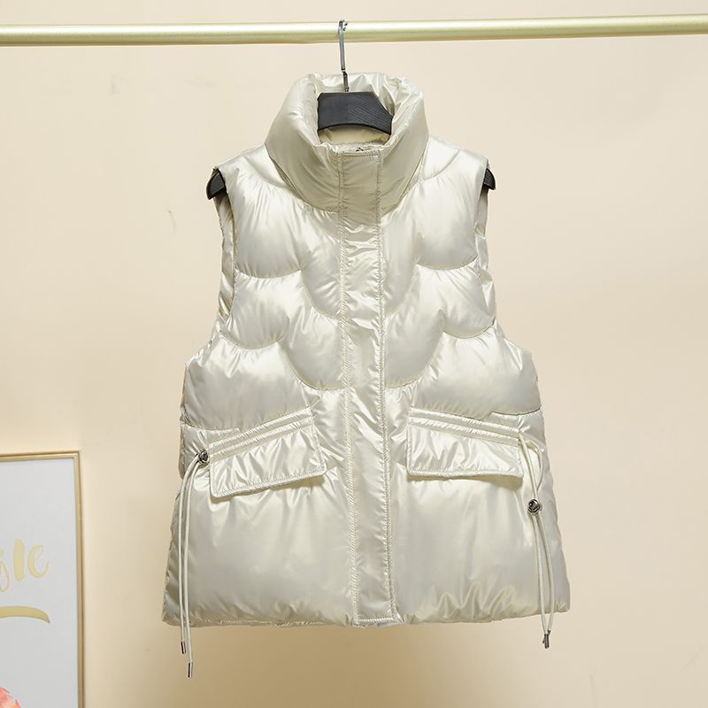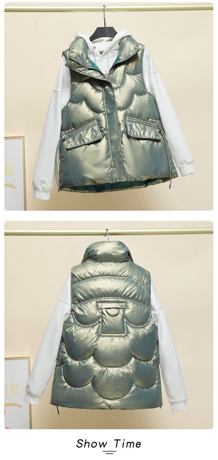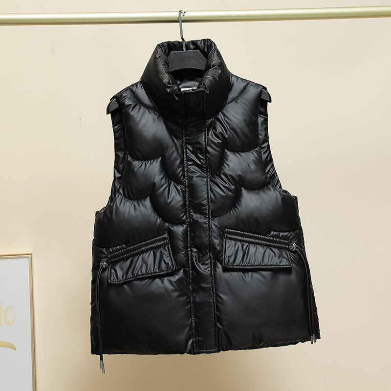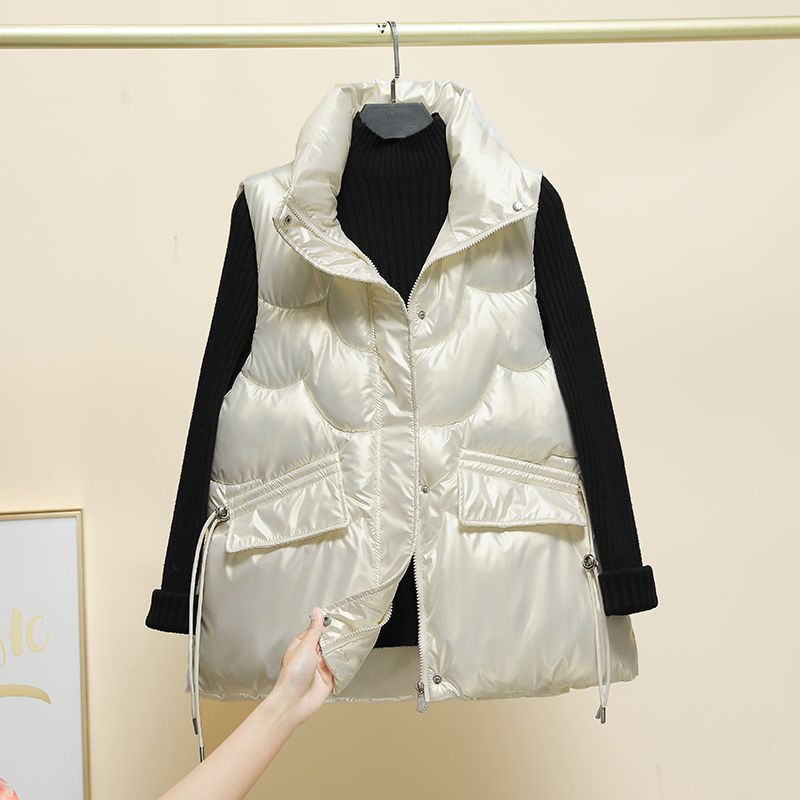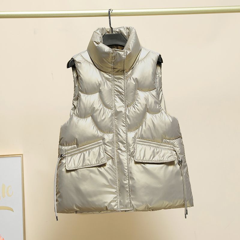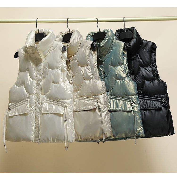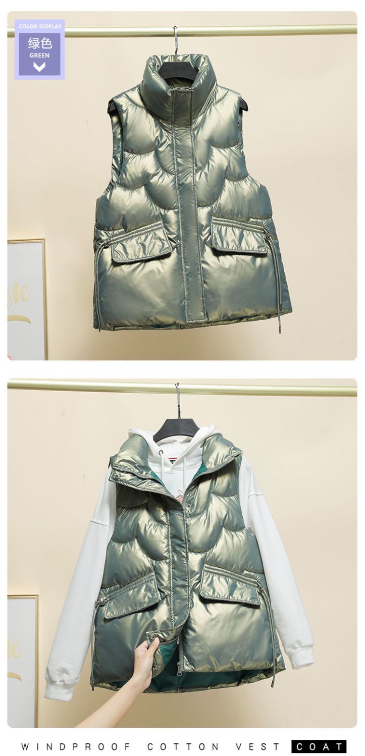 免洗款马甲2024年新款羽绒棉服女装宽松大码纯色短款立领通勤外套