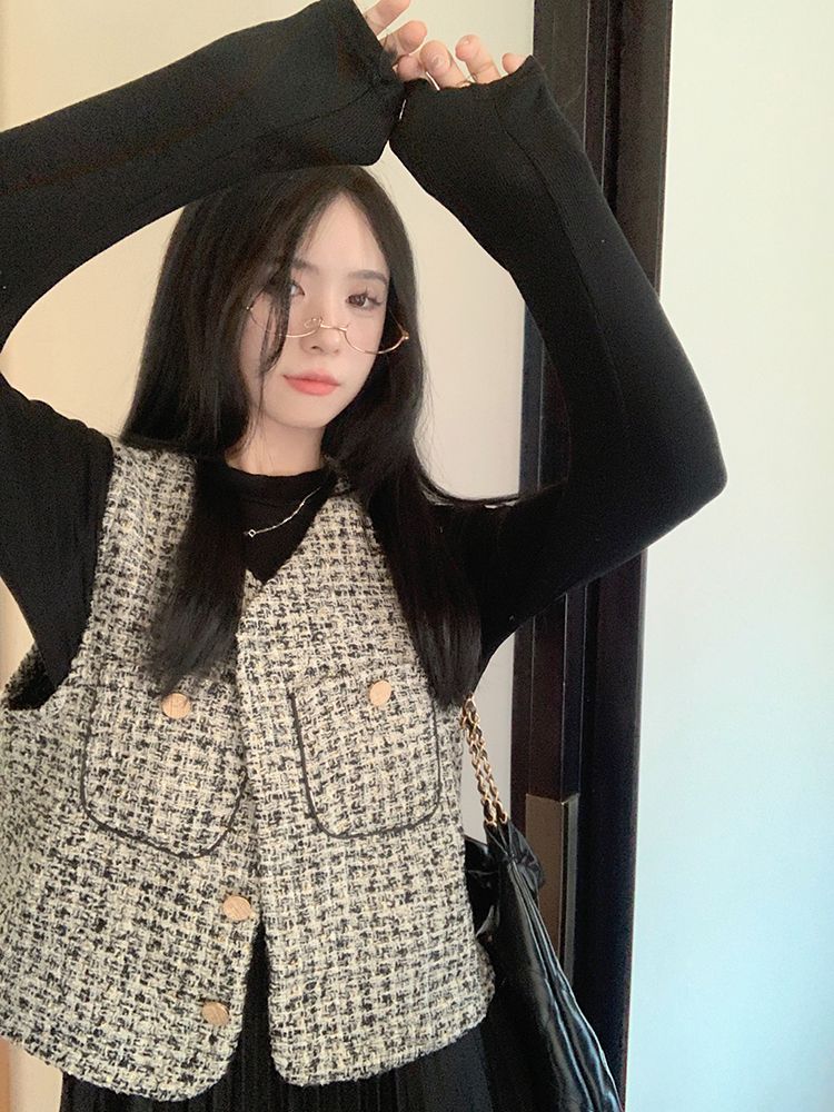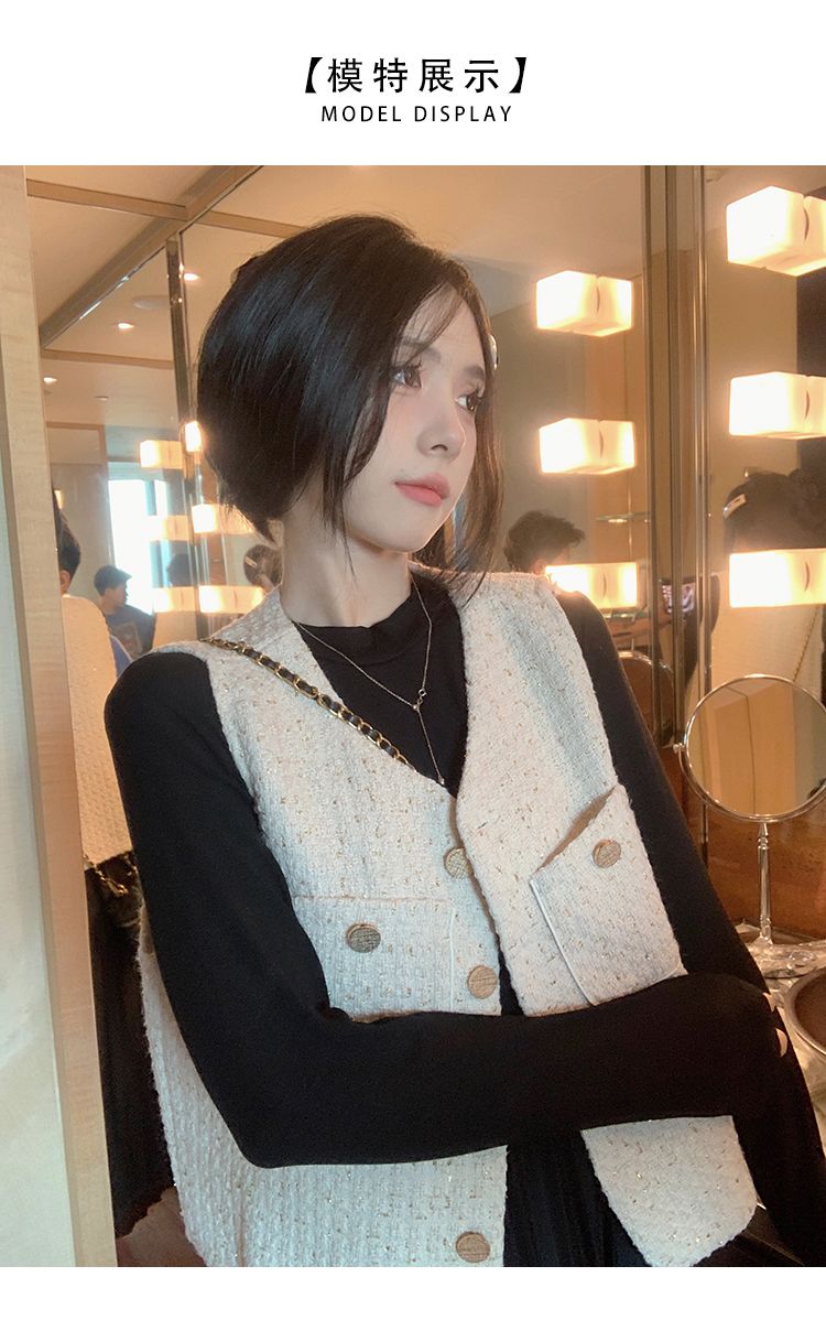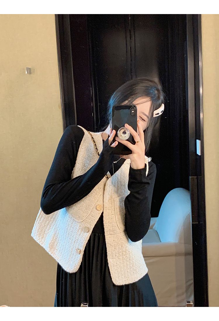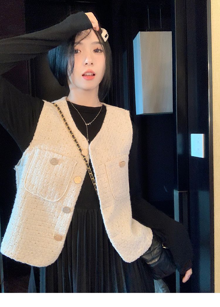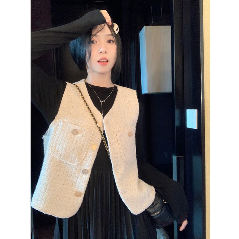 2025春秋新款小香风无袖马甲外套女气质显瘦百搭叠穿v领马夹背心