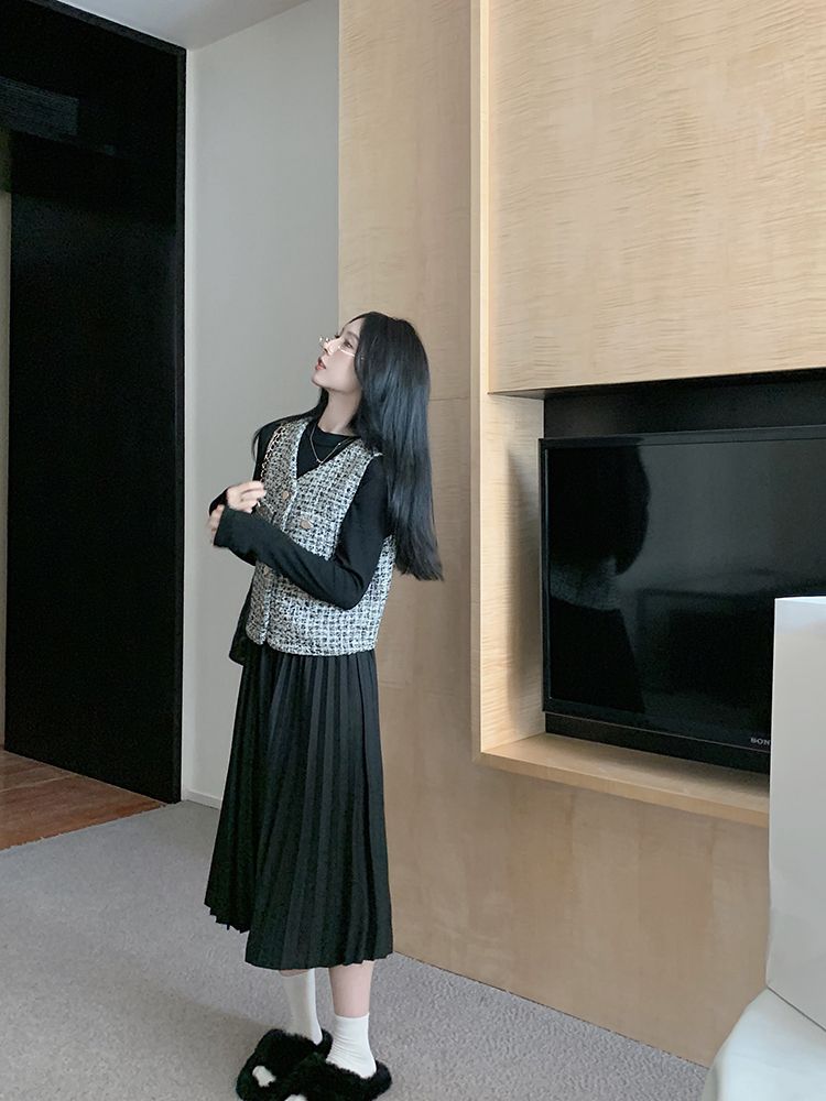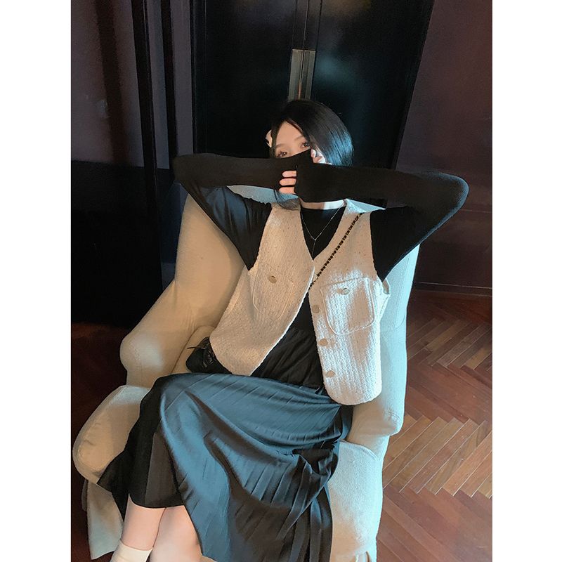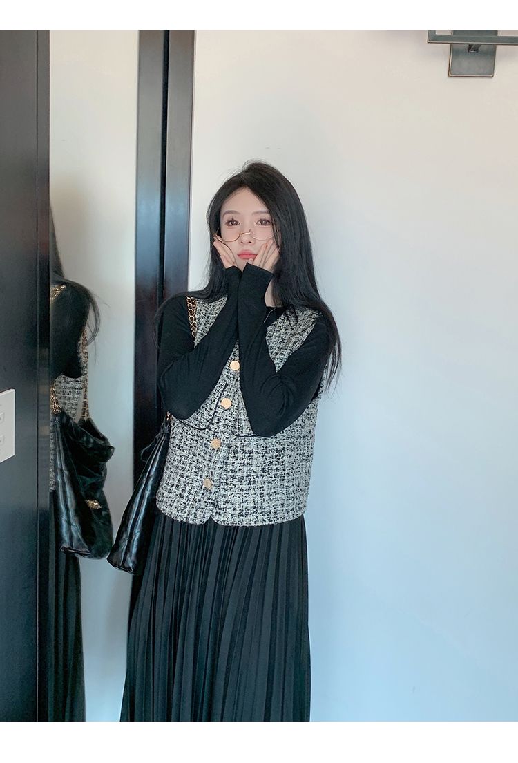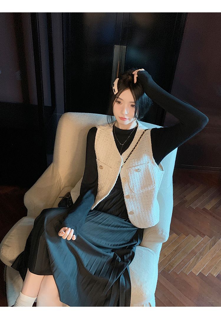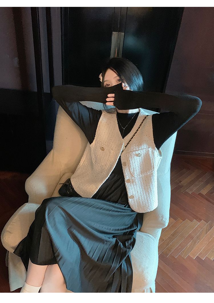2025春秋新款小香风无袖马甲外套女气质显瘦百搭叠穿v领马夹背心